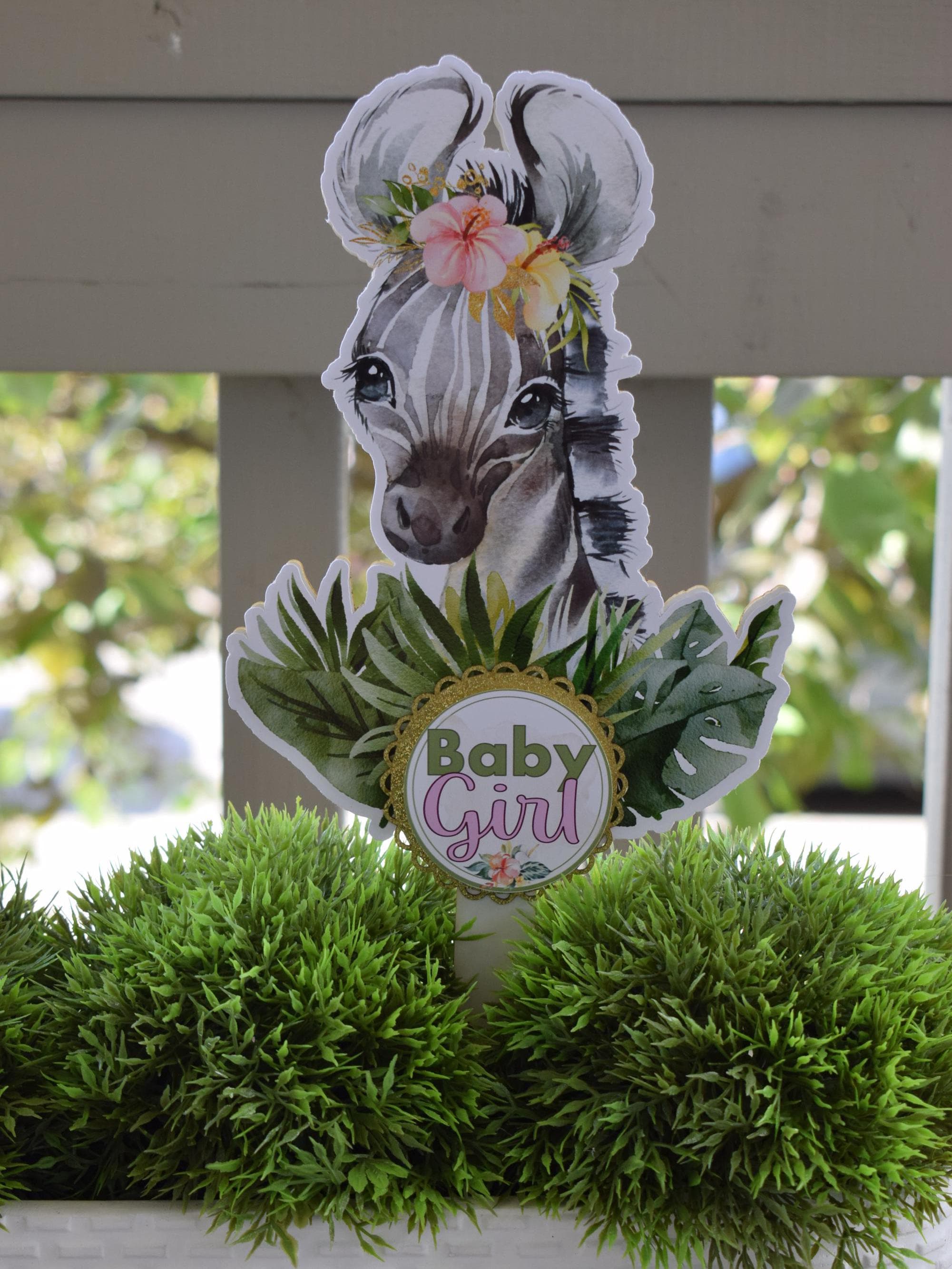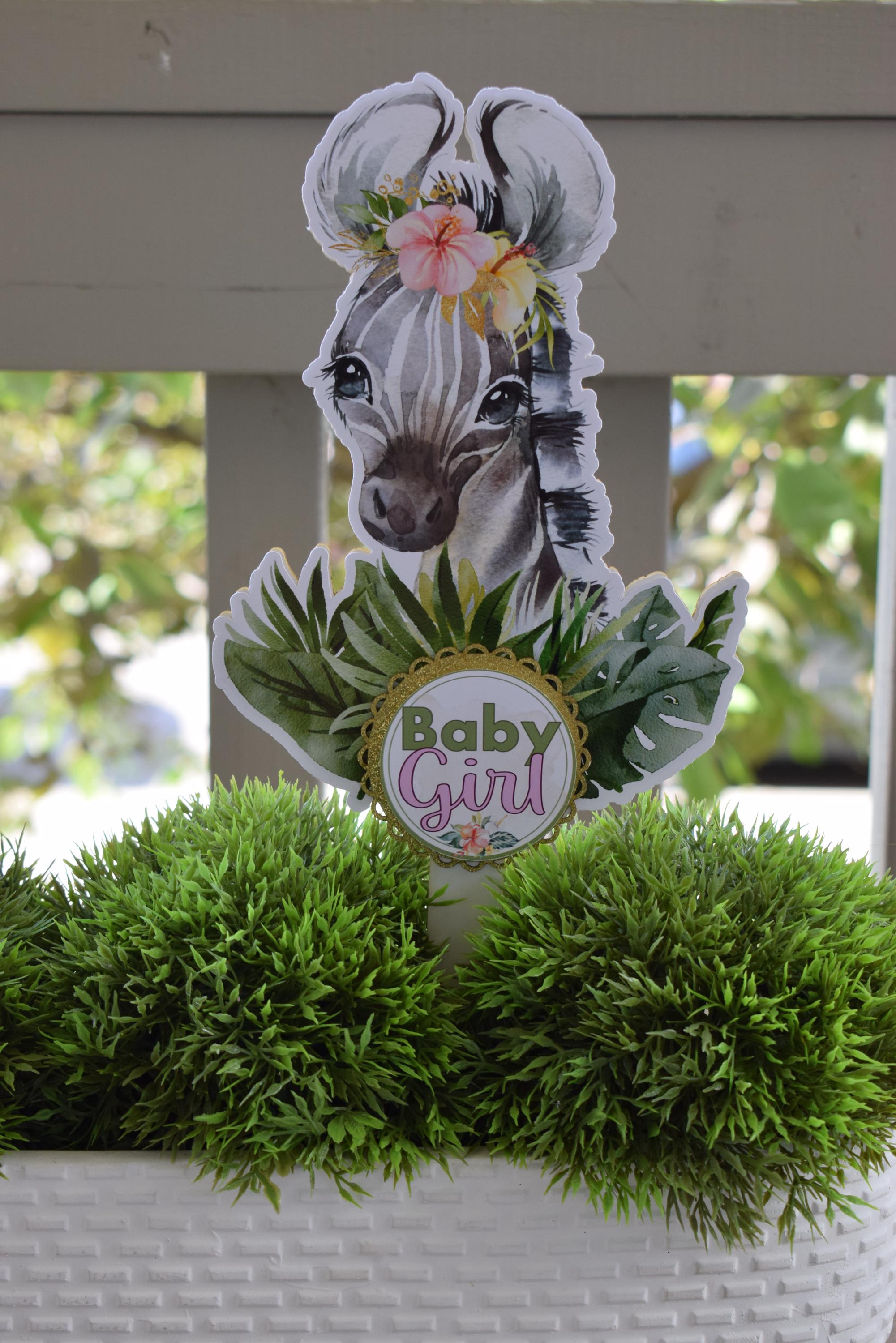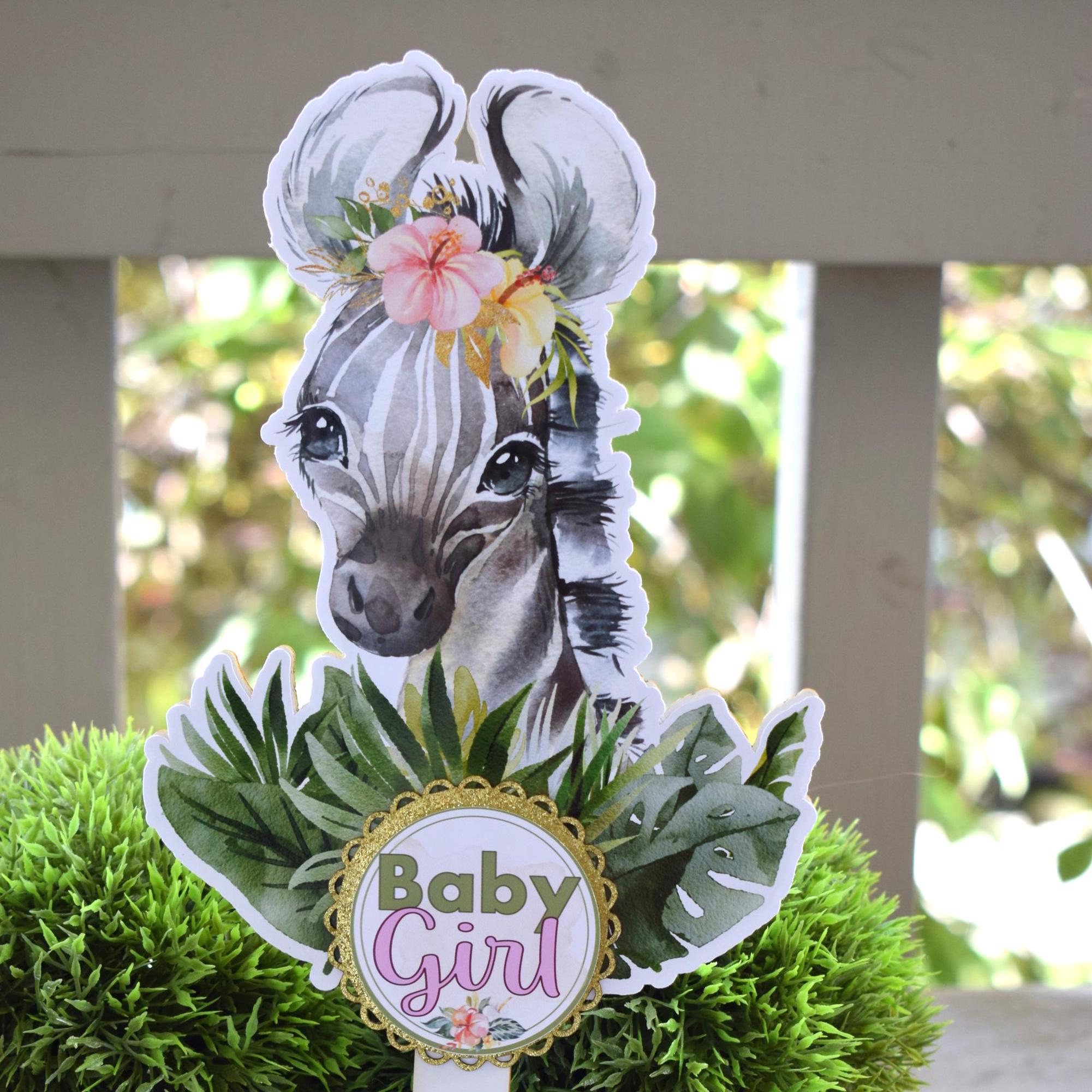Girl Tropical Zebra Cake Toppers, Safari Baby Shower Party, Zebra Baby Shower Centerpieces Decorations, New Mom Gifts - S0001