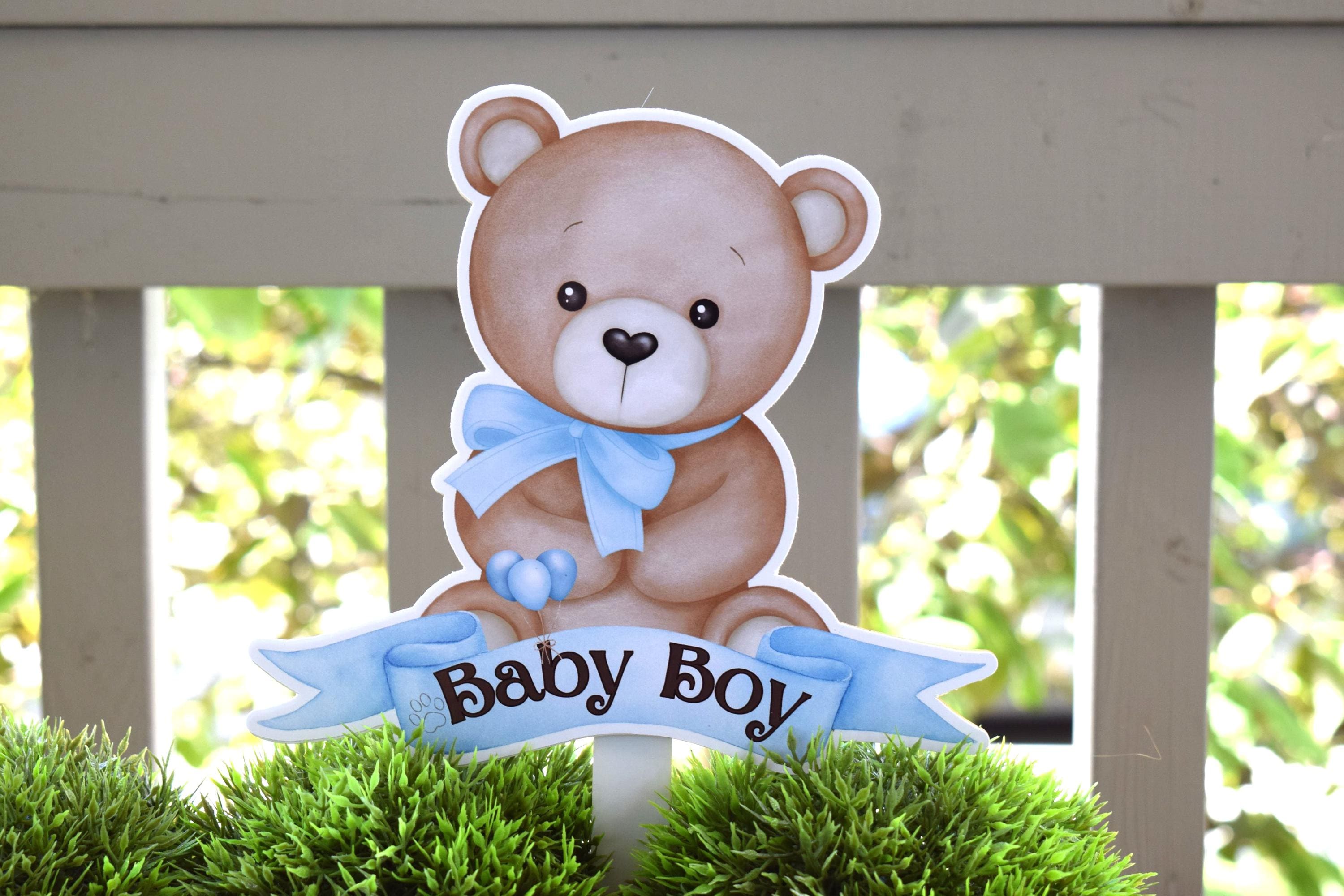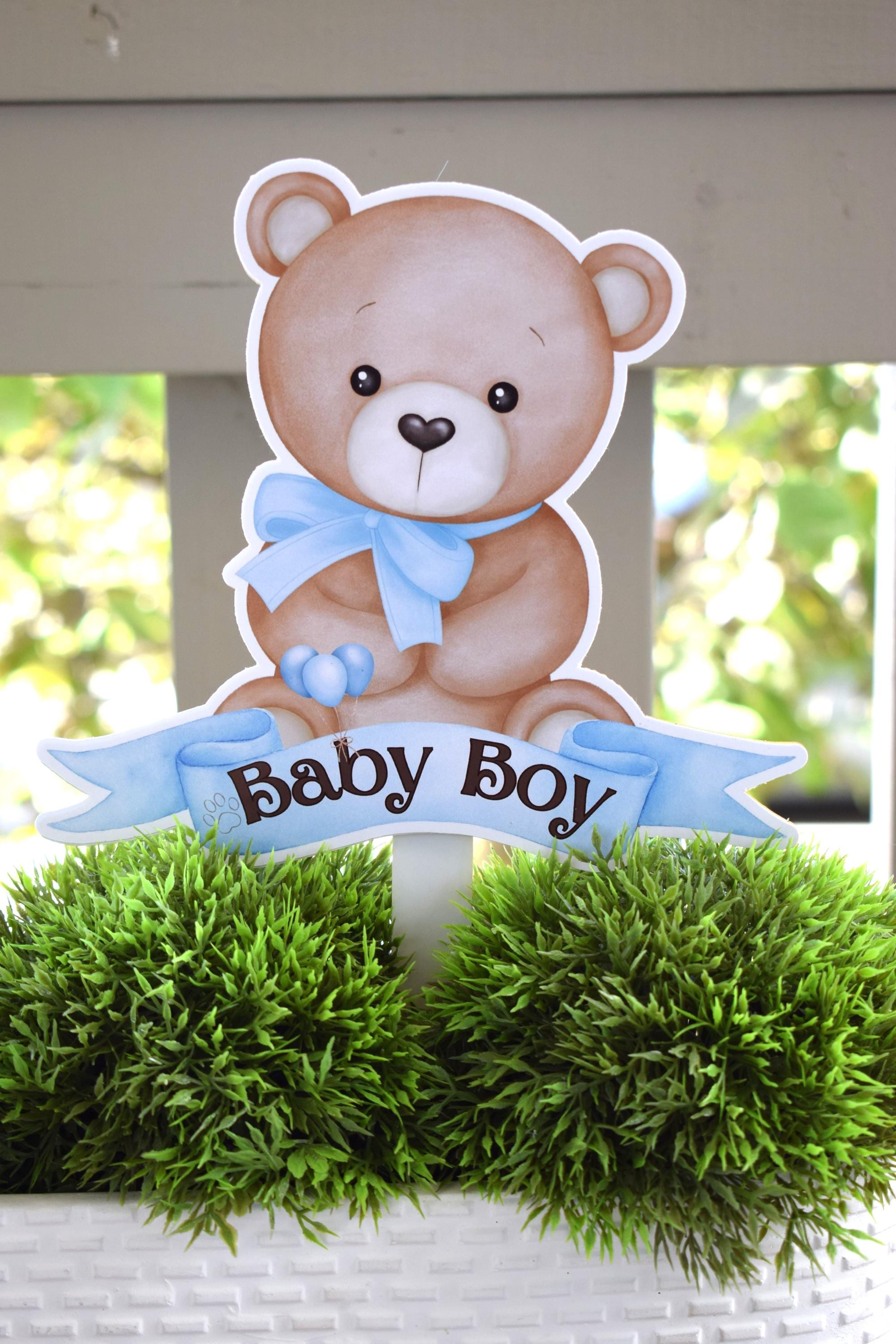 Boy Teddy Bear Cake Toppers, Blue Bear Baby Shower, Bear Party, Cupcake, Bear Baby Shower Decorations - S0002