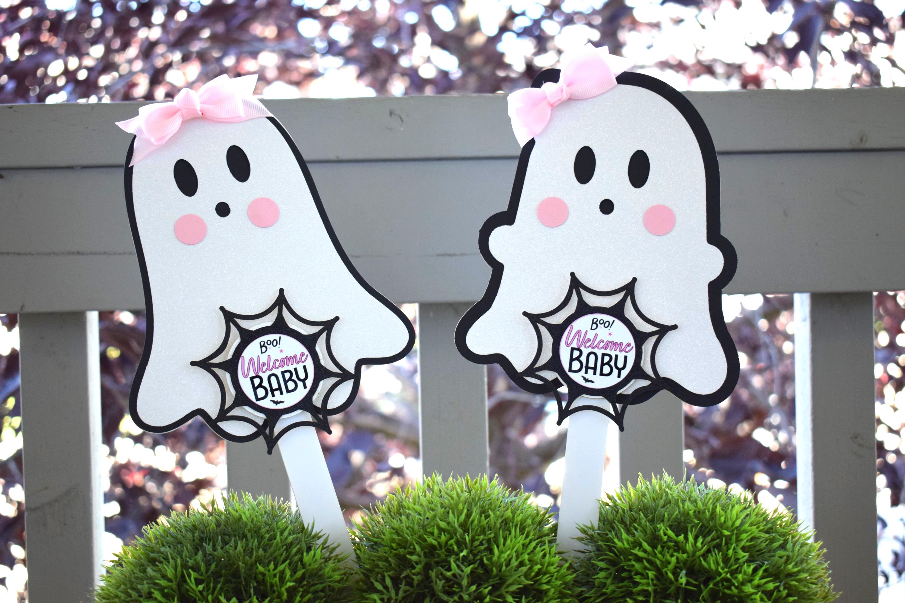 Pink Girl Ghost Cake Toppers, Baby Shower, Halloween Baby Shower, Centerpieces Decorations, Pink Ghost Shower Party Decor - S0011