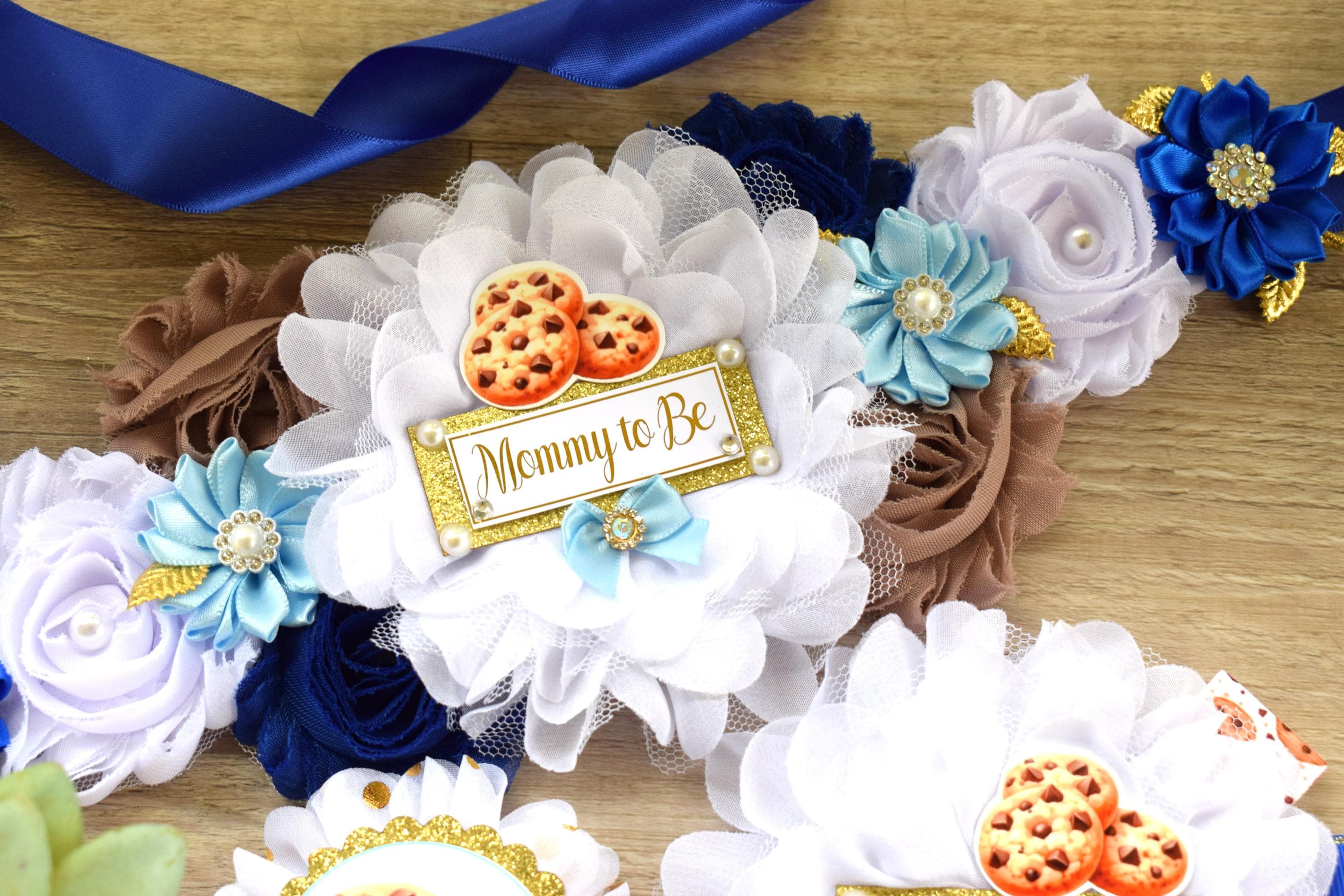 Cookie Baby Shower, Royal Brown White Maternity Sash, Mommy To Be, Daddy To Be, Custom