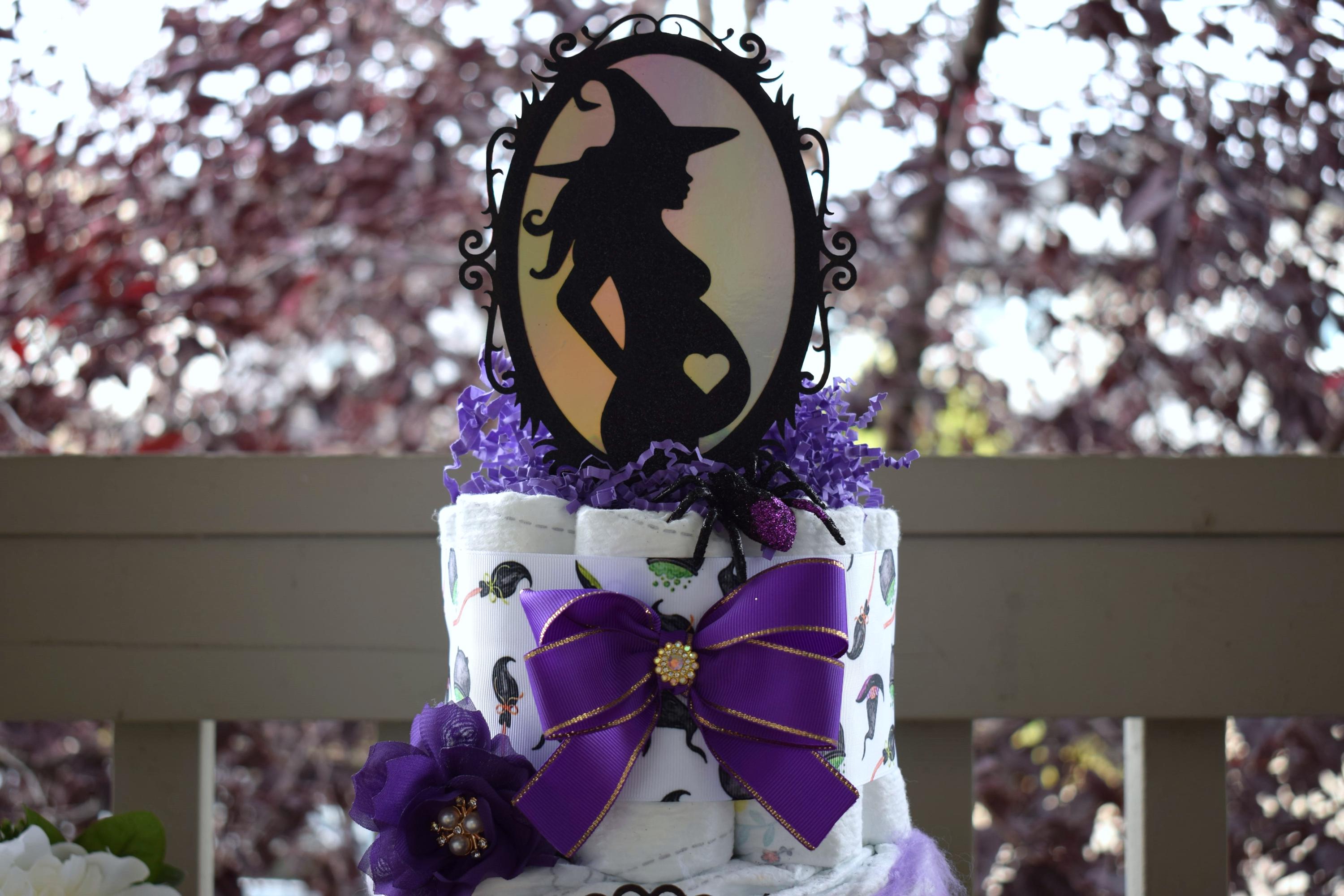 Pregnant Witch Diaper Cake Baby Shower, Halloween Baby Shower Centerpieces Decoration, Shower Party Decoration, Halloween Centerpiece