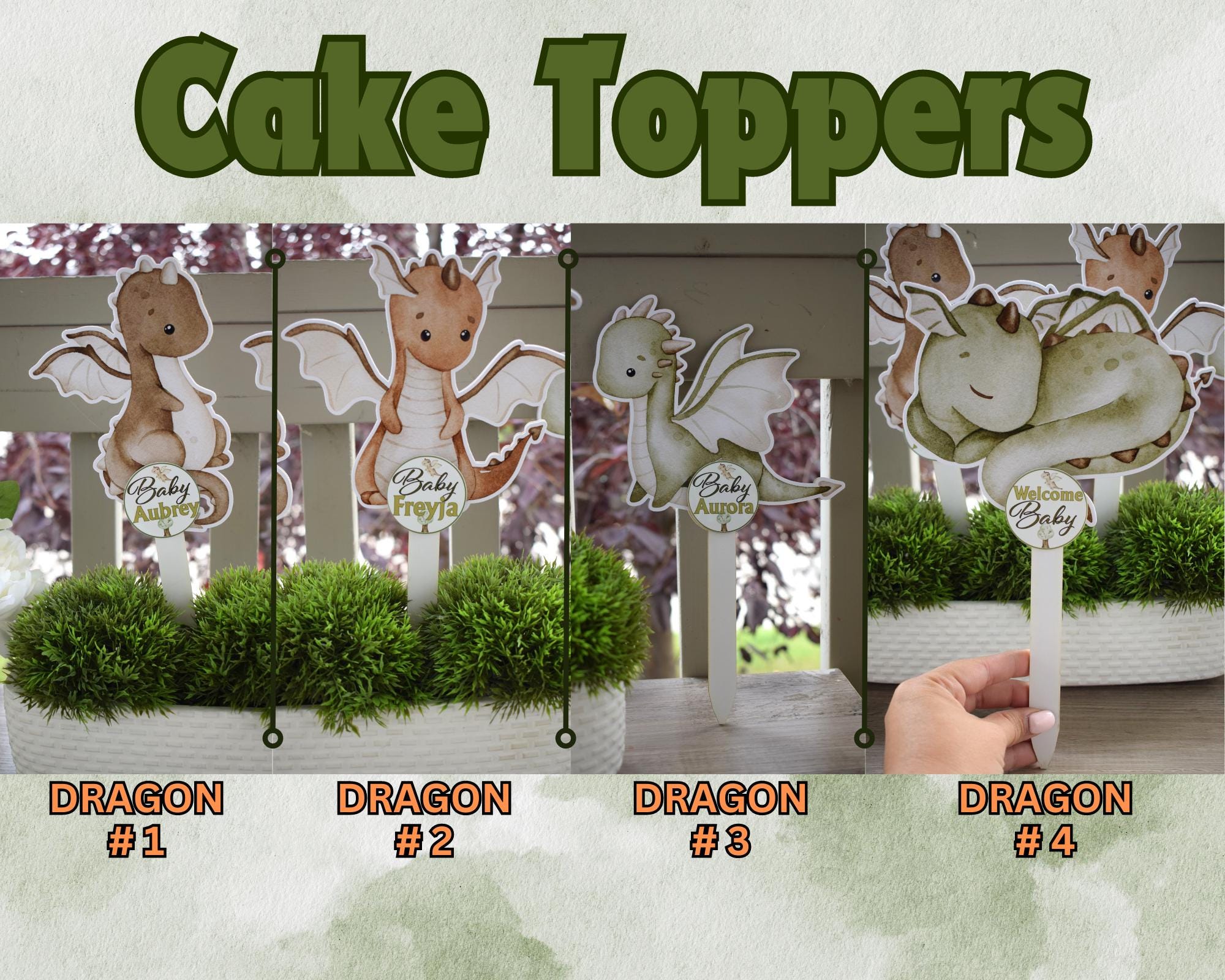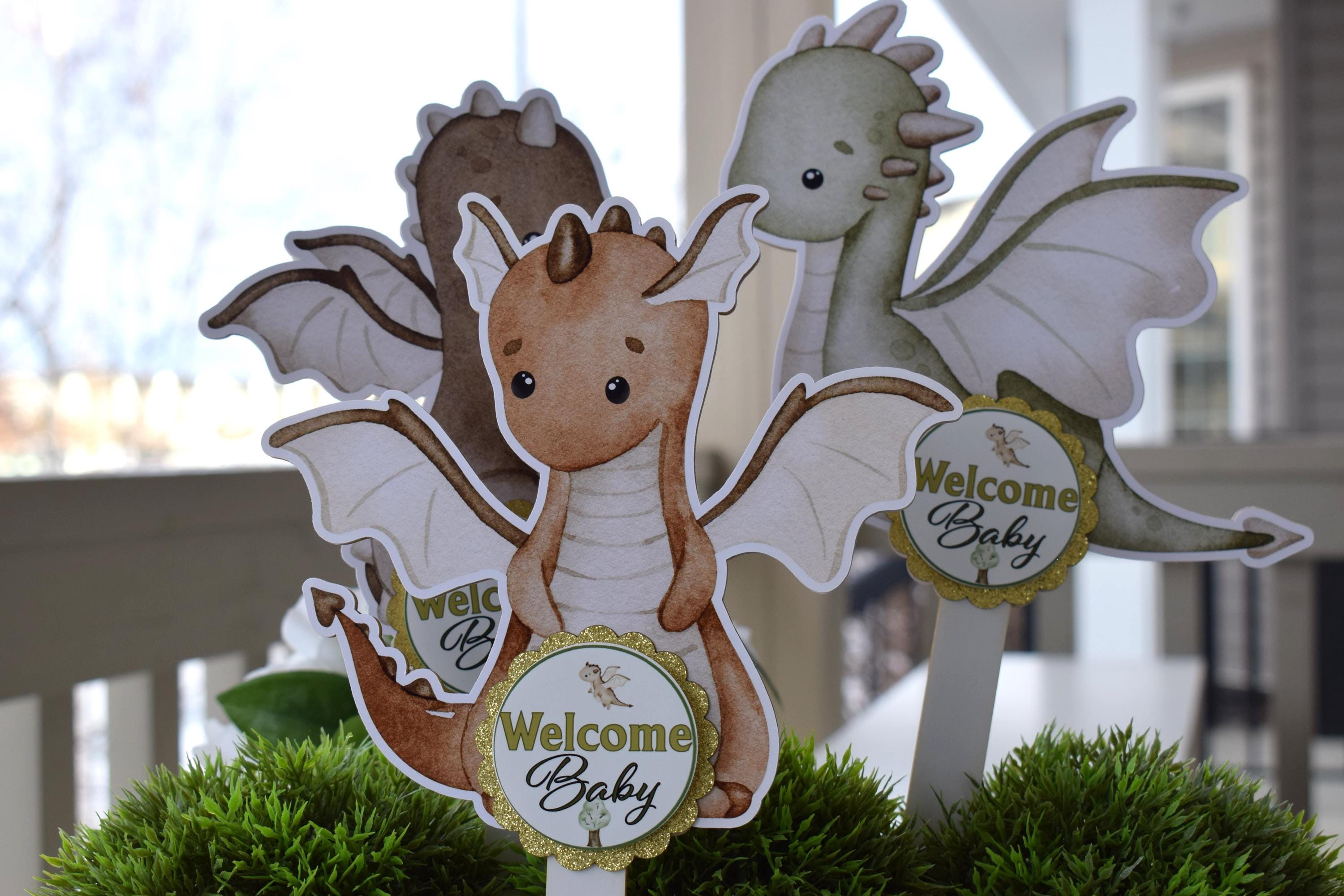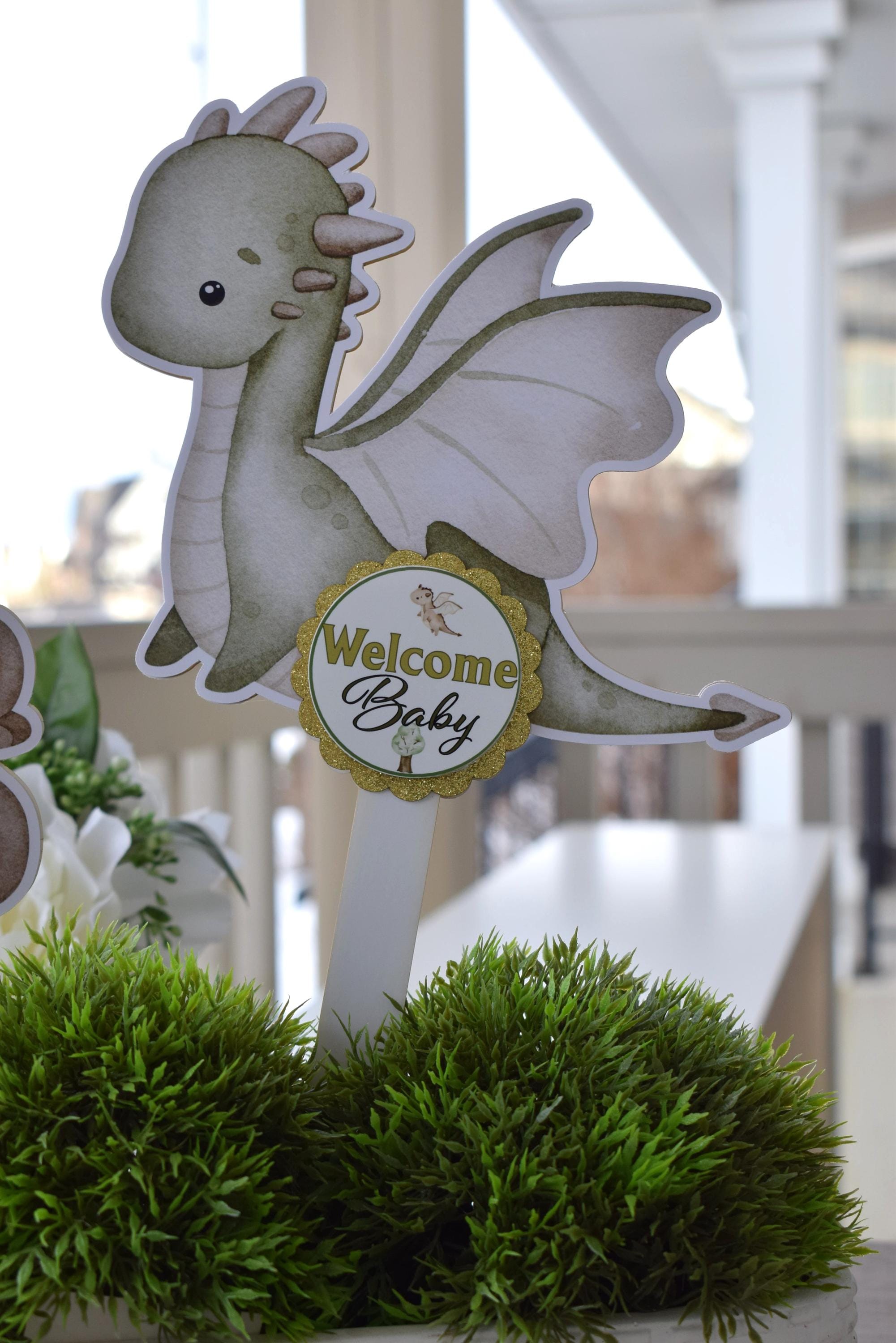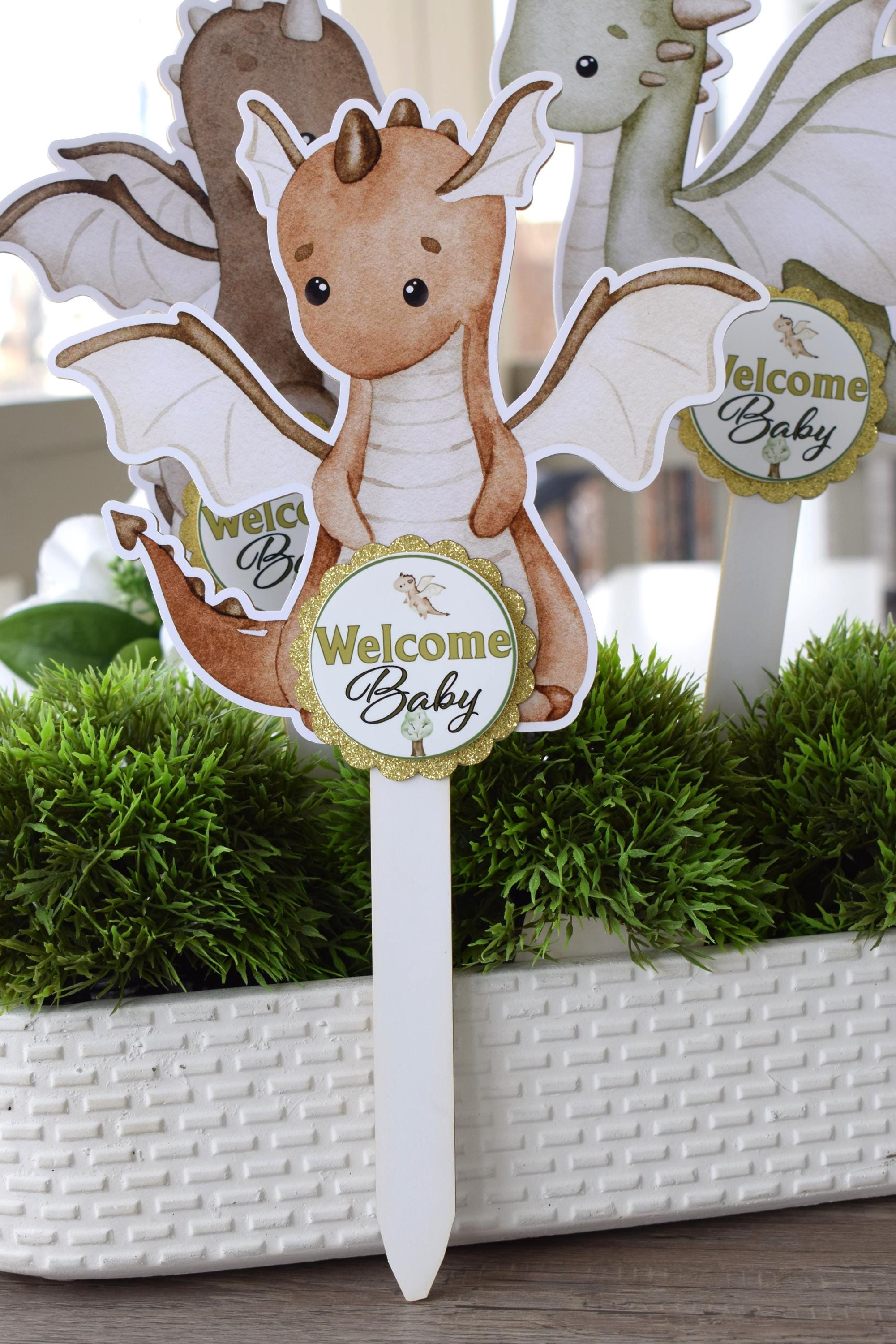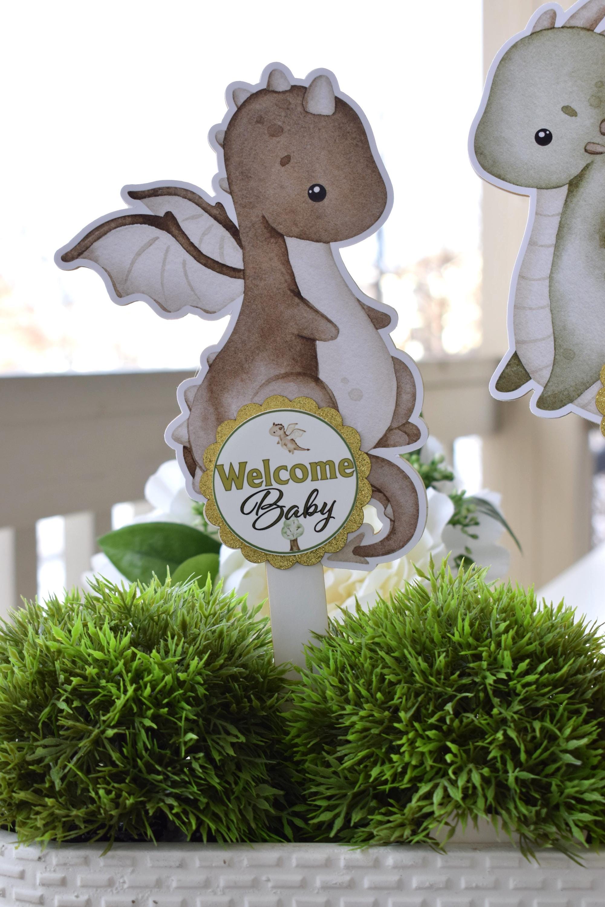 Dragon Cake Toppers Baby Shower, Boy Dragon Baby Shower Centerpieces Decorations, Neutral Boy Room Nursery Decor, New Mom Gifts - S00016