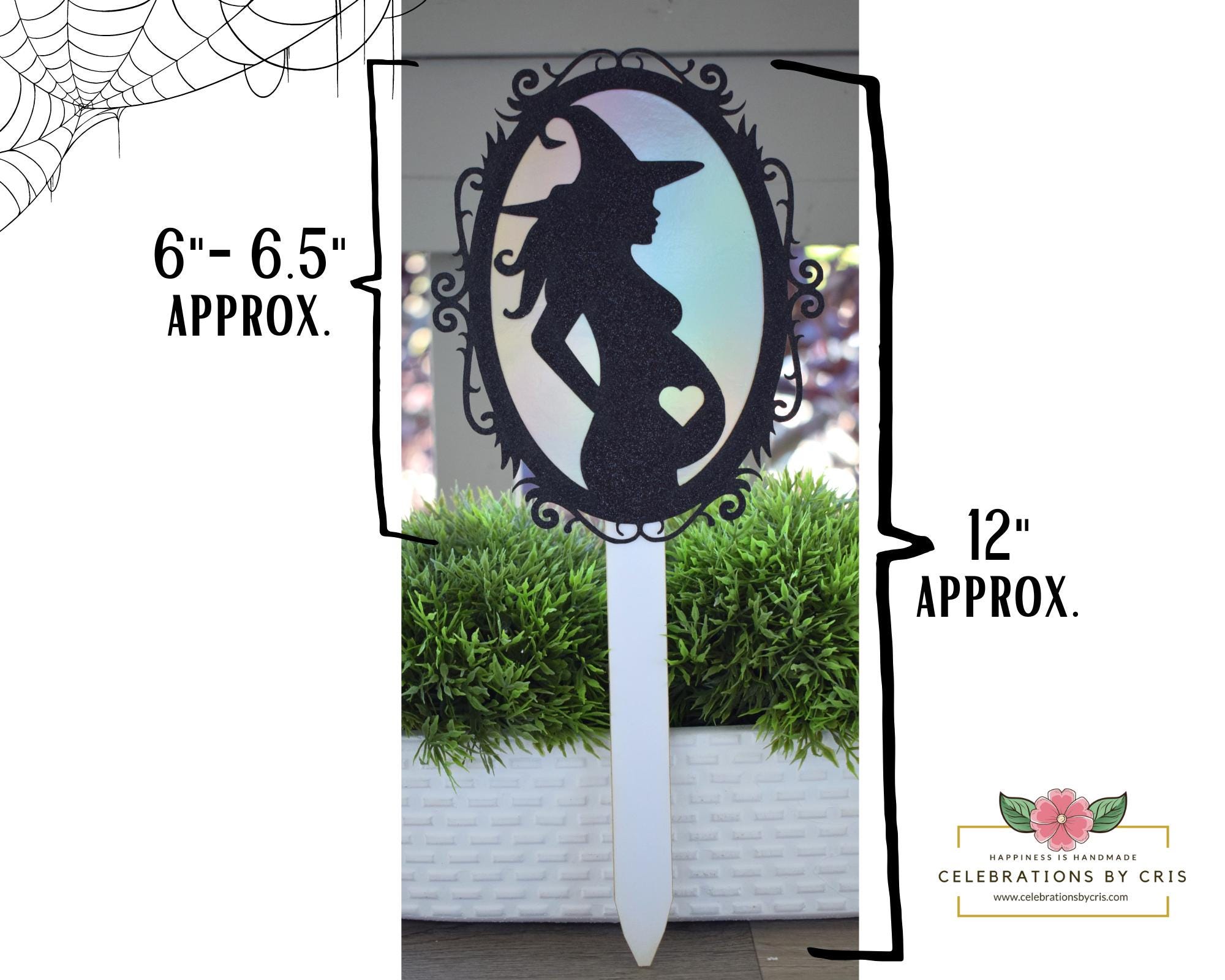 These Gorgeous Pregnant Witch Cake Toppers are the perfect centerpieces for your baby shower. We can match any shower theme.