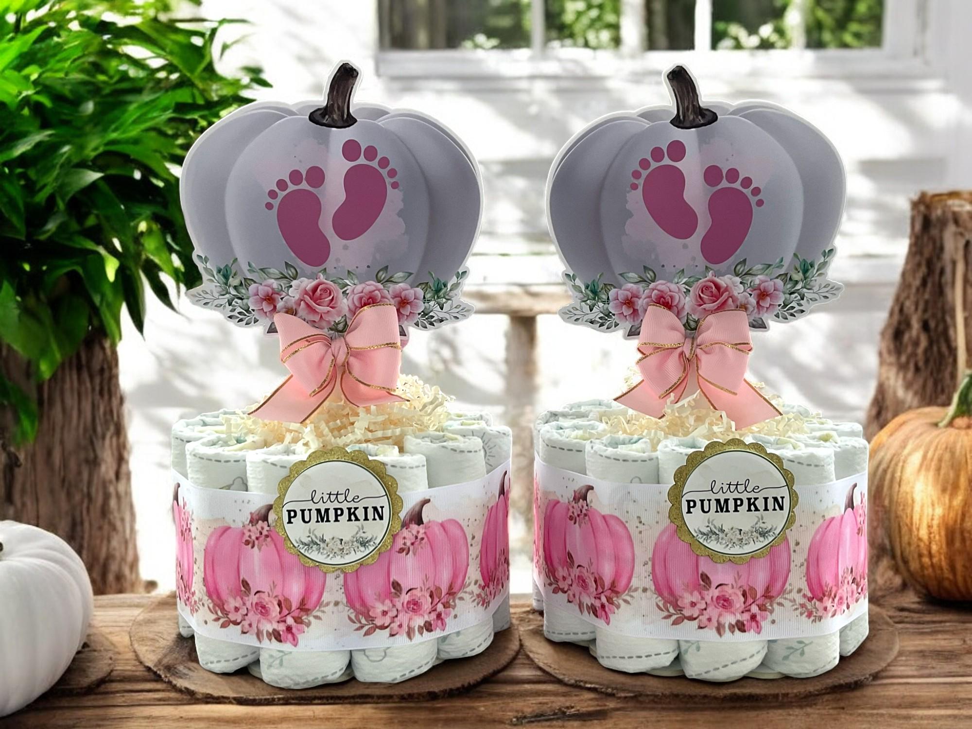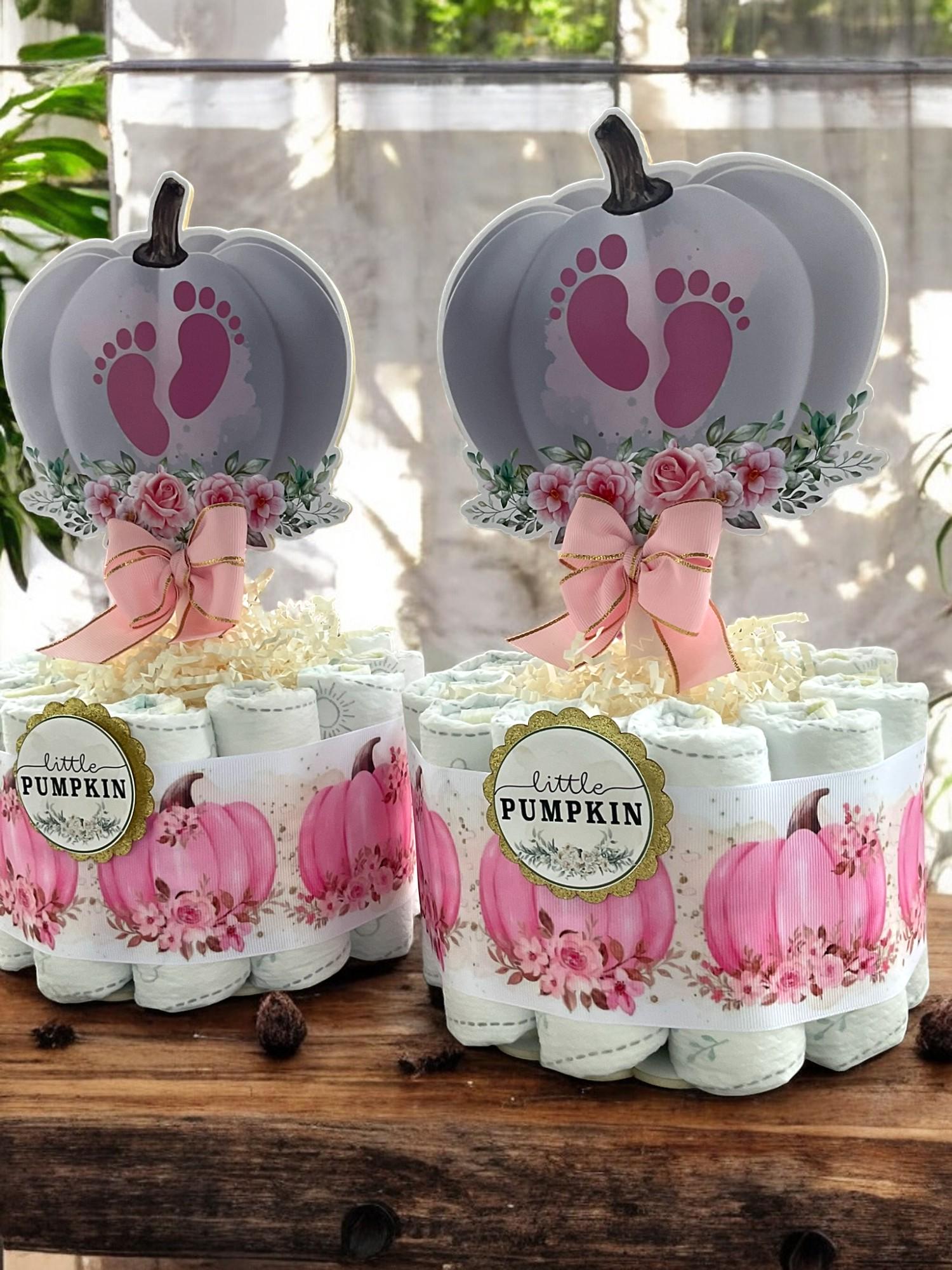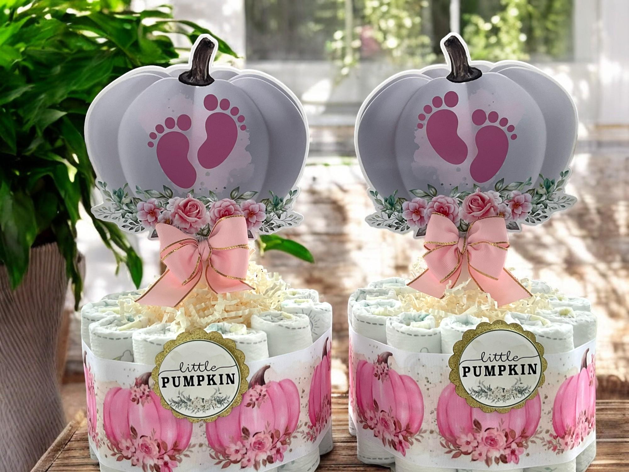 Girl Pumpkin Mini Diaper Cake Baby Shower, Pink Girl Pumpkin Baby Shower Centerpieces Decorations, Girly Shower Party Decor, New Mom Gifts