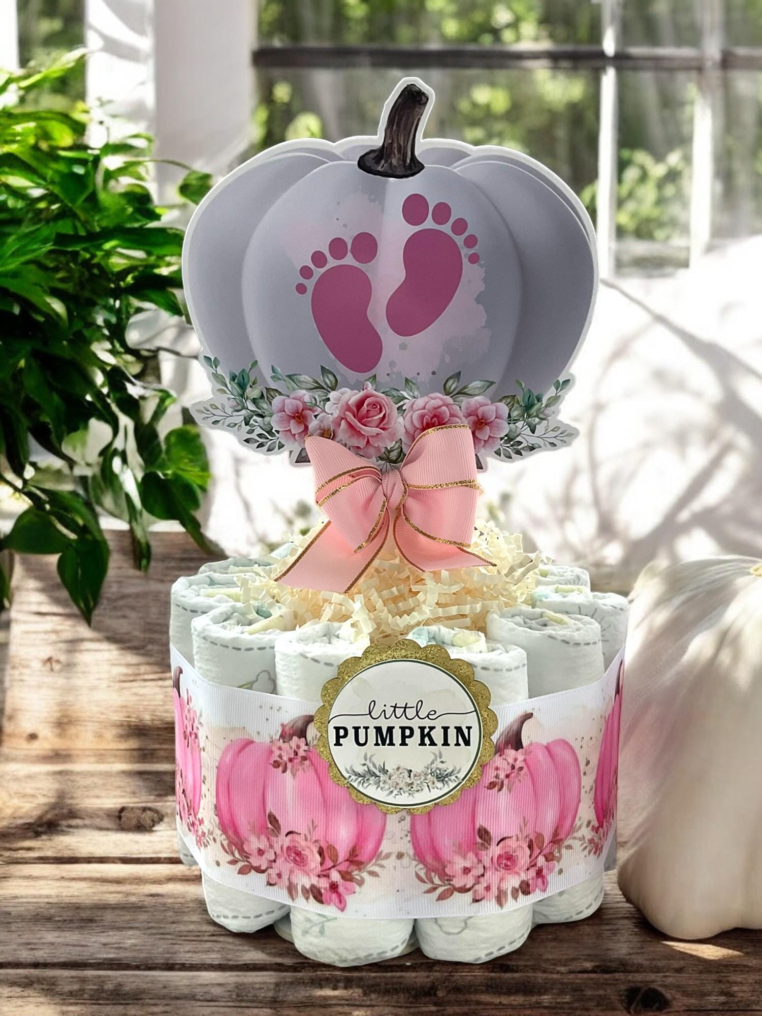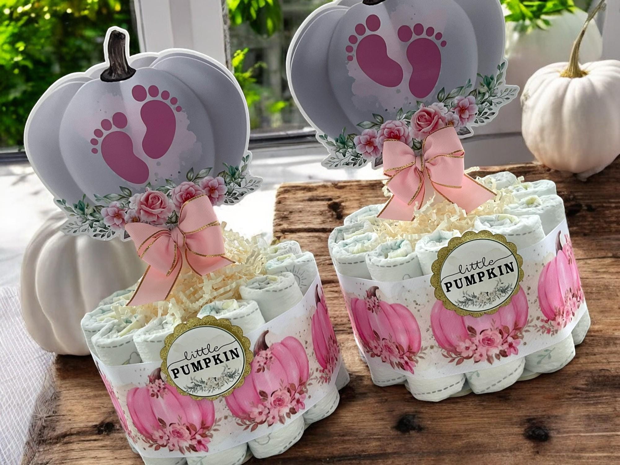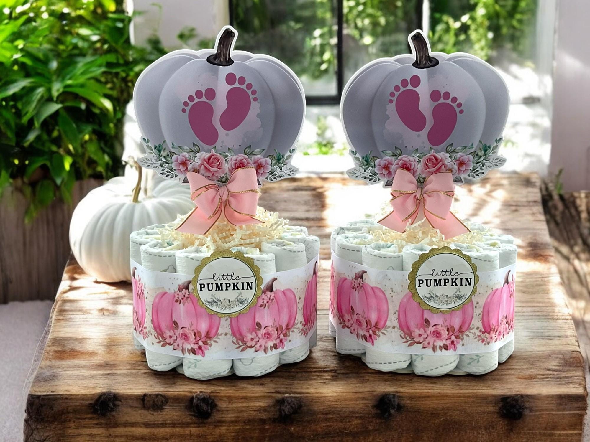 Girl Pumpkin Mini Diaper Cake Baby Shower, Pink Girl Pumpkin Baby Shower Centerpieces Decorations, Girly Shower Party Decor, New Mom Gifts