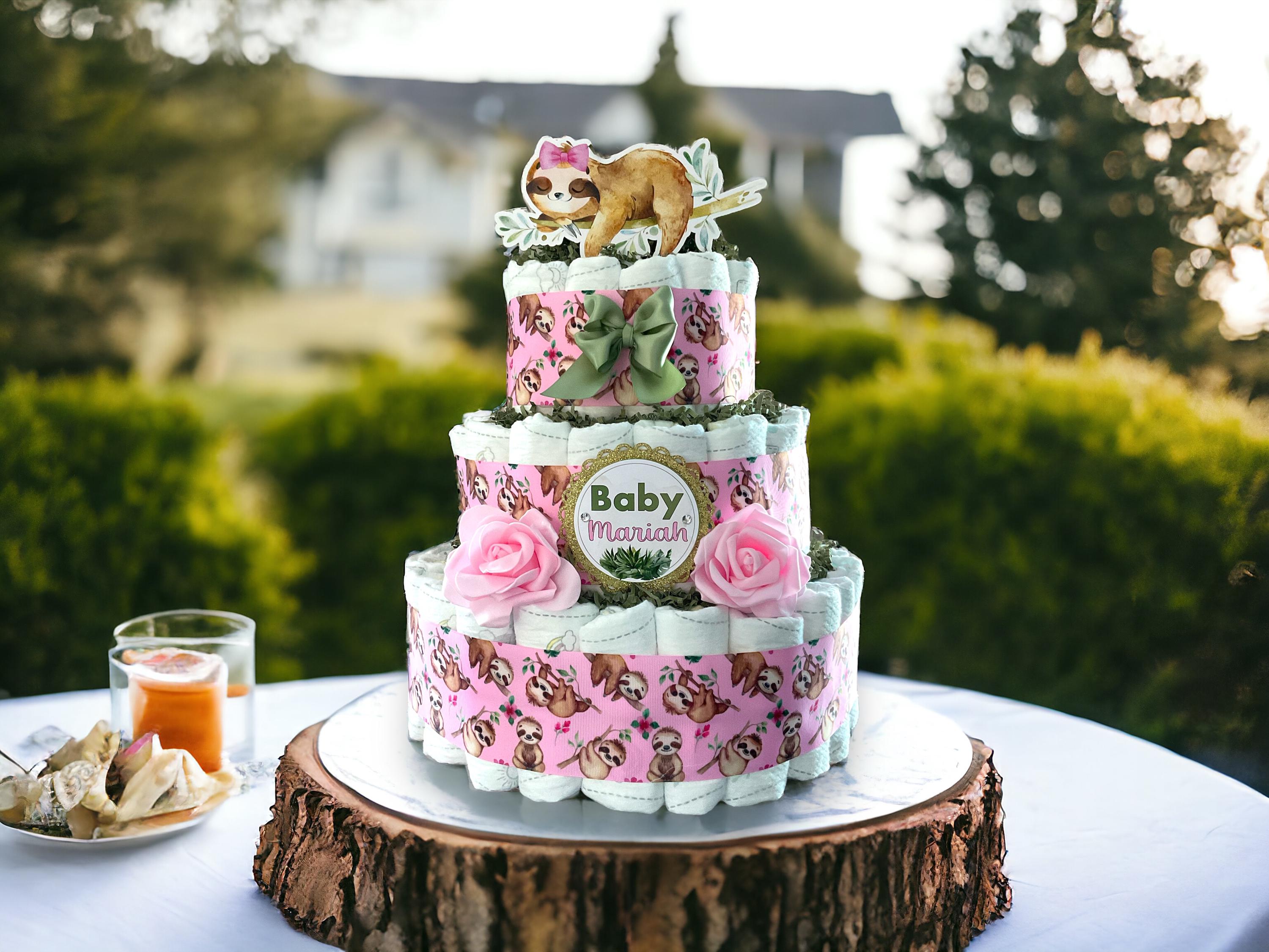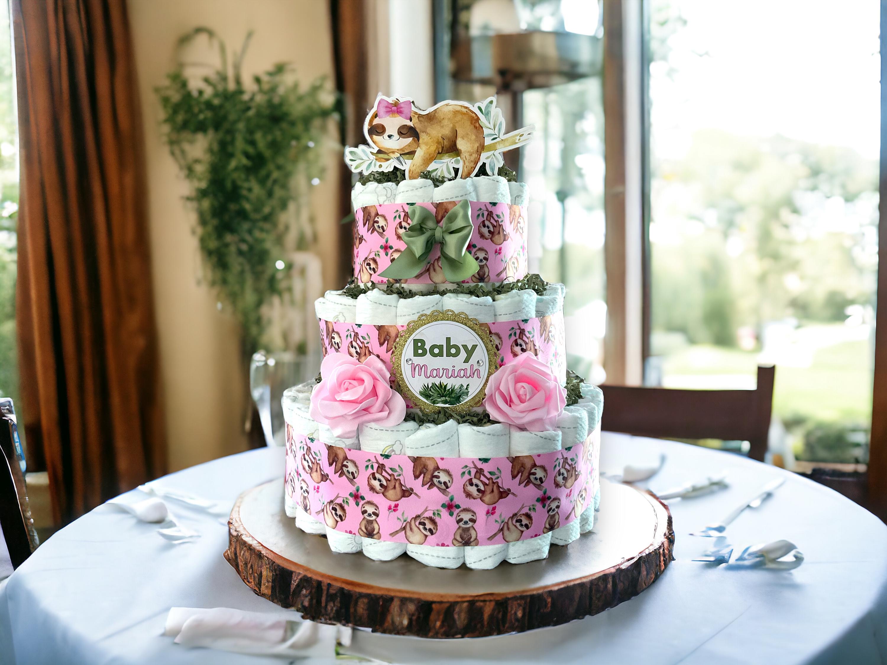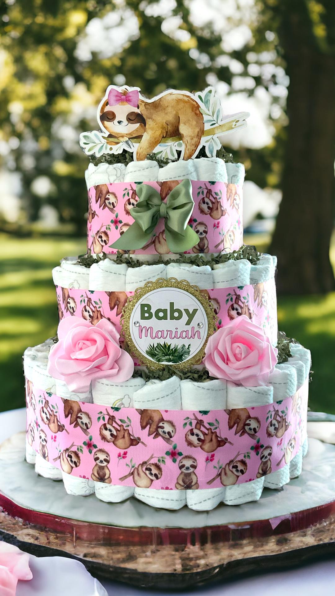 This Gorgeous Sloth 3 Tiers Diaper Cake are the perfect centerpieces for your baby shower. We can match any shower theme.