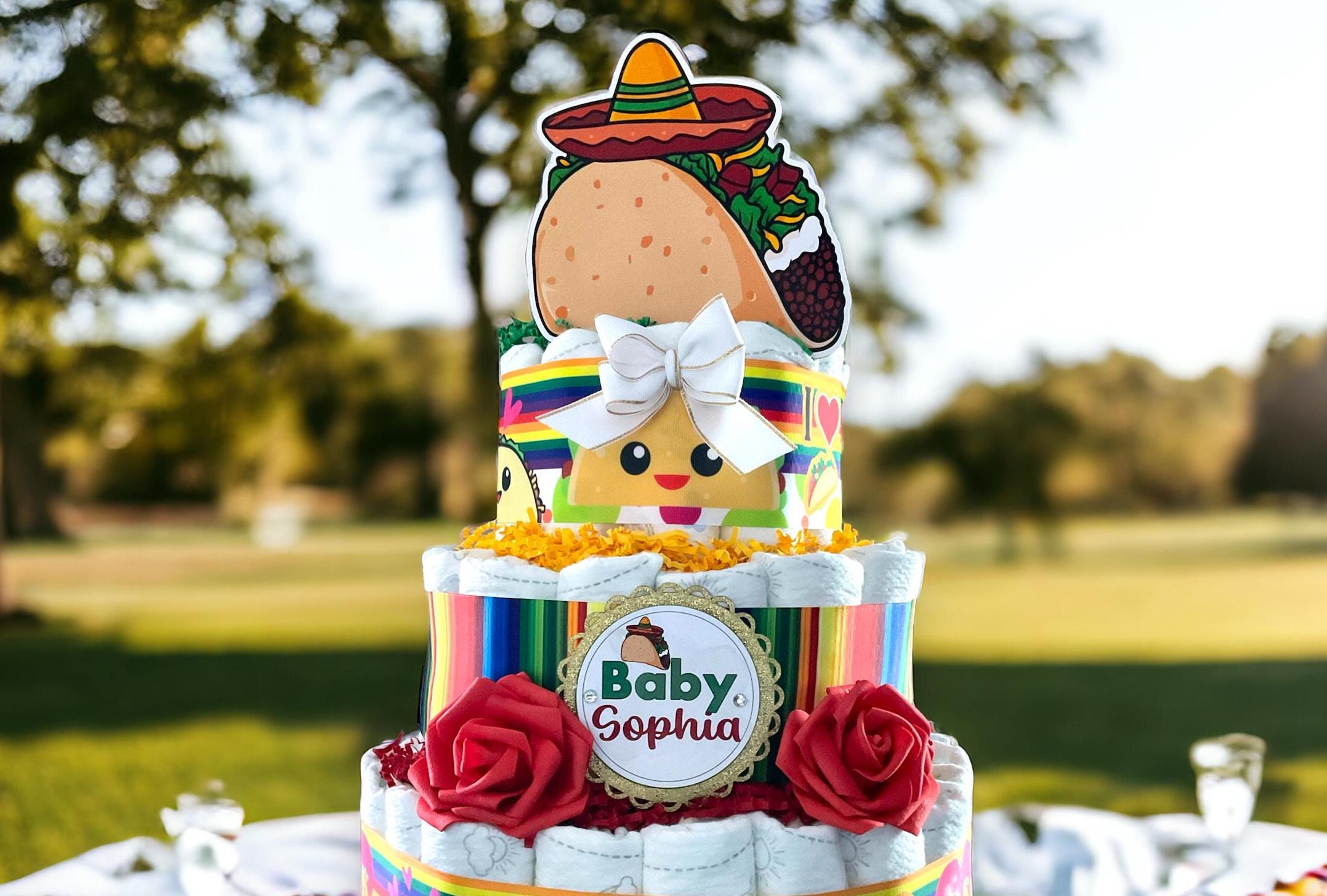 This Gorgeous Taco Bout 3 Tiers Diaper Cakes are the perfect centerpieces for your baby shower. We can match any shower theme.