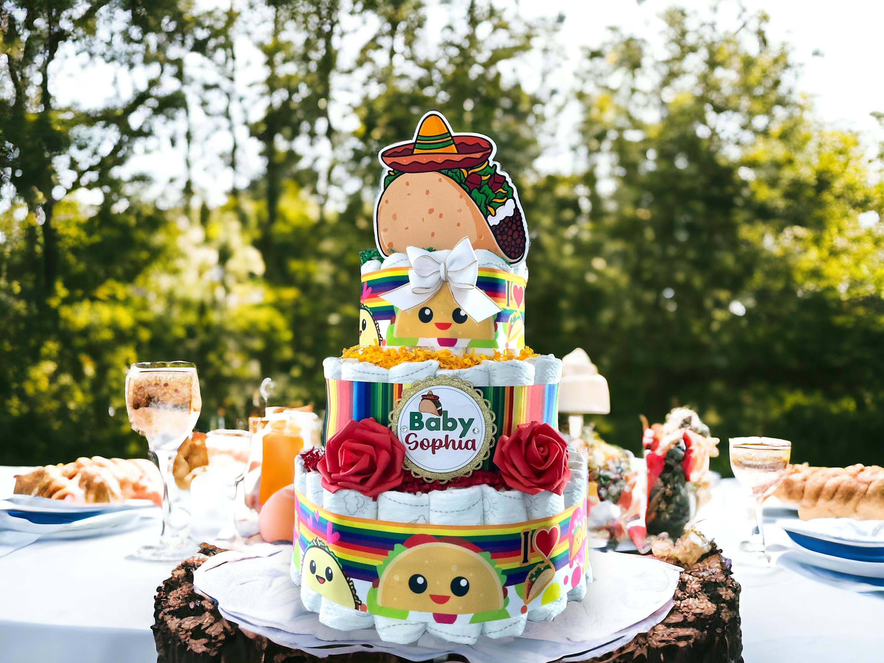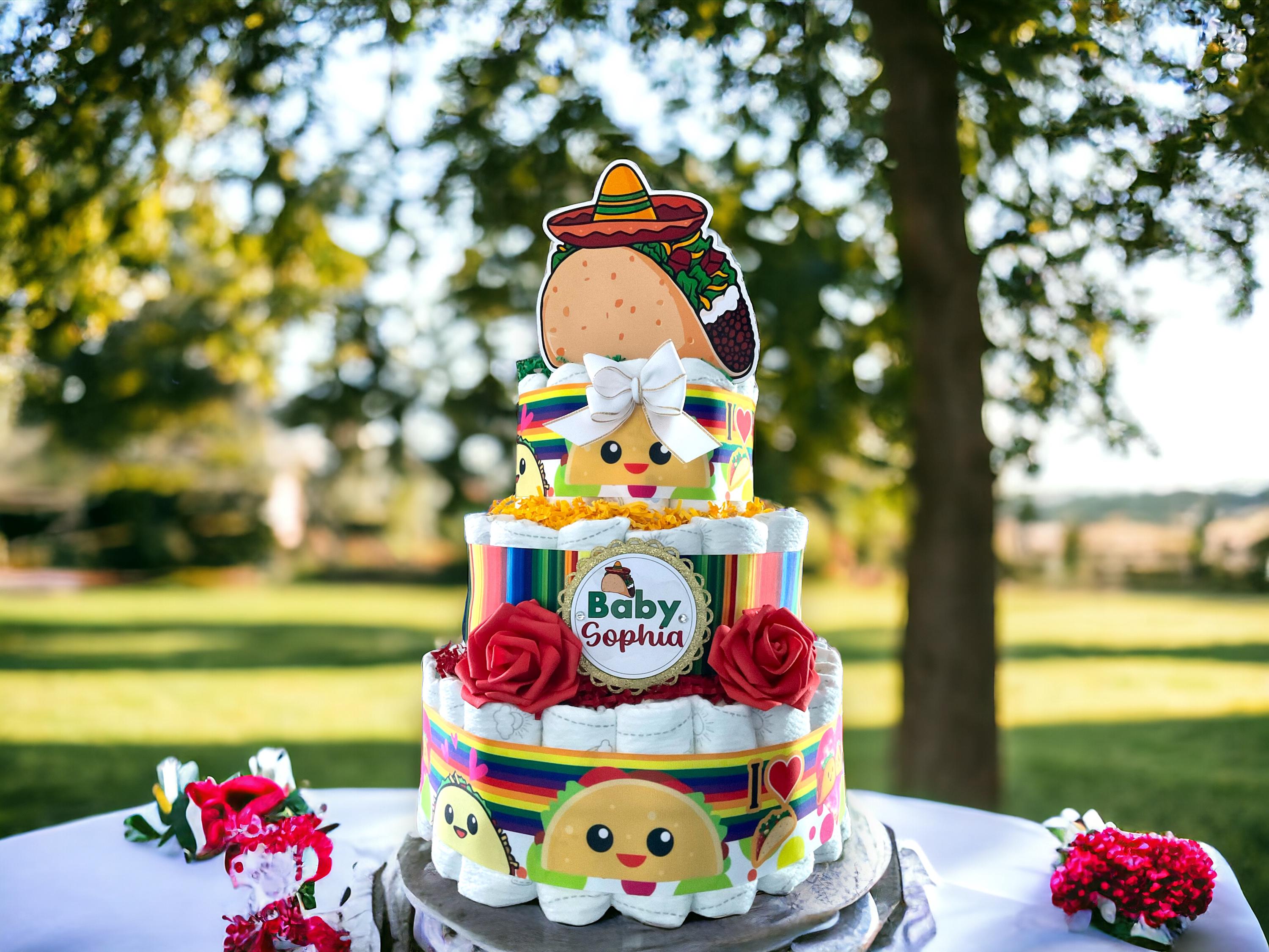 Taco Bout Diaper Cake Baby Shower, Mexican Diaper Cake Centerpieces Decor, Taco Bout Room Nursery Decor, New Mom Gift II 3 Tier Diaper