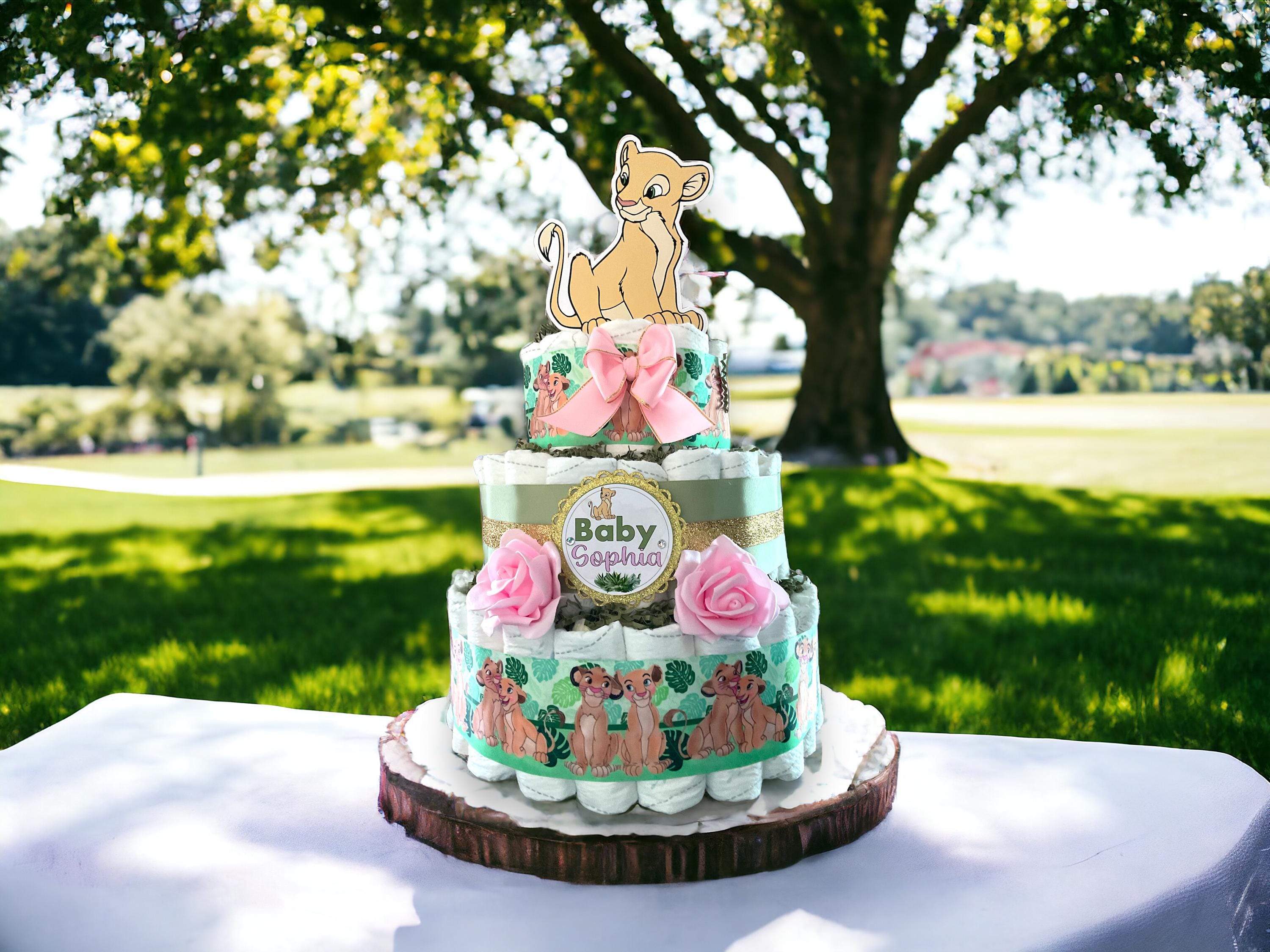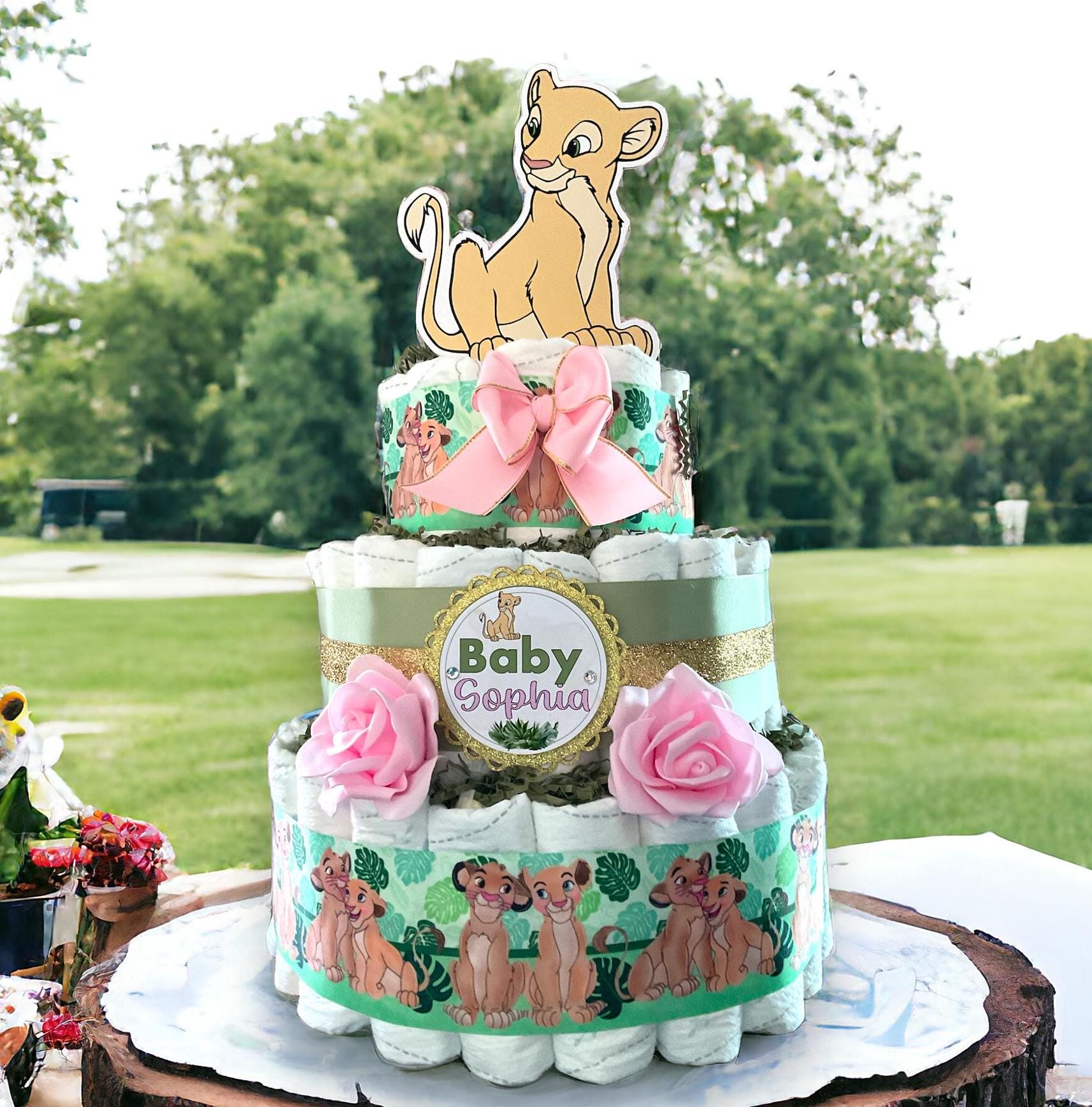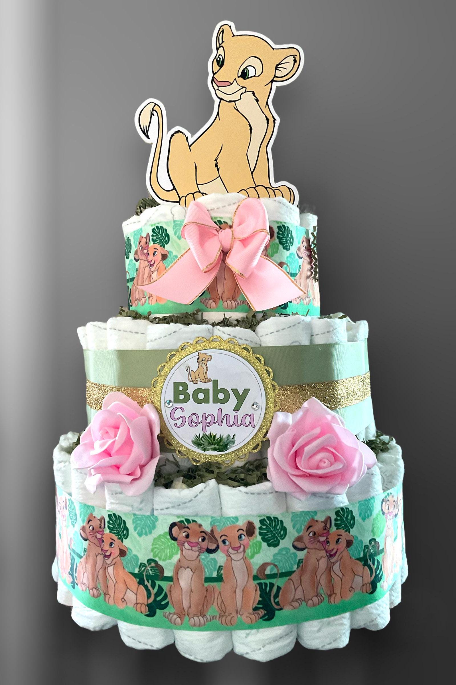 Girl Lana Diaper Cake Baby Shower, Lion King Diaper Cake Centerpieces Decor, Room Nursery Decor, New Mom Gifts II 3 Tier Diaper