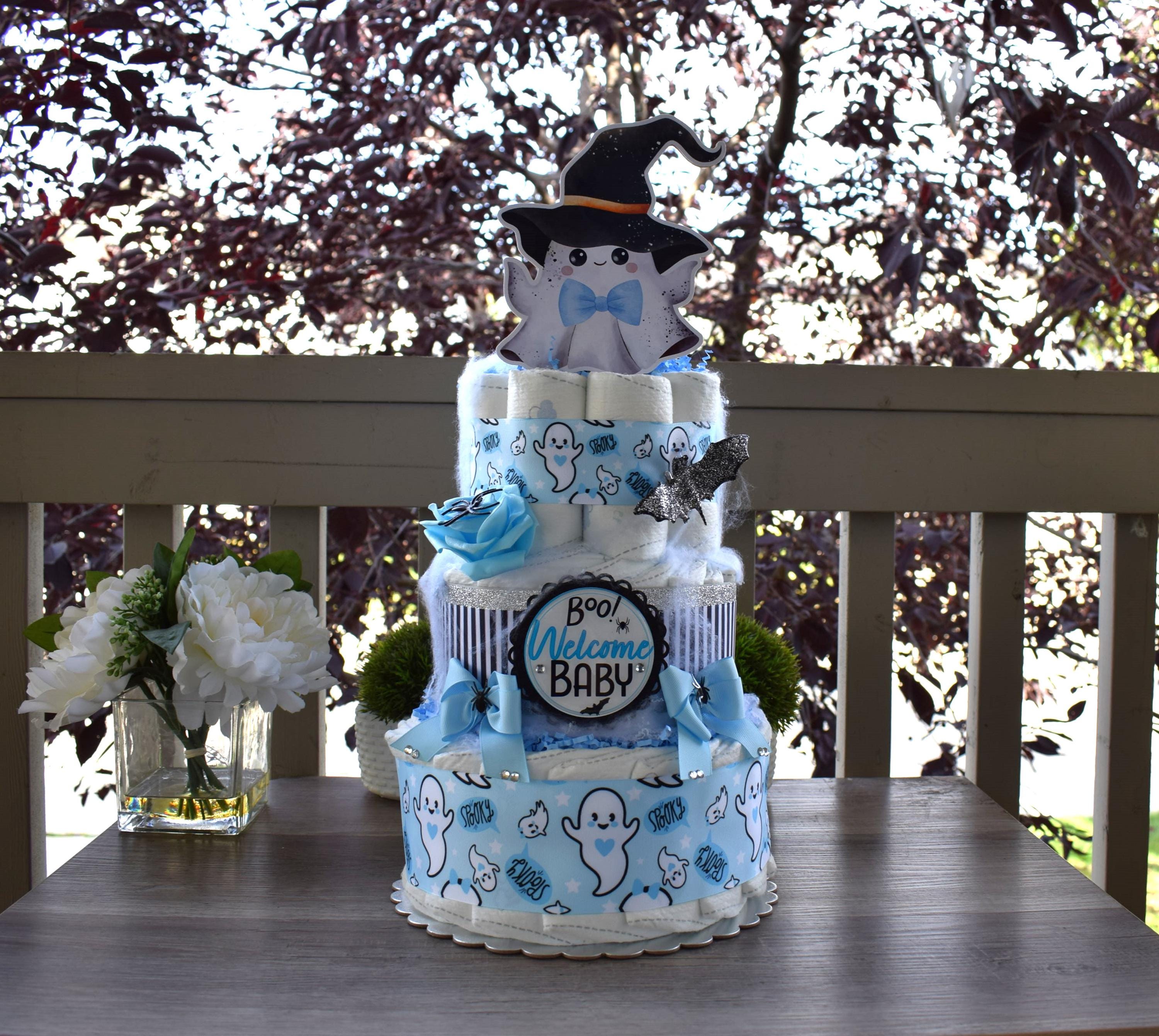 Cute Blue Witch Ghost Diaper Cake Baby Shower, Halloween Baby Shower Centerpieces Decorations, Blue Ghost Shower Party Decor, New Mom Gifts
