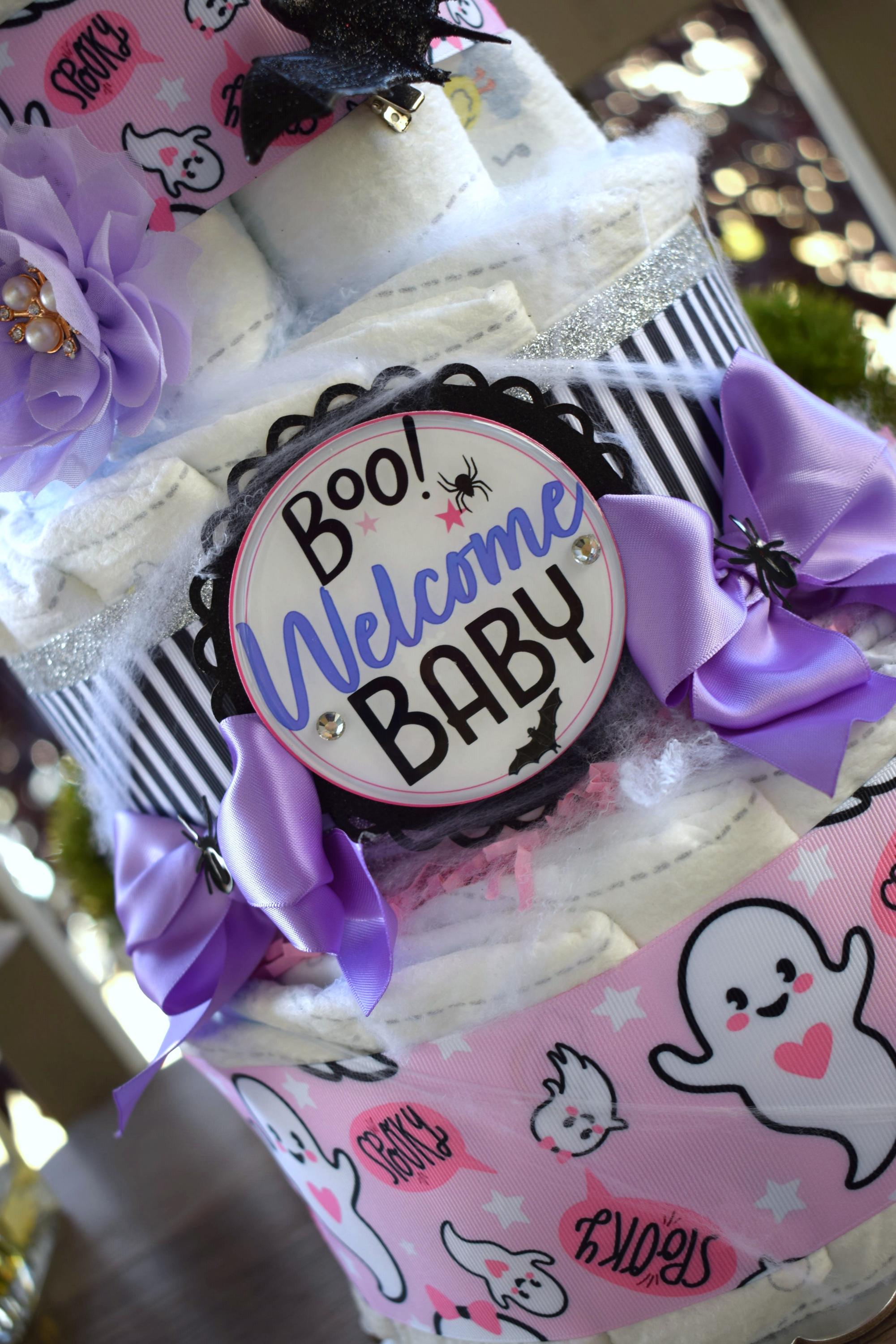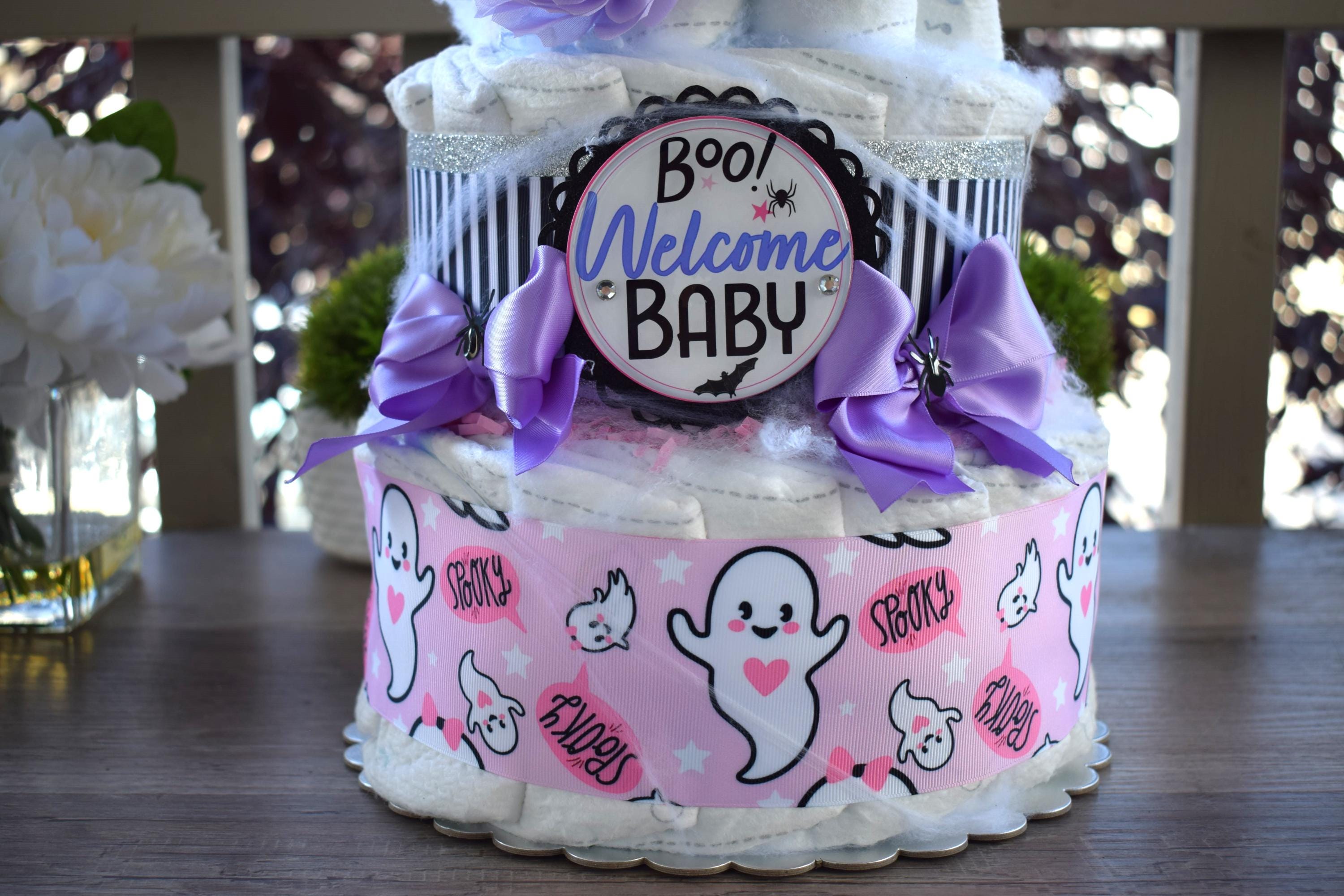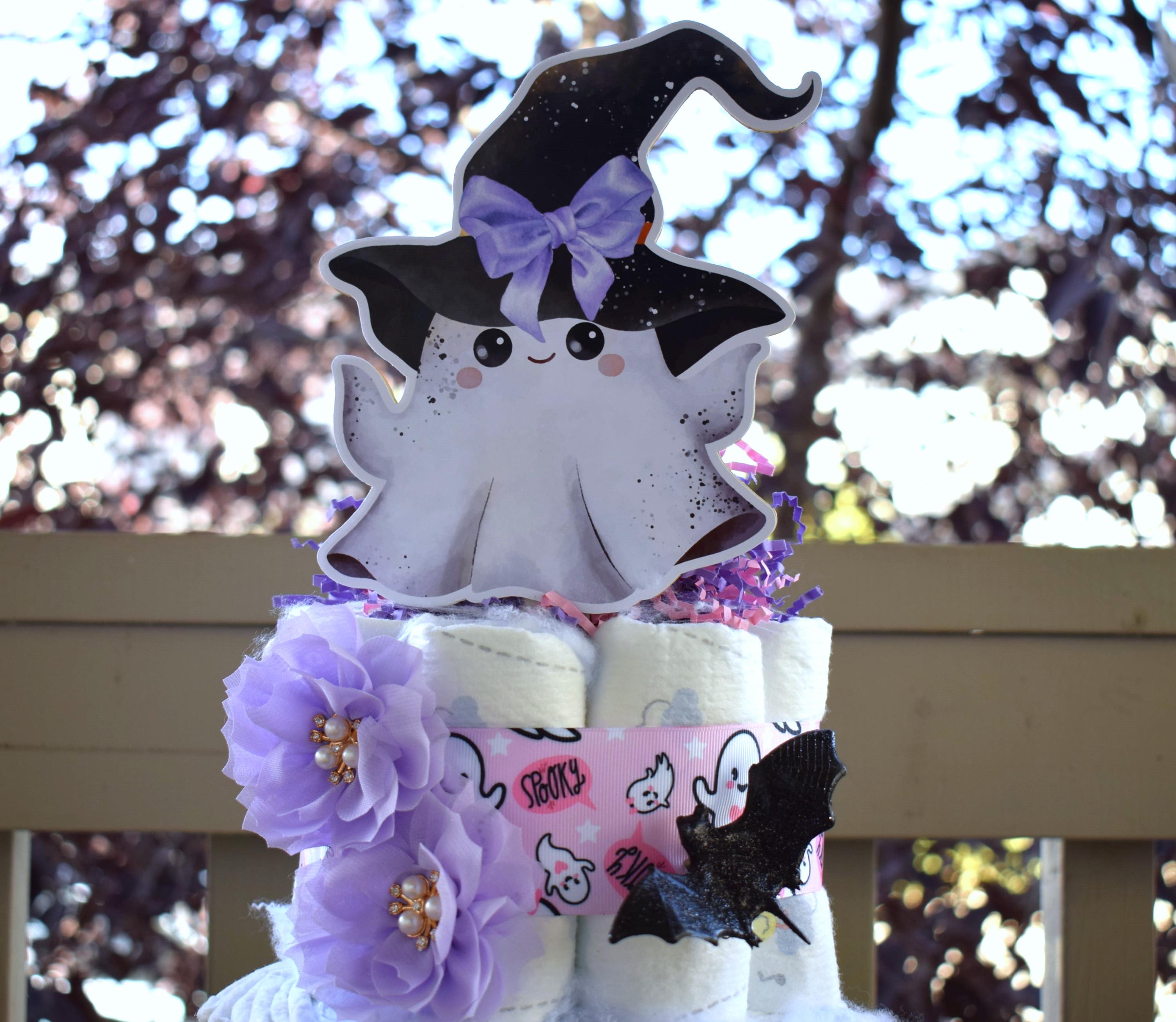 Pink Lavender Witch Ghost Diaper Cake Baby Shower, Halloween Baby Shower Centerpieces Decoration, Pink Ghost Shower Party Decor