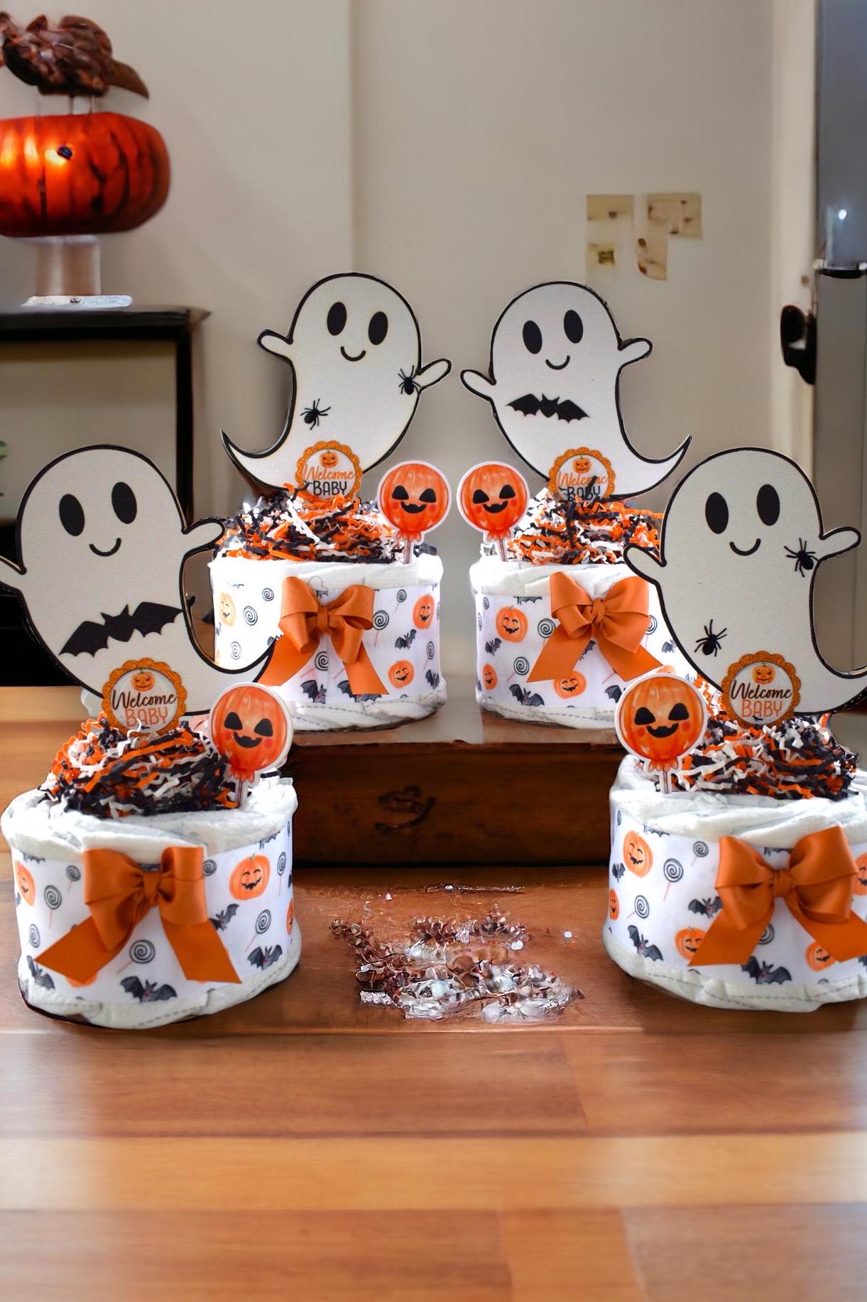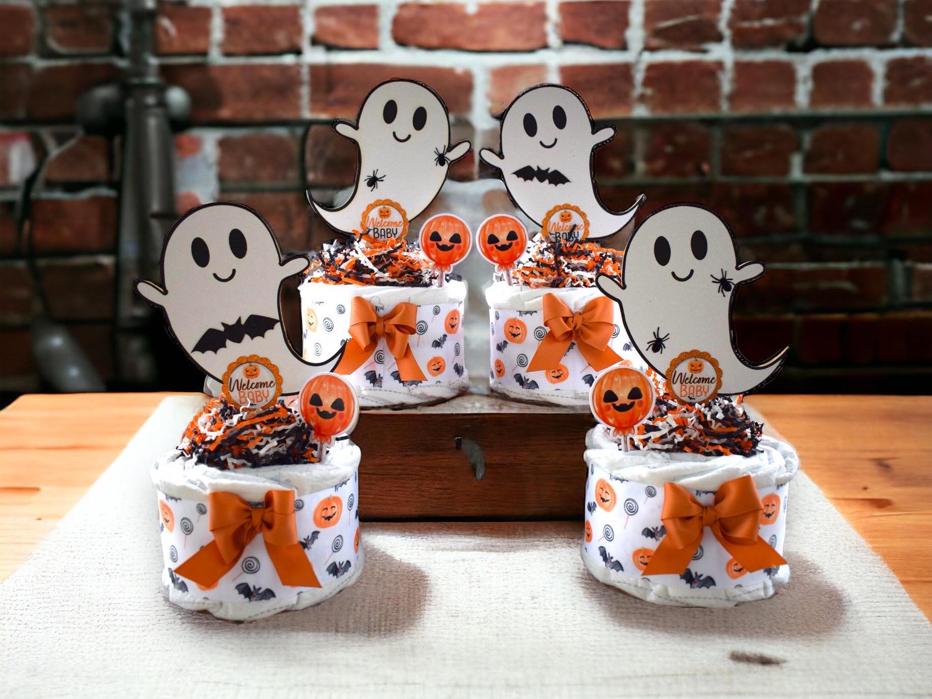 Halloween Pumpkin Ghost Diaper Cake Baby Shower, Halloween Baby Shower Centerpieces Decoration, Orange Ghost Shower Party Decor