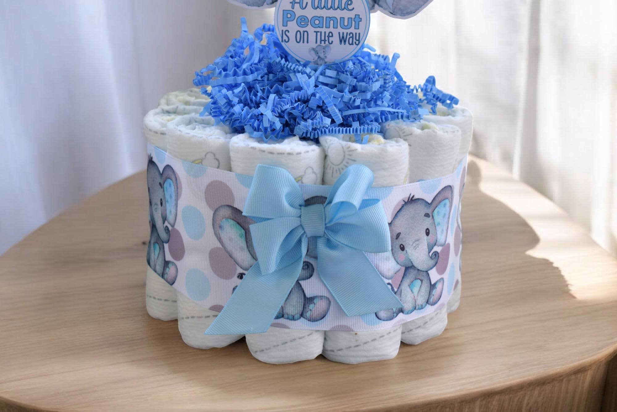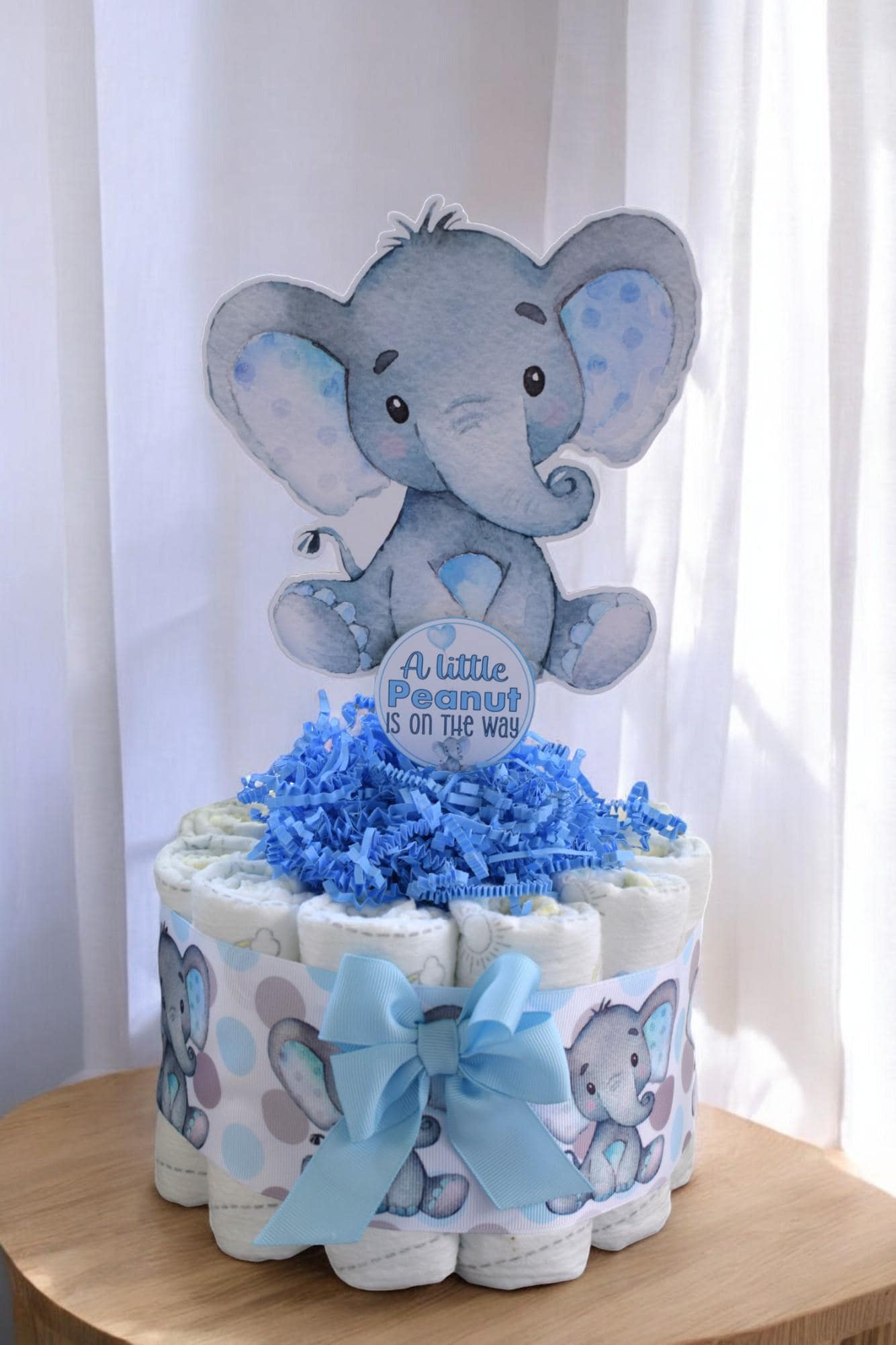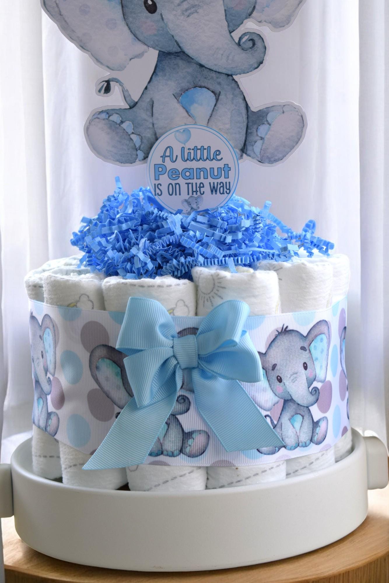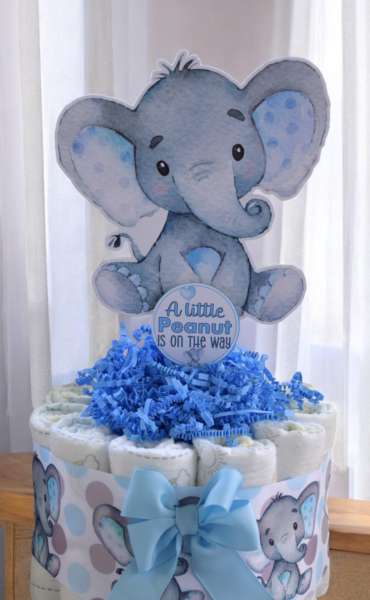 Blue Elephant Mini Diaper Cake Baby Shower, Baby Shower Centerpieces Decorations, Girls Room Nursery Decor, New Mom Gifts, Baby Shower Gift