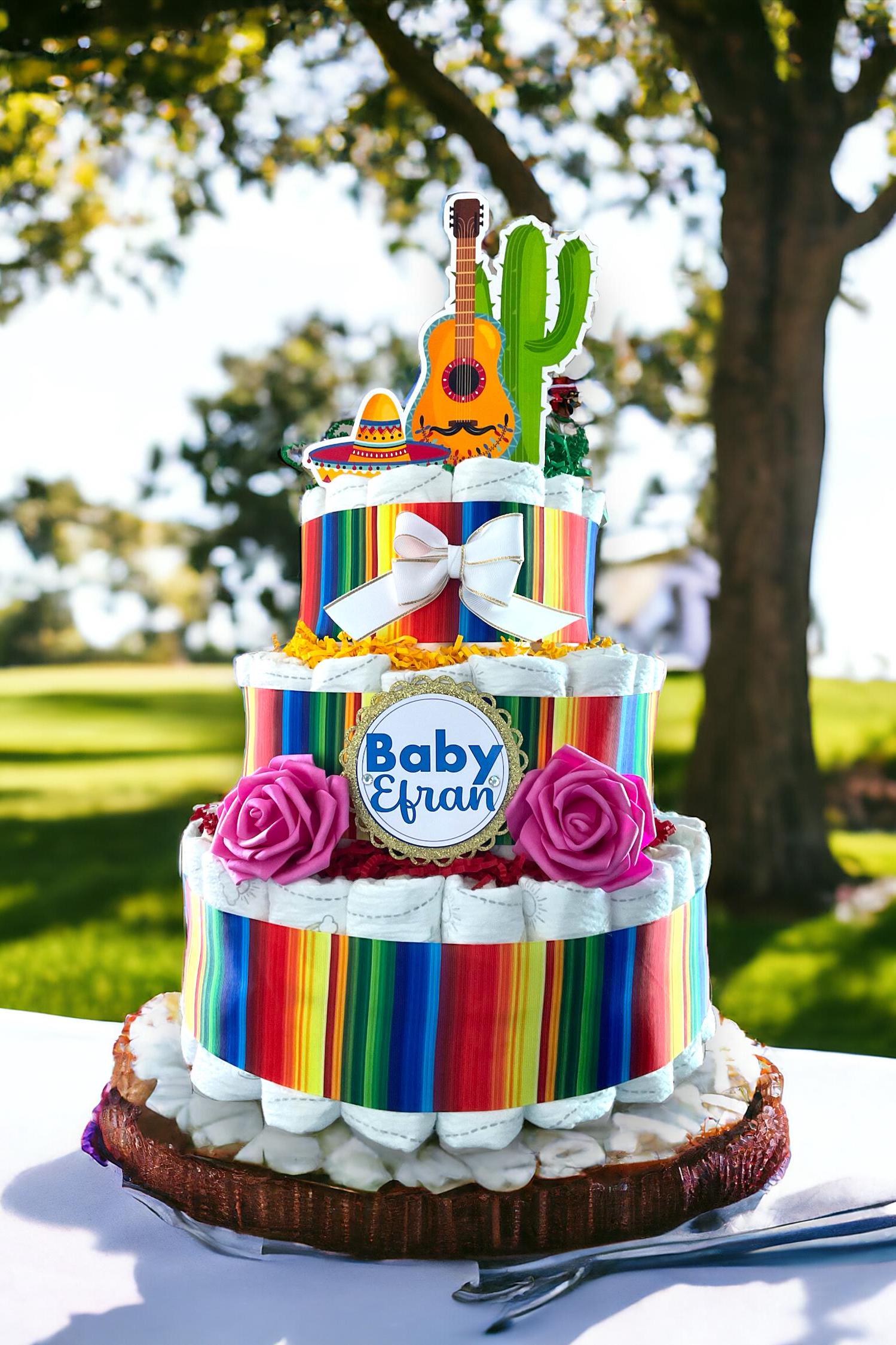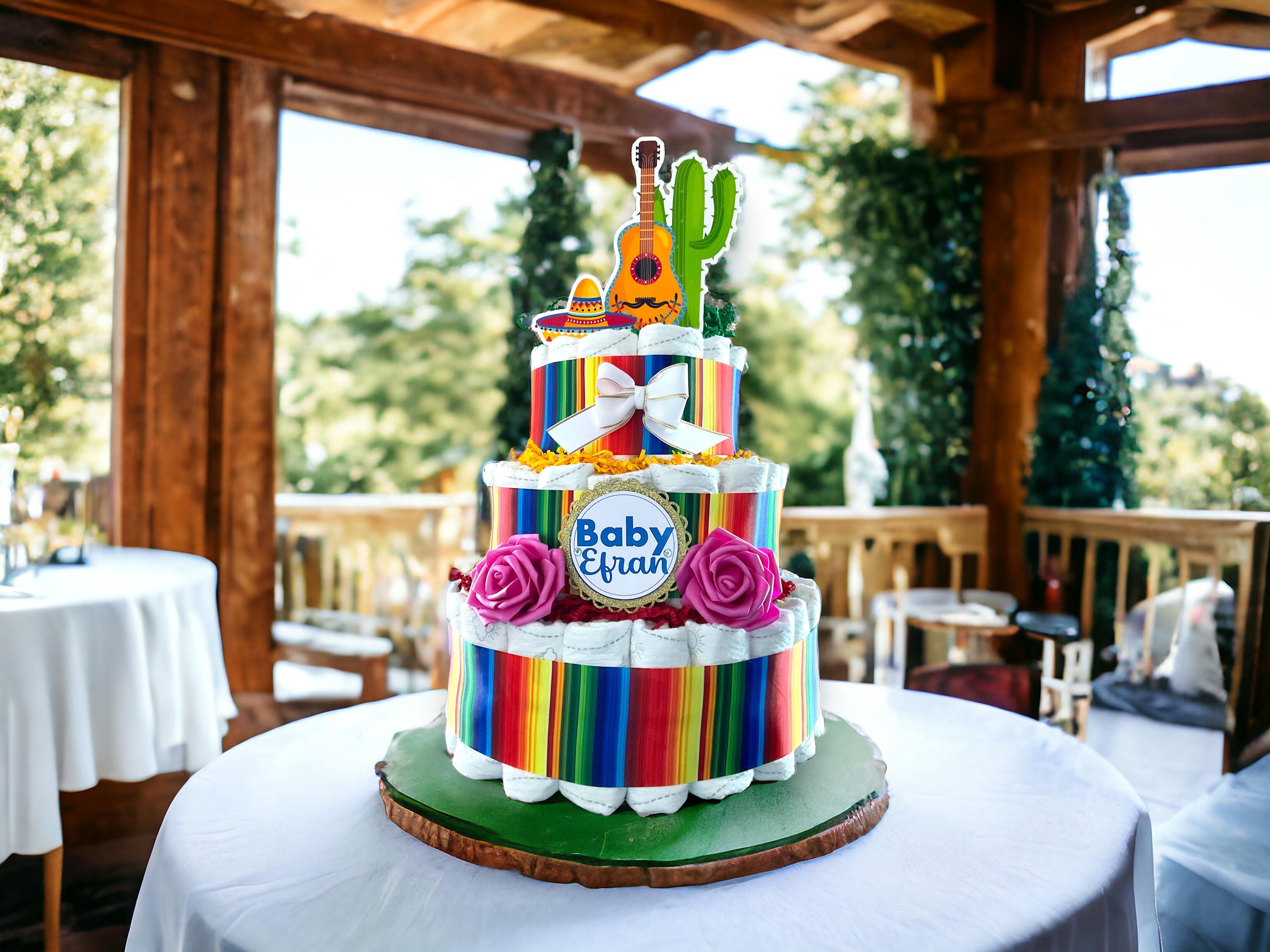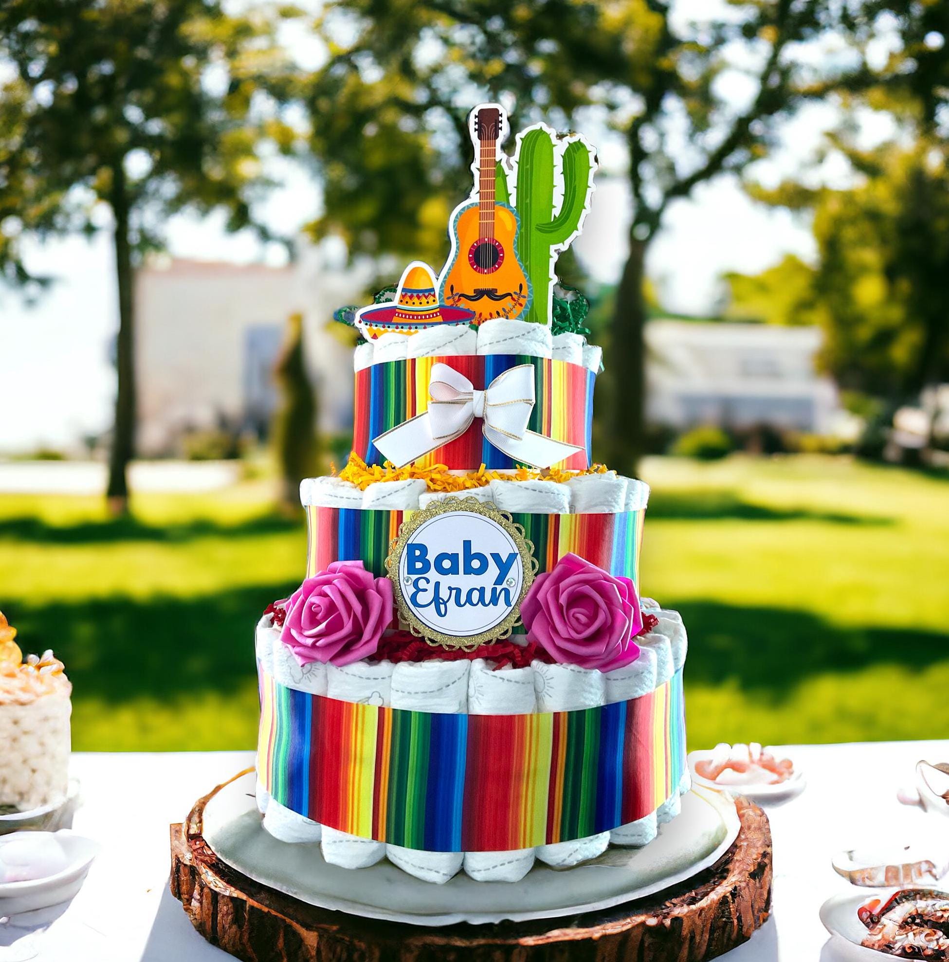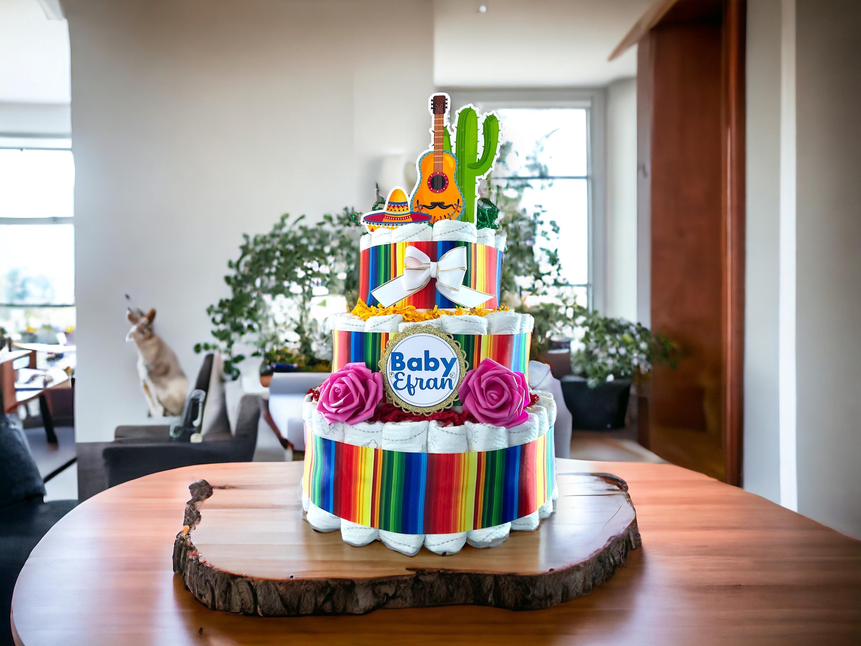 -. This DIAPER CAKE is decorated with sapare mexican colors.