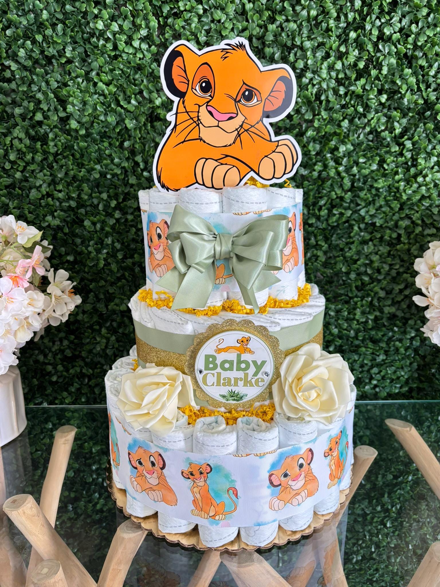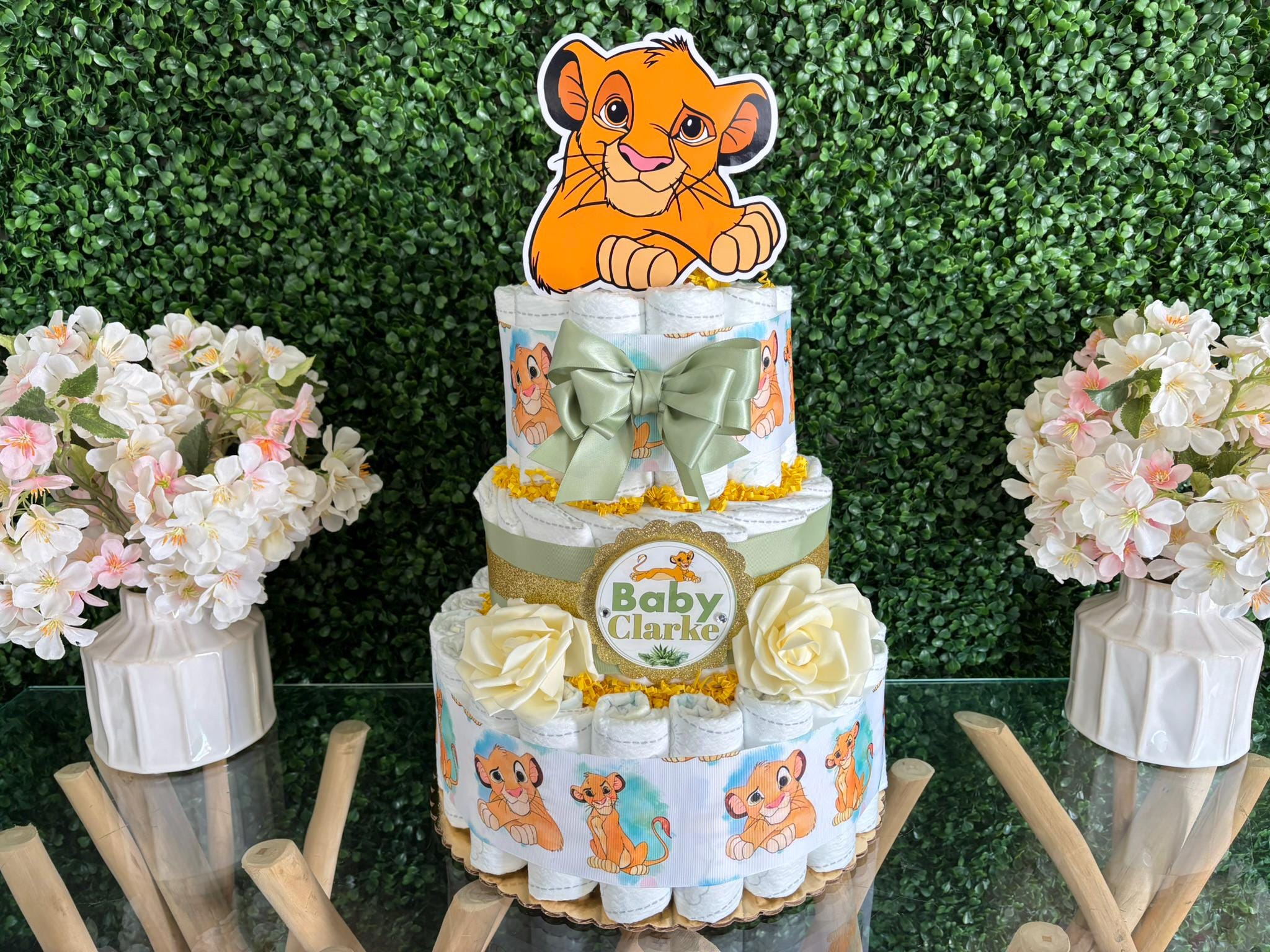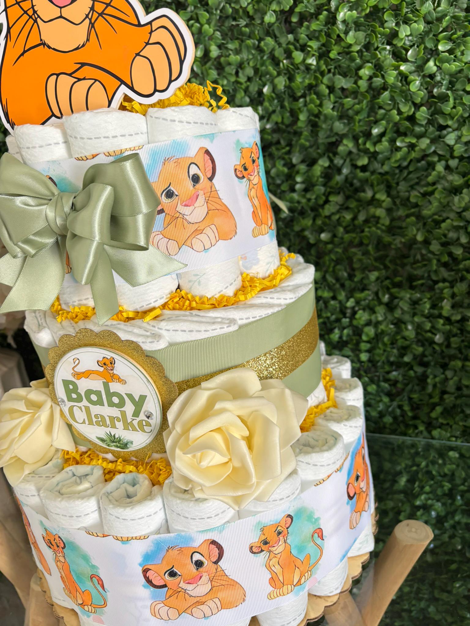 This Gorgeous Lion King 3 Tiers DiaperCake are the perfect centerpieces for your baby shower. We can match any shower theme.