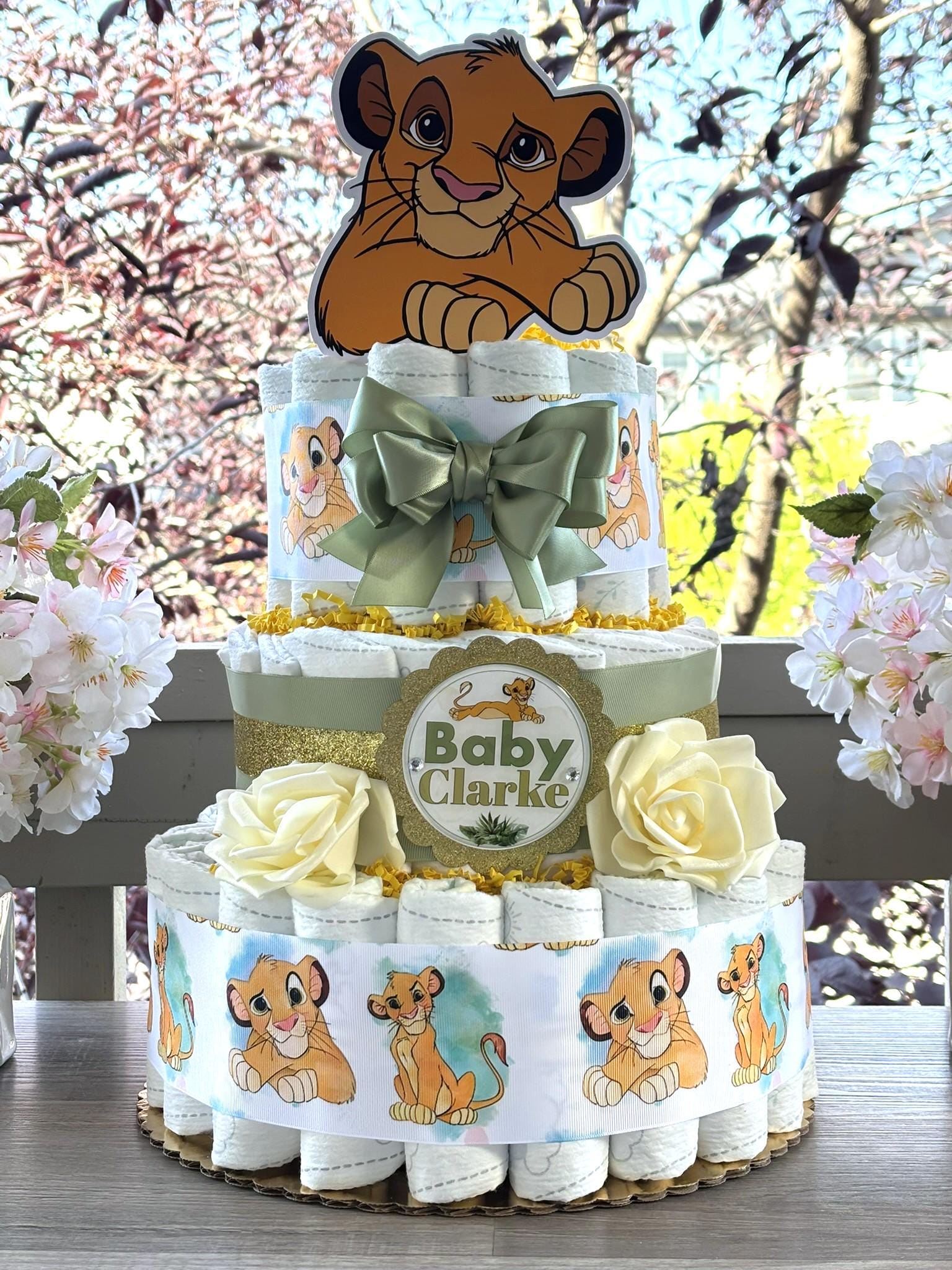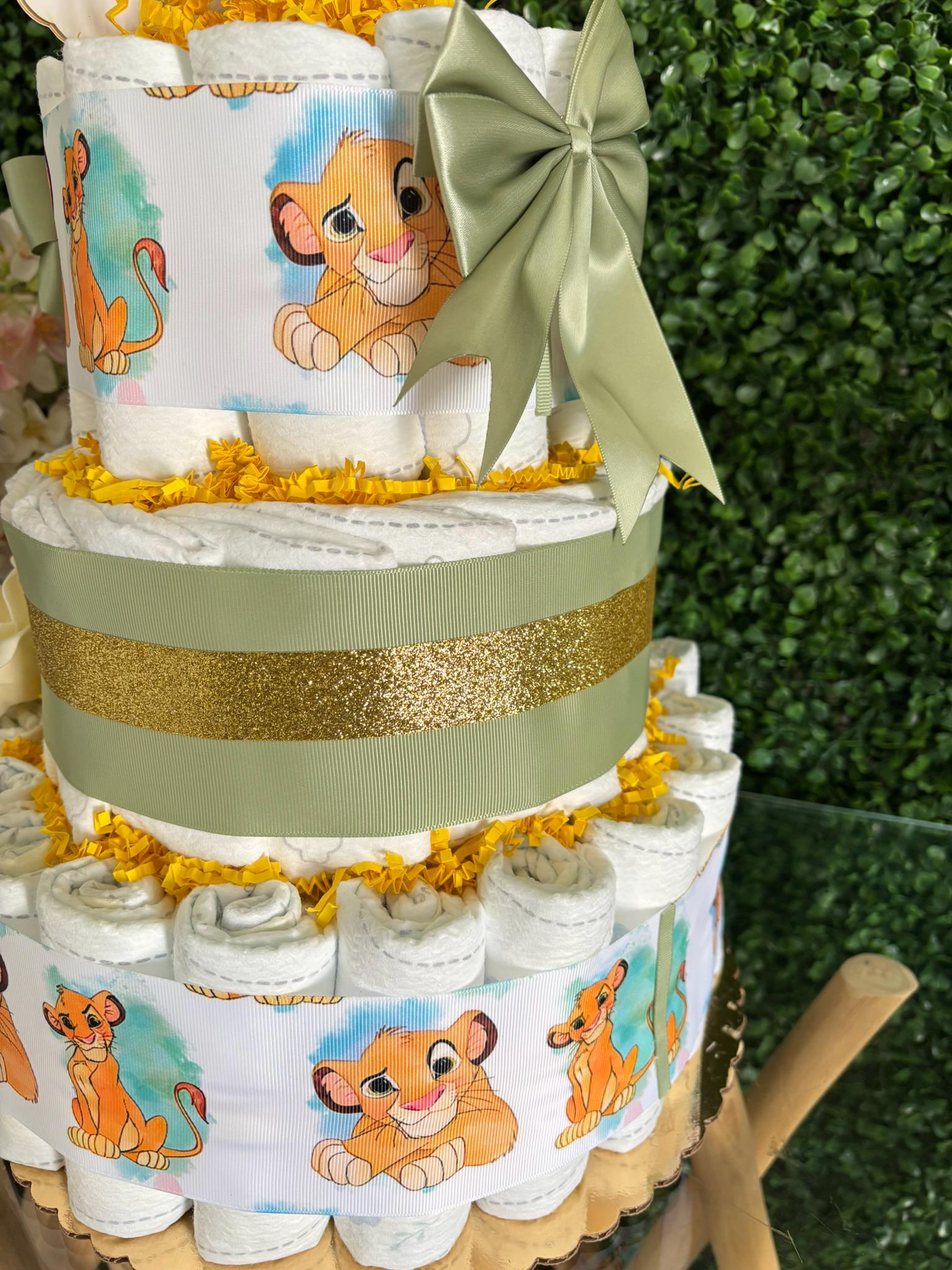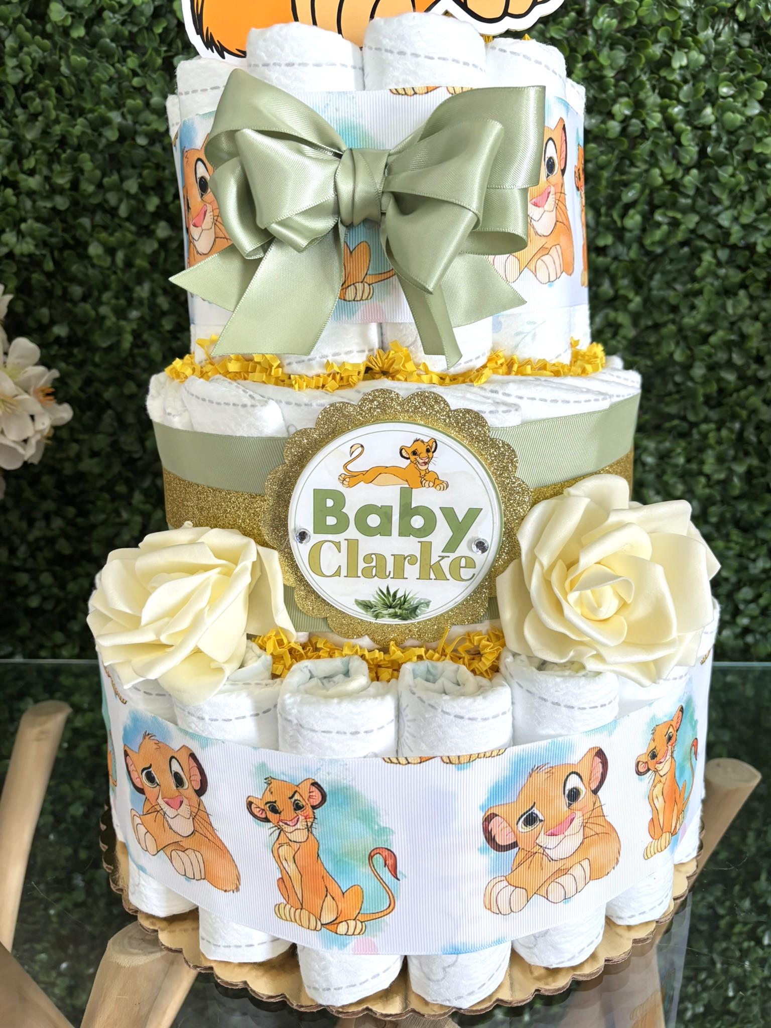 This Gorgeous Lion King 3 Tiers DiaperCake are the perfect centerpieces for your baby shower. We can match any shower theme.