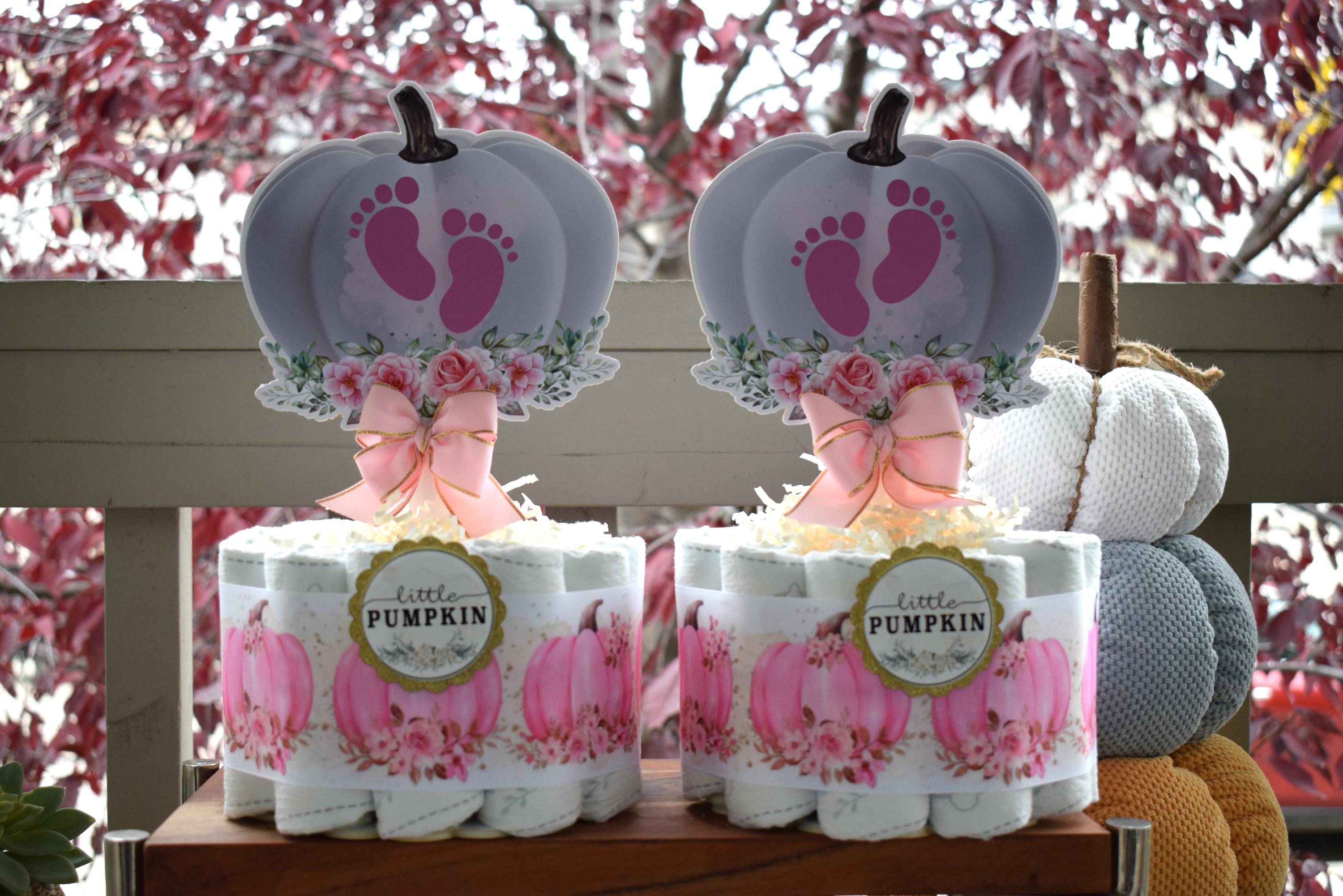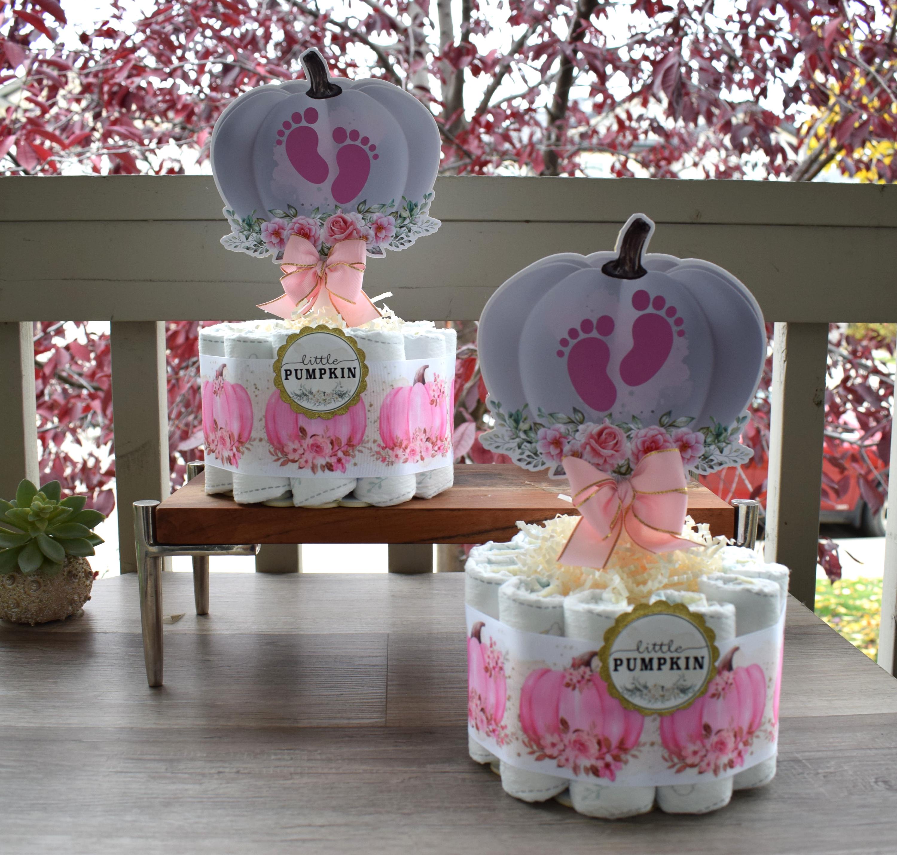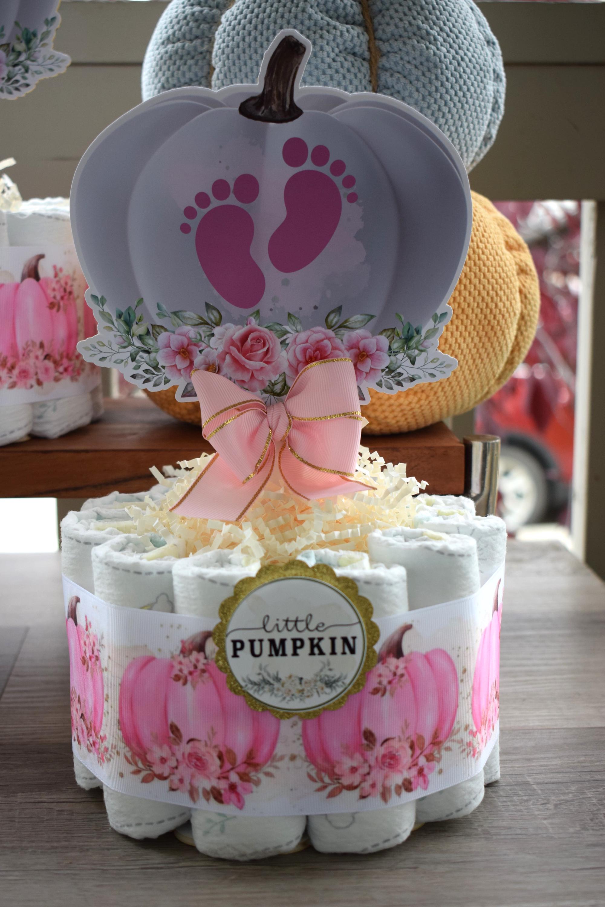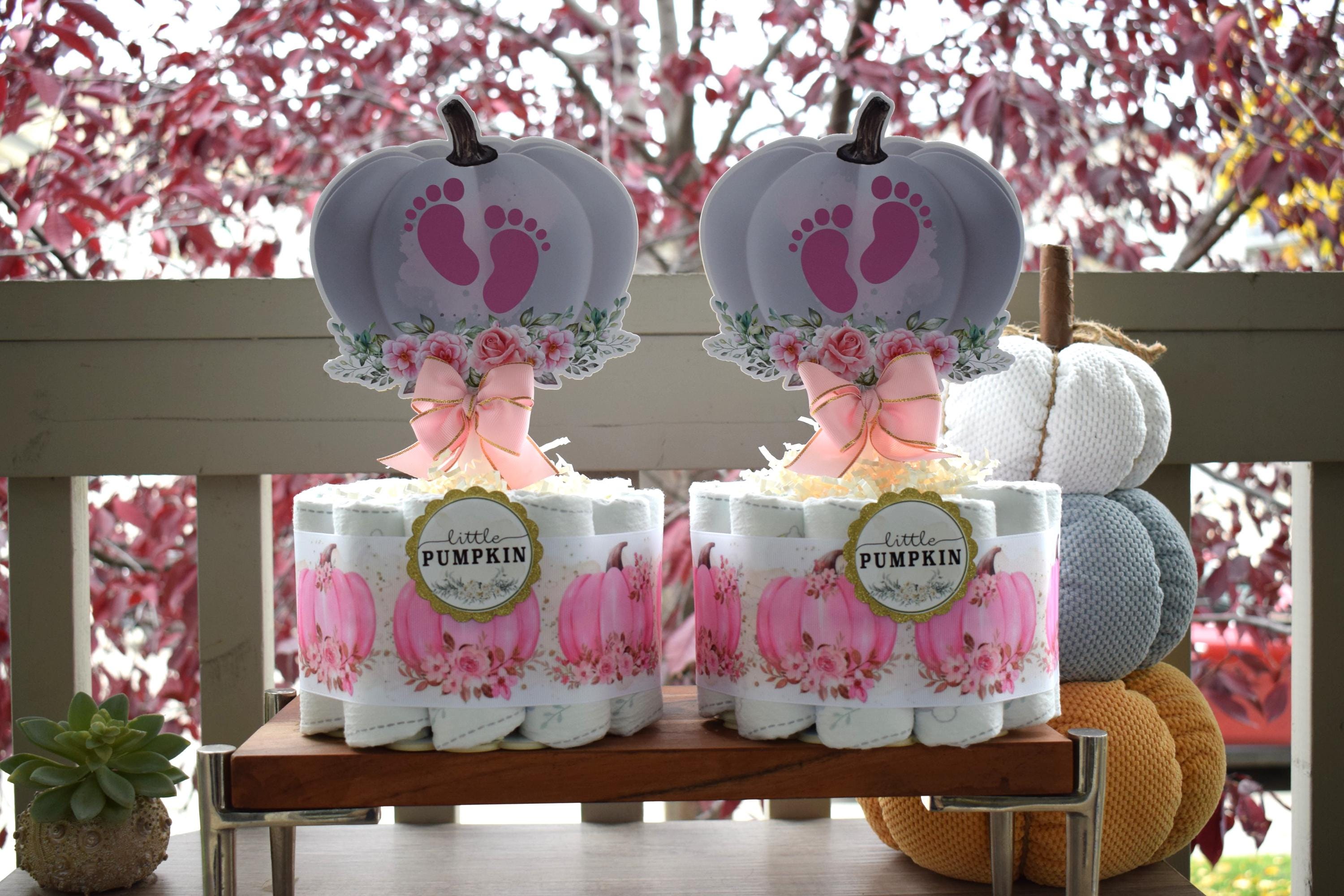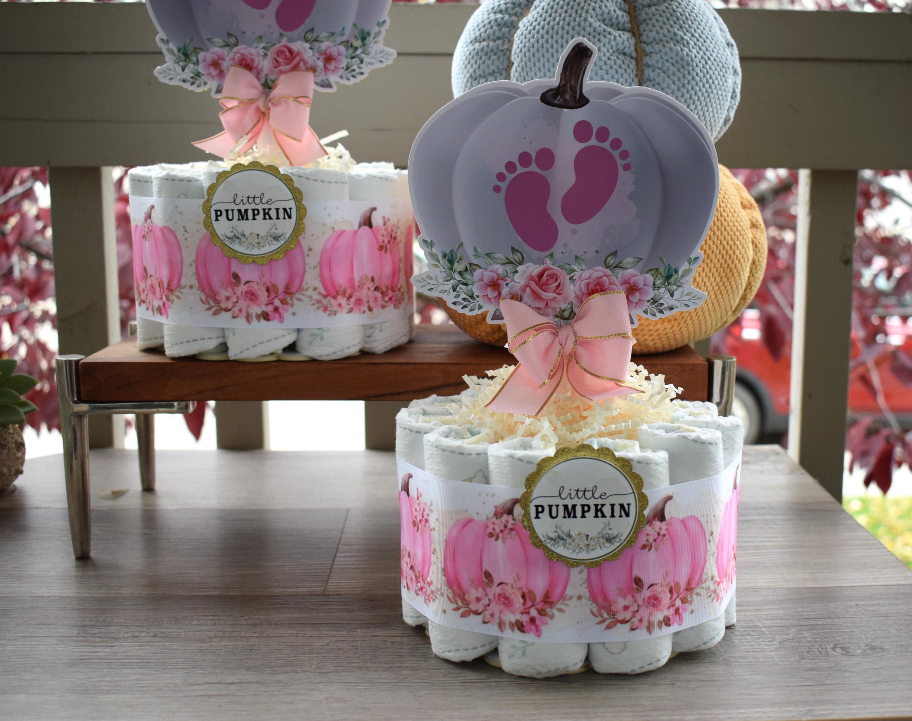 Girl Pumpkin Mini Diaper Cake Baby Shower, Pink Girl Pumpkin Baby Shower Centerpieces Decorations, Girly Shower Party Decor, New Mom Gifts