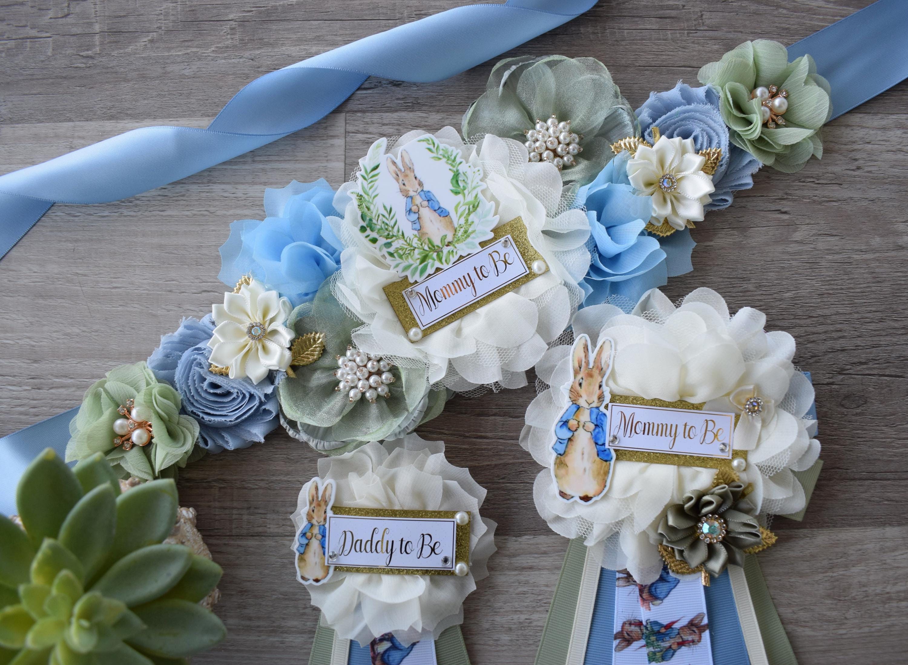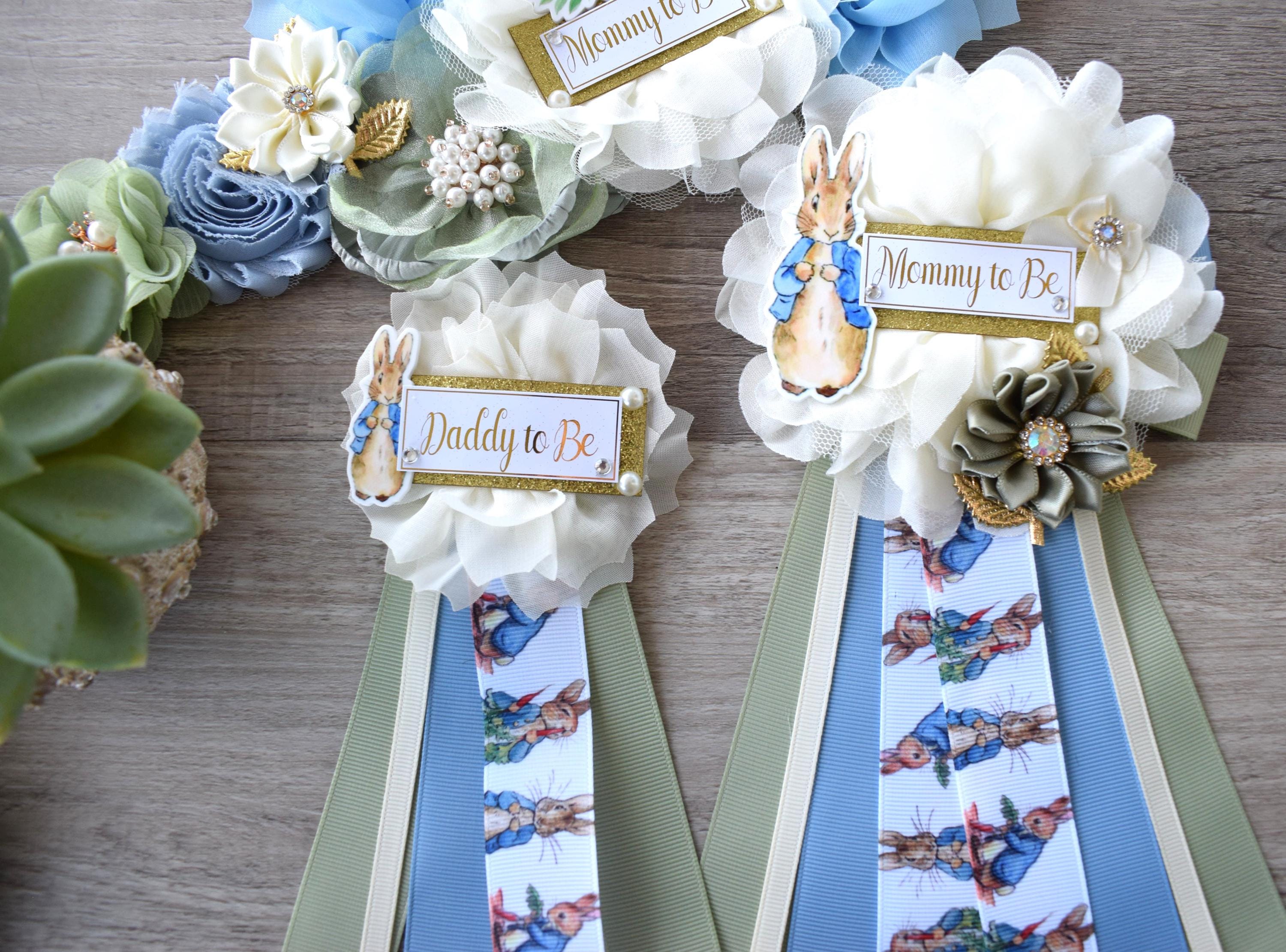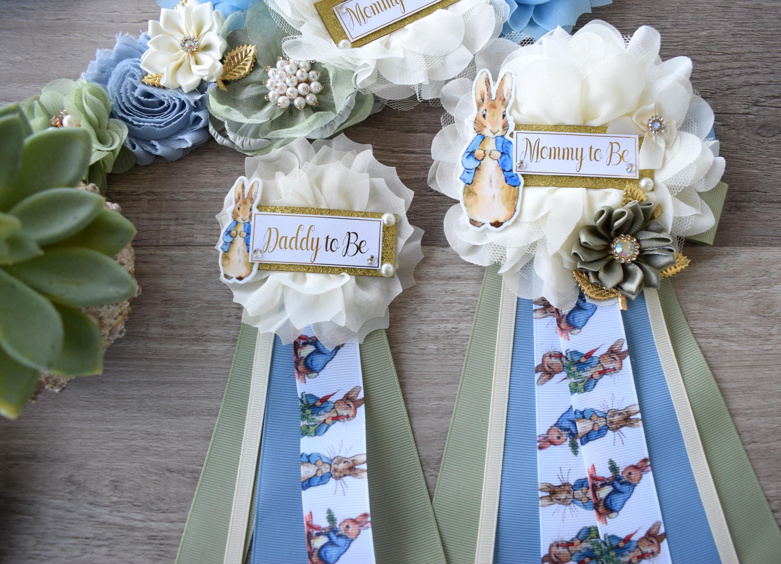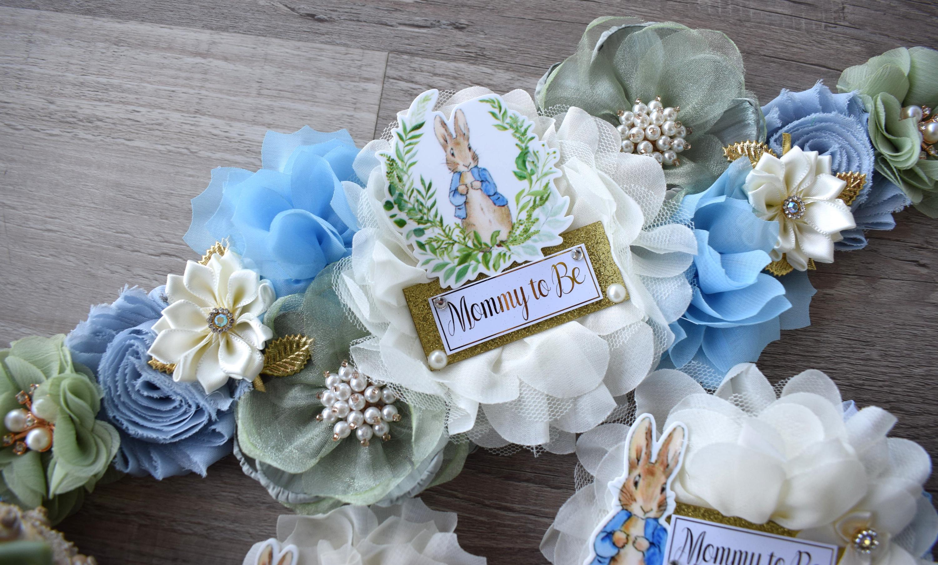 Rabbit Baby Shower, Boy Rabbit Mommy to Be Pin, Blue Green Rabbit Shower, Rabbit Mommy Corsage Pin