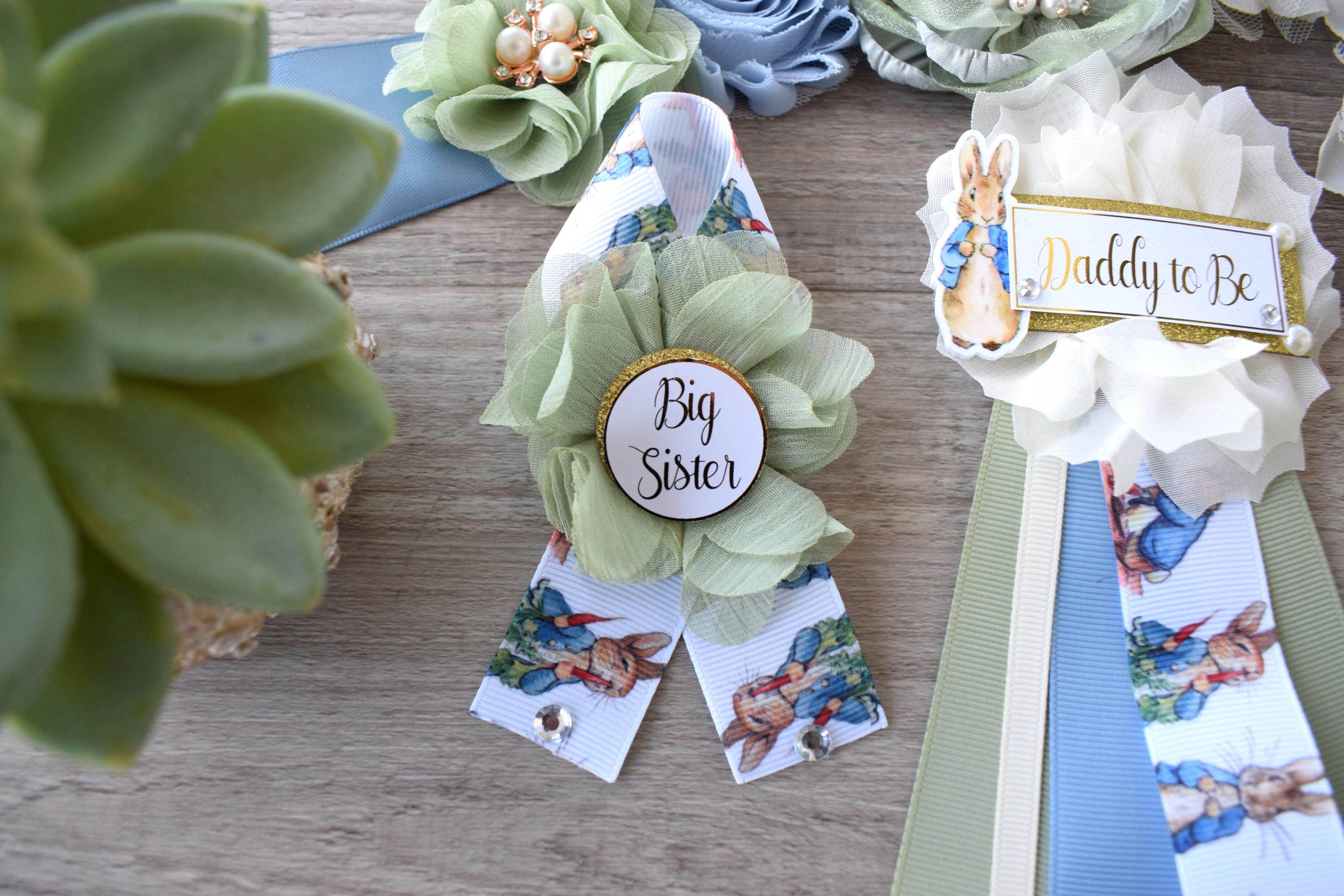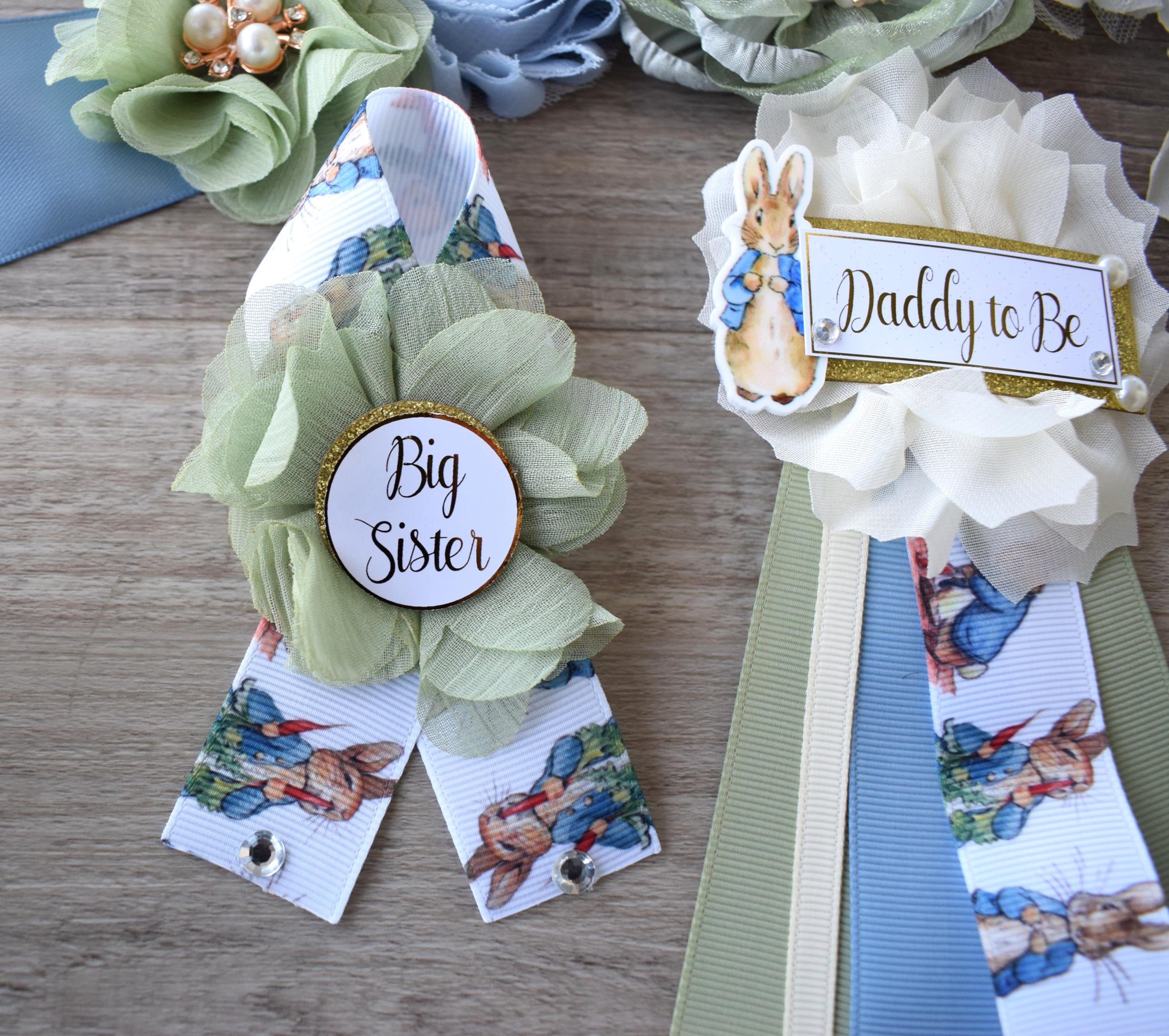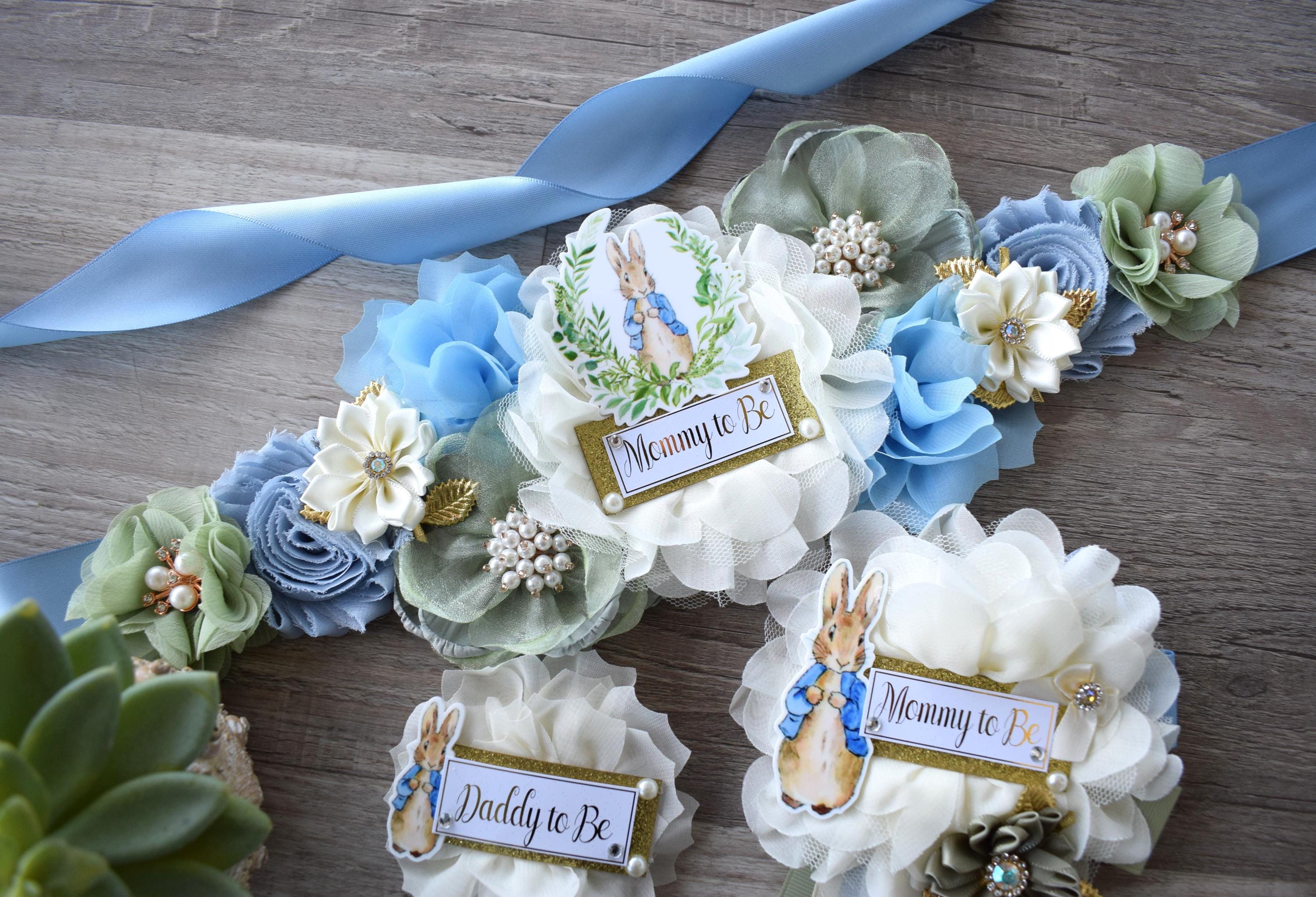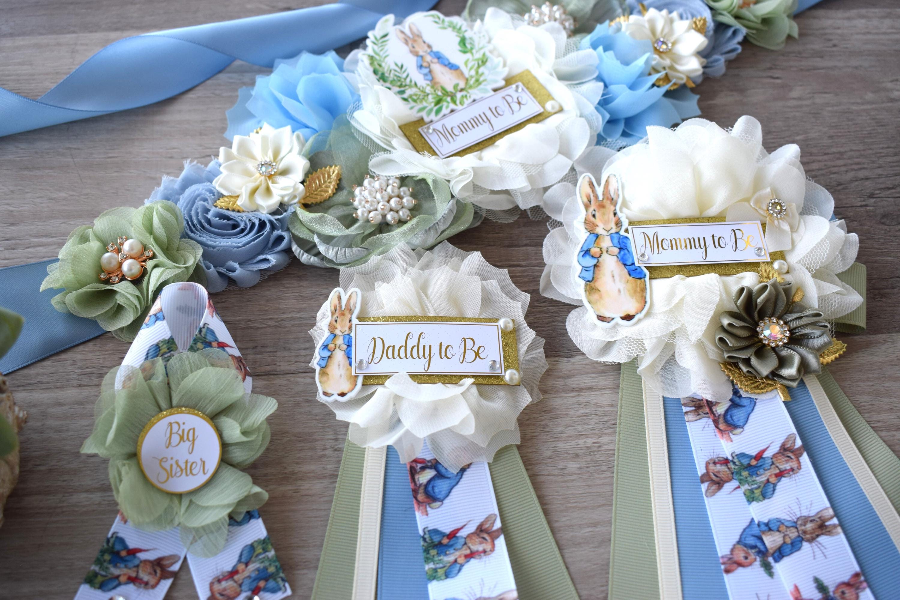Rabbit Baby Shower, Boy Rabbit Mommy to Be Pin, Blue Green Rabbit Shower, Rabbit Mommy Corsage Pin