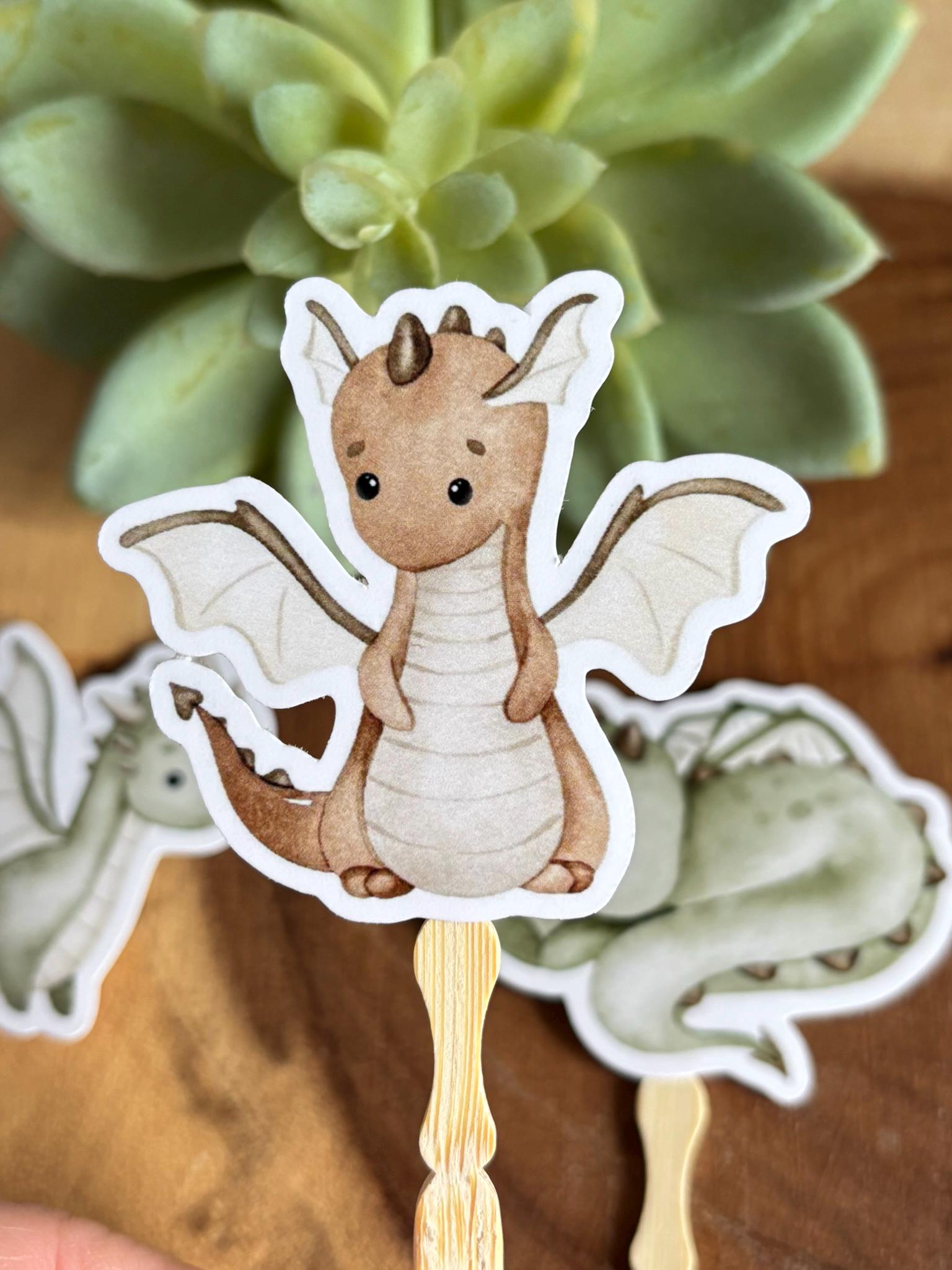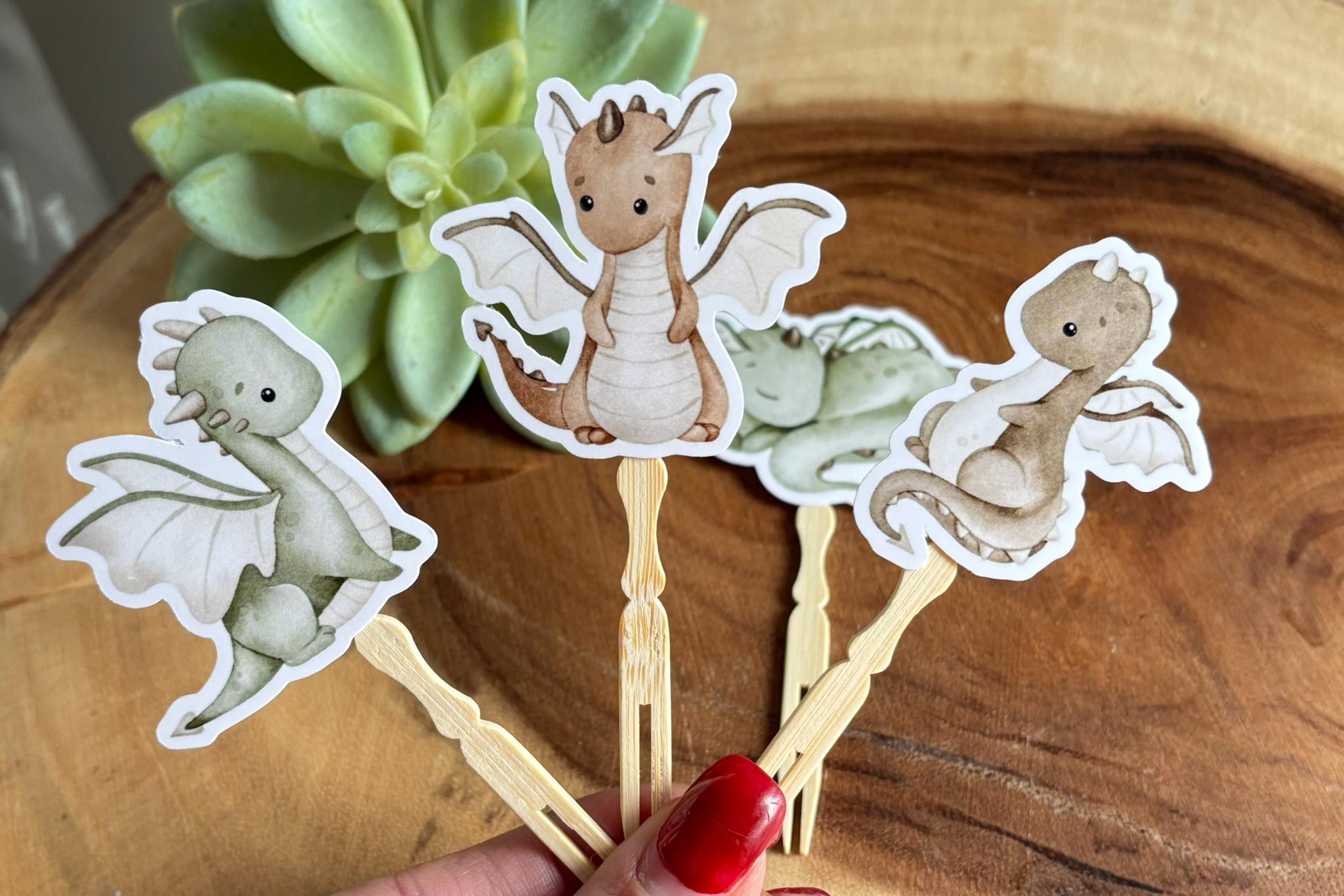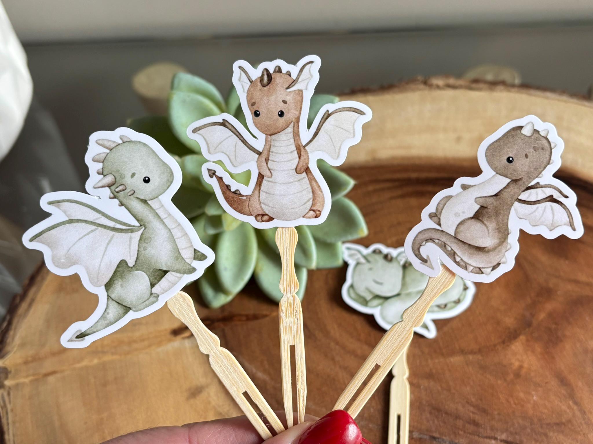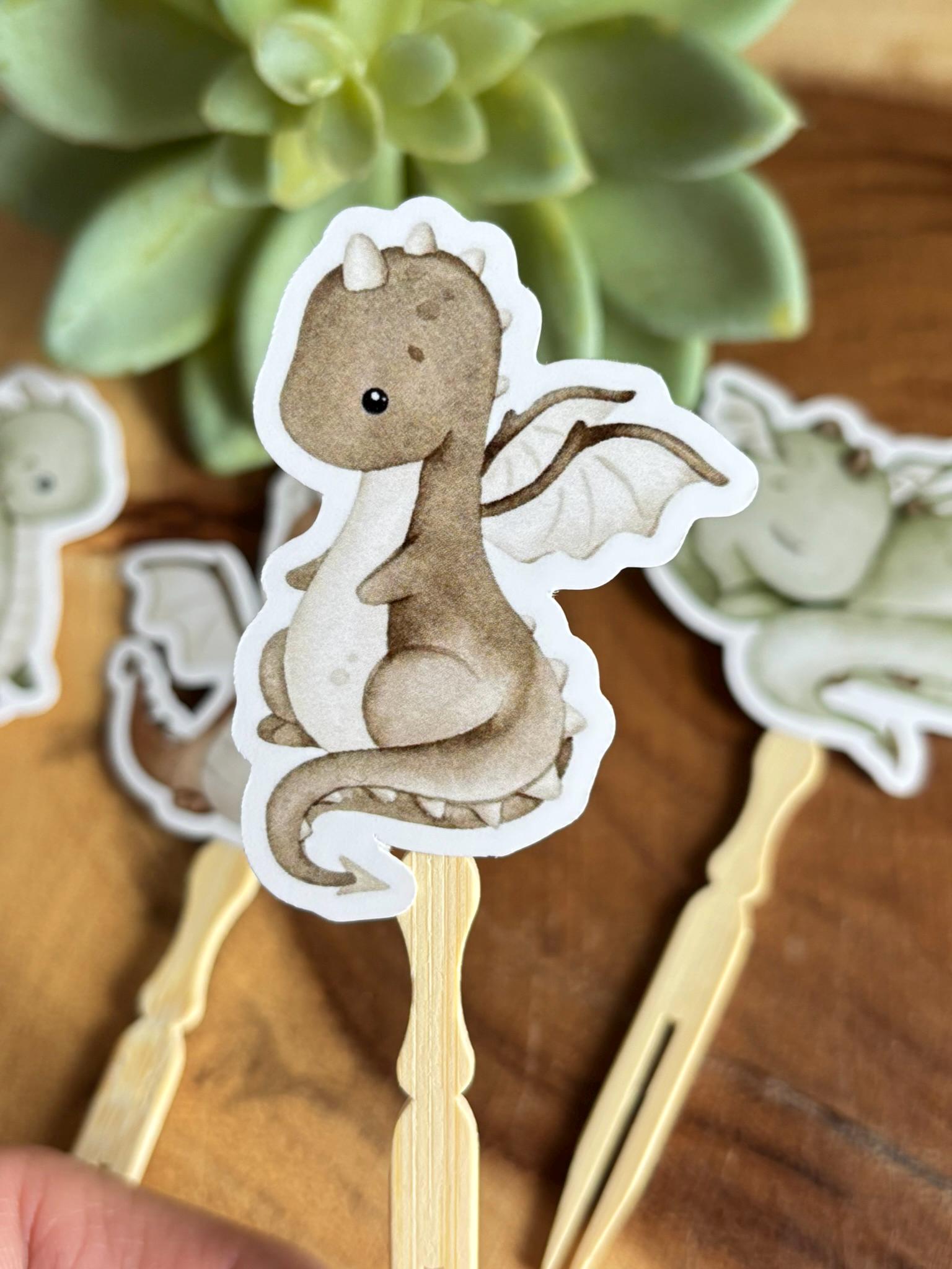 Dragon Cupcake Toppers, Dragon Baby Shower, Dino Birthday Party, Dino Diaper Cake, Neutral Dragon Cupcake Toppers - S0002