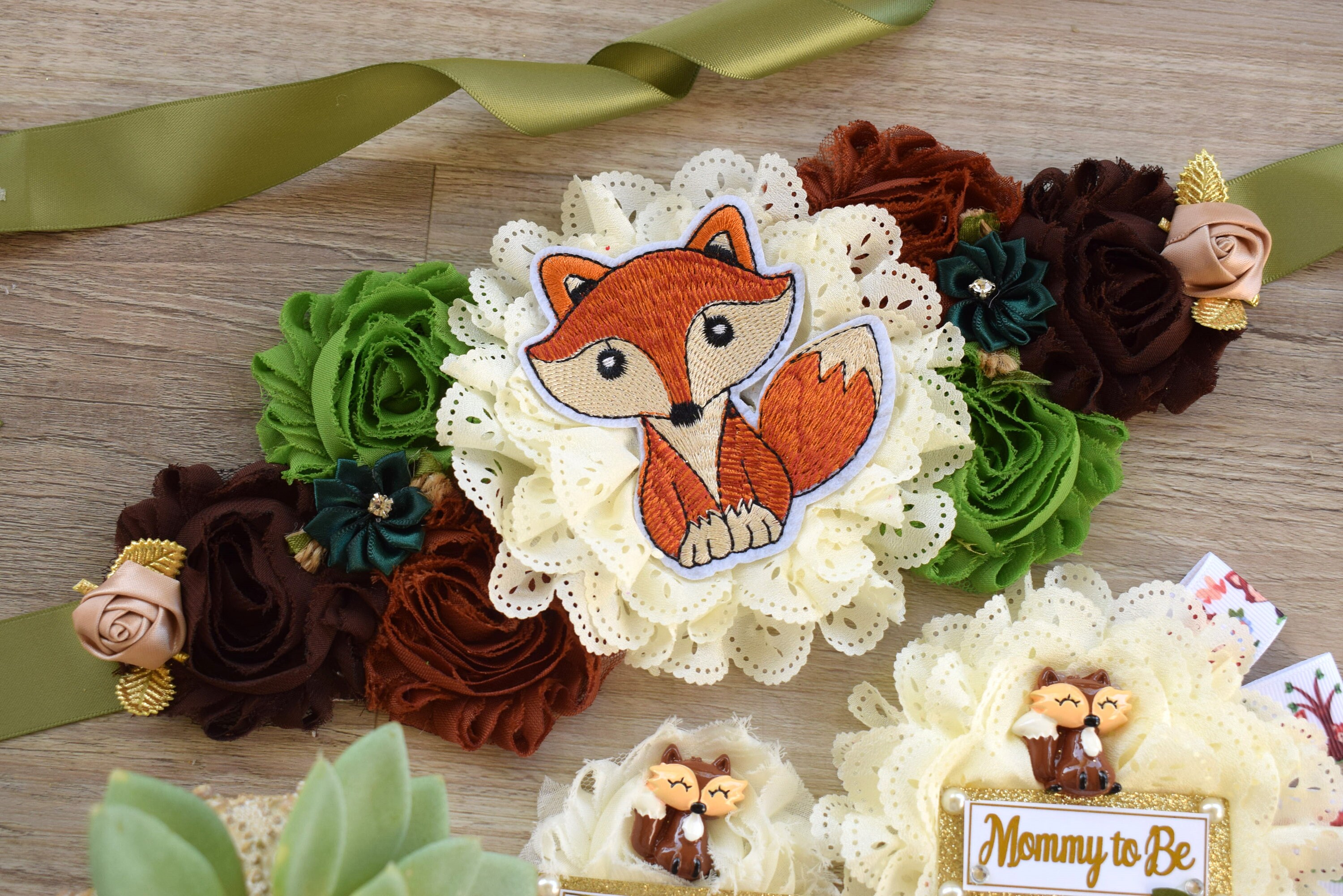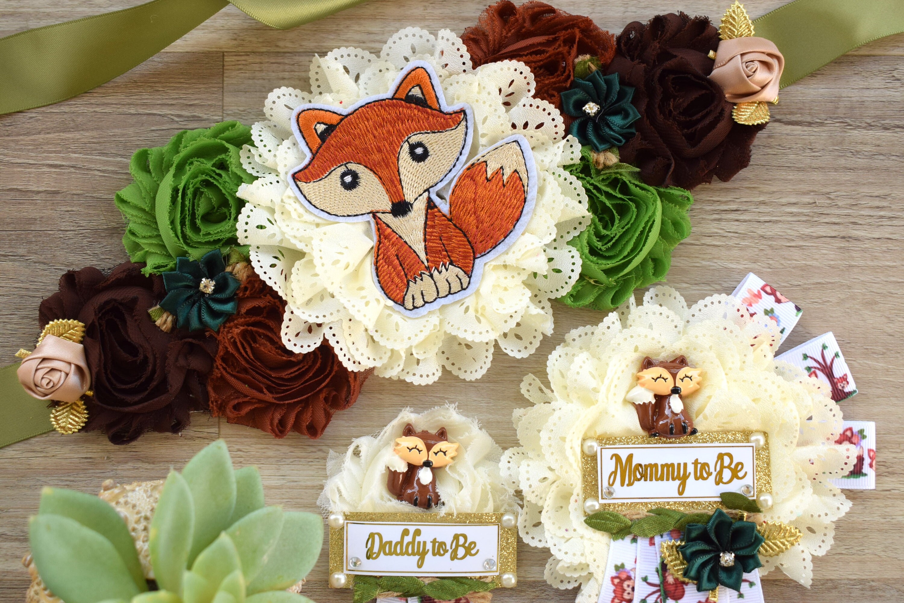 Fox Woodland Baby Shower, Fox Woodland Maternity Sash, Fox Mommy To Be Pin, Woodland Daddy To Be Pin, Fox Shower, Custom