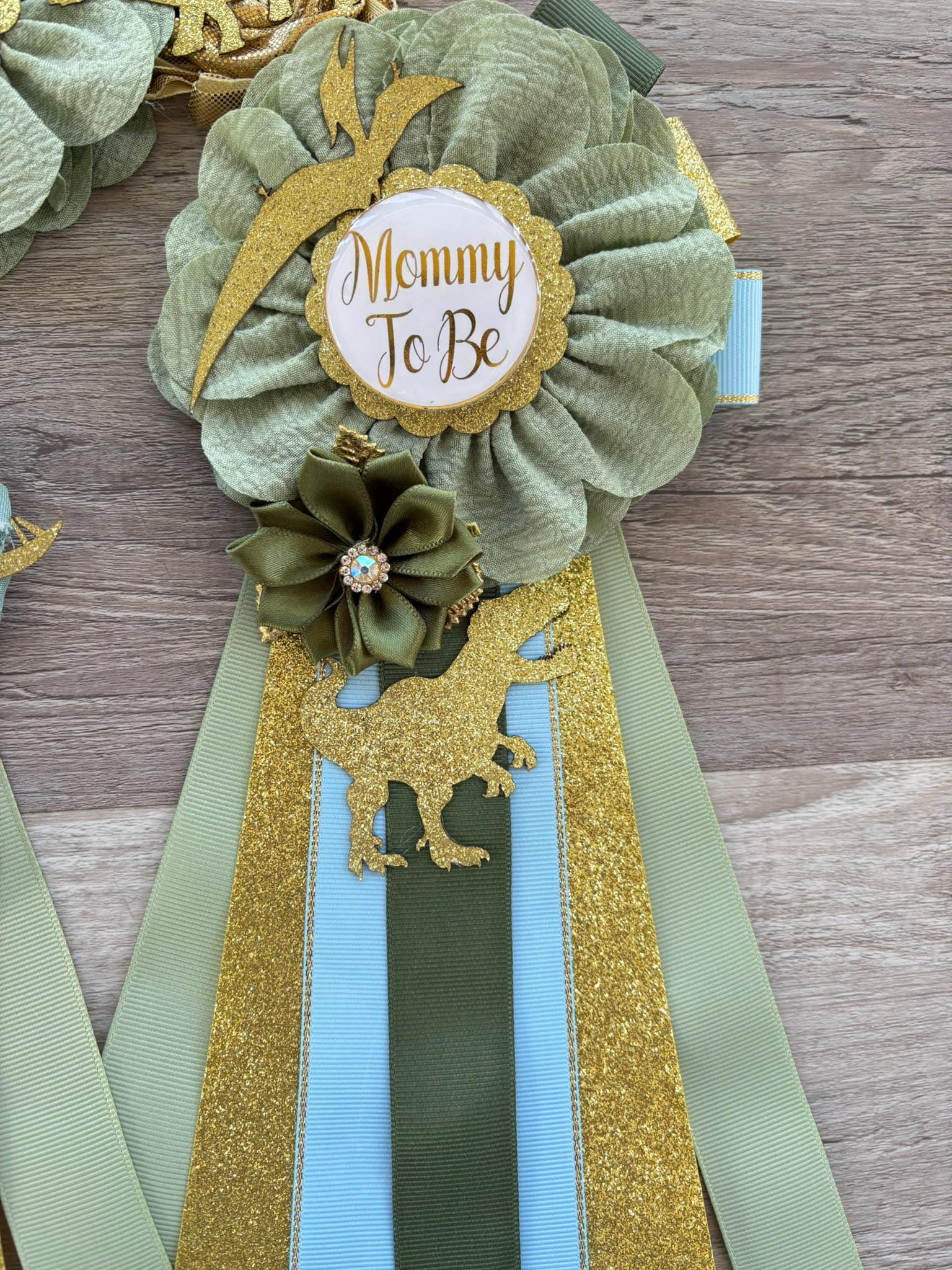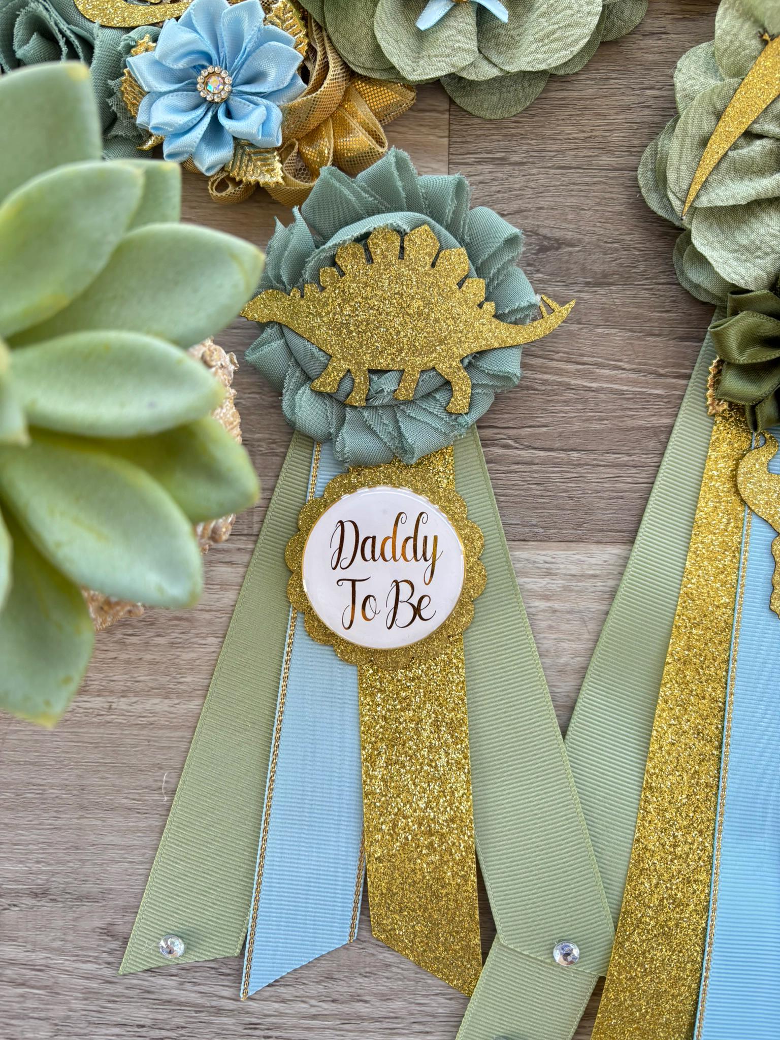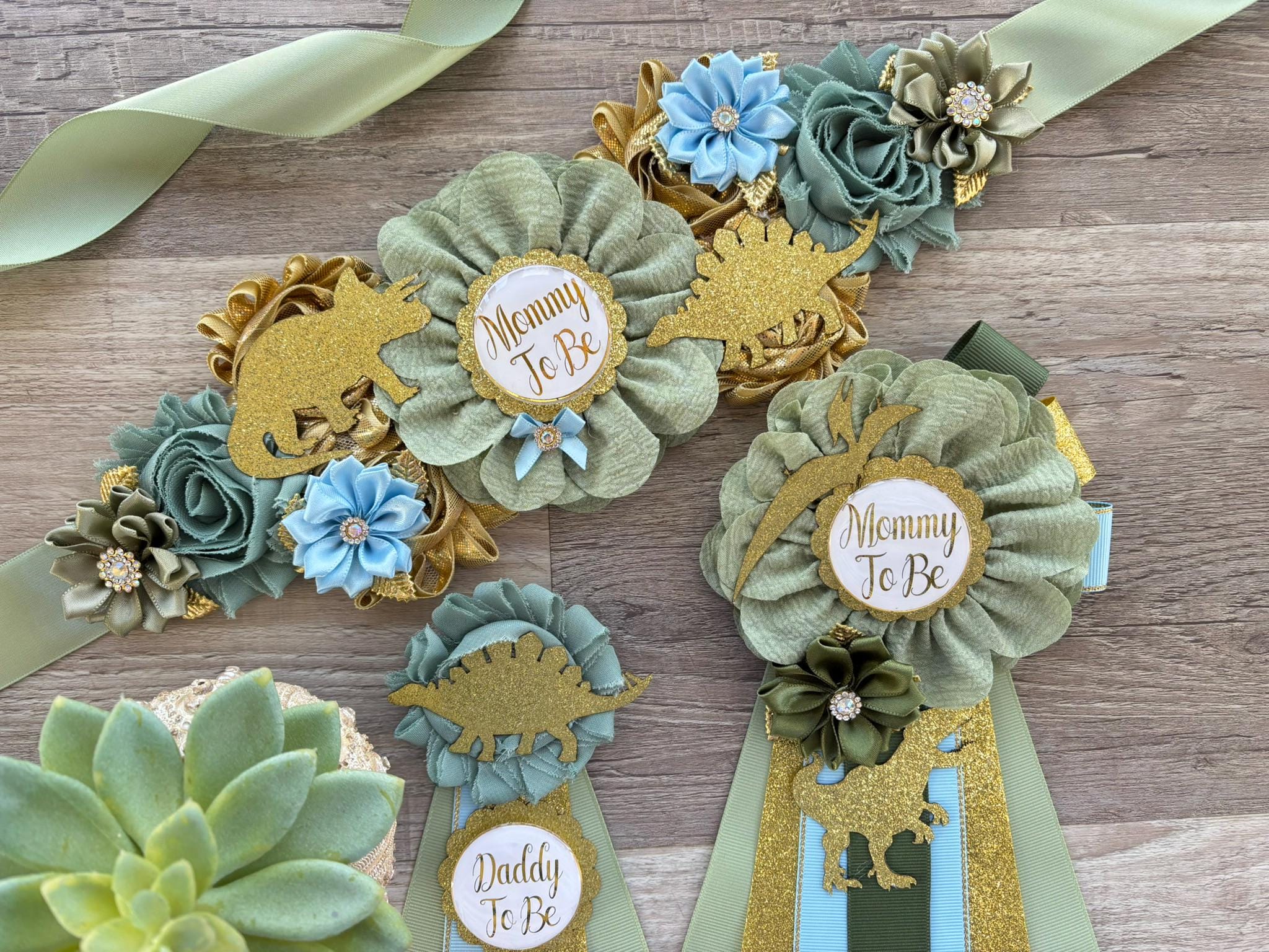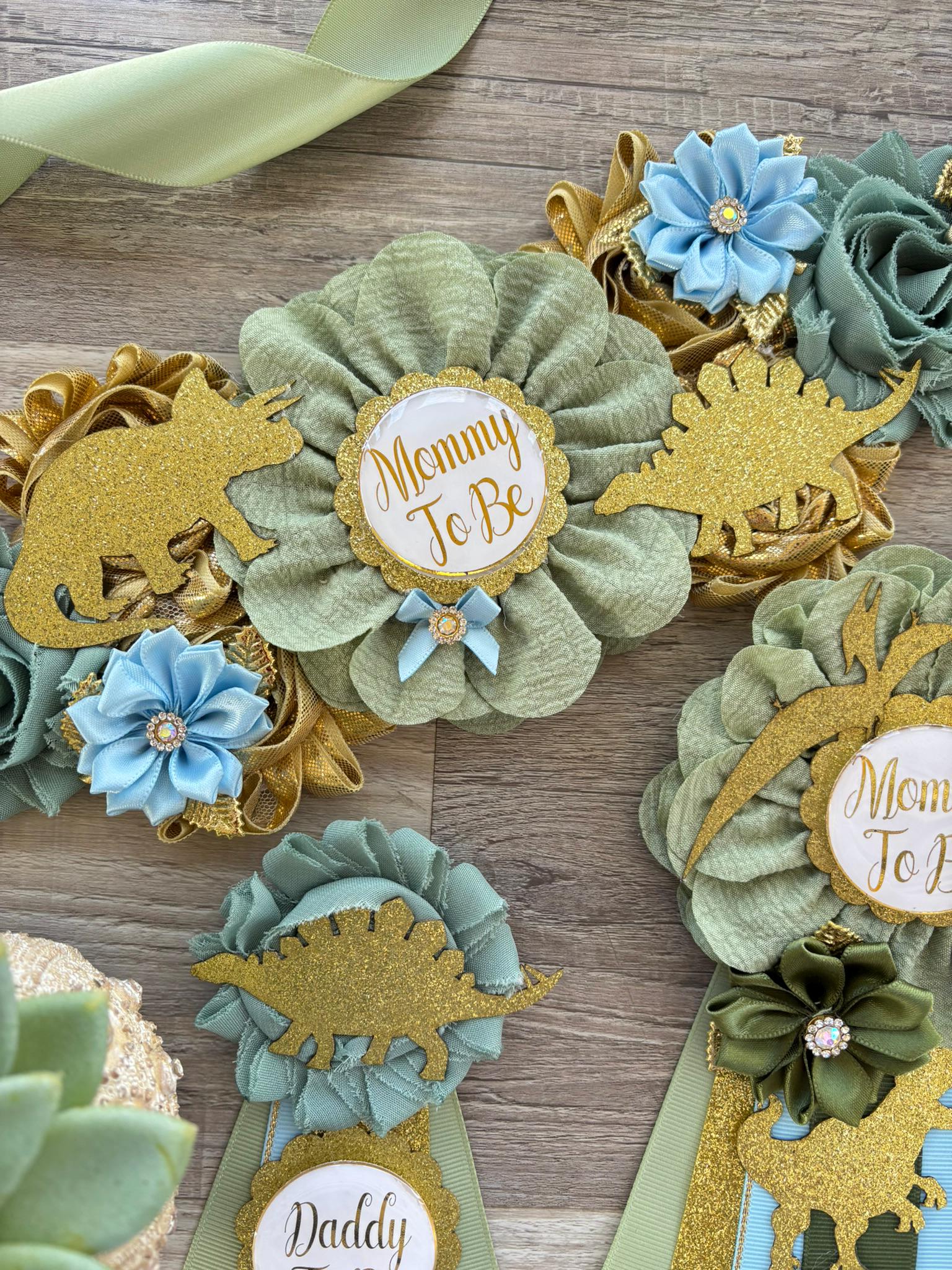 Dinosaur Baby Shower, Green Gold Flower Sash, Gold Dinosaur Animals, Greenery Gold Maternity Sash, Green Gold Dinosaur Baby Shower, Custom