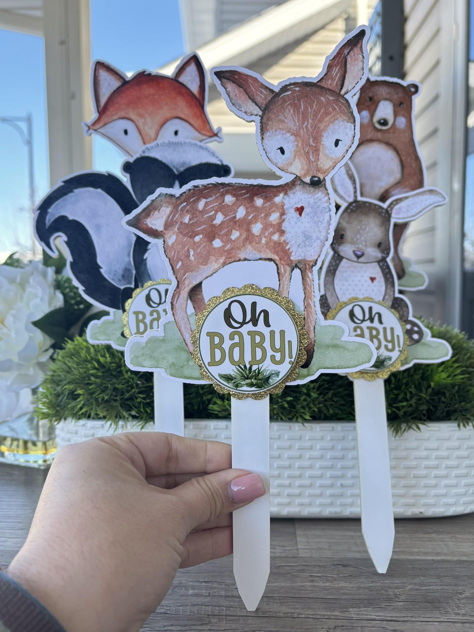This Gorgeous Woodland Cake Toppers are the perfect centerpieces for your baby shower or party. We can match any shower theme.