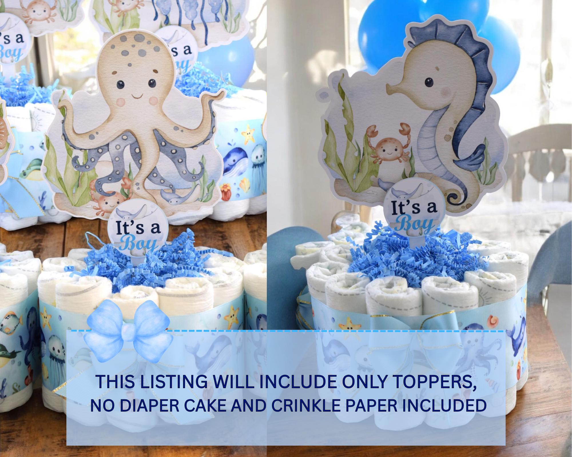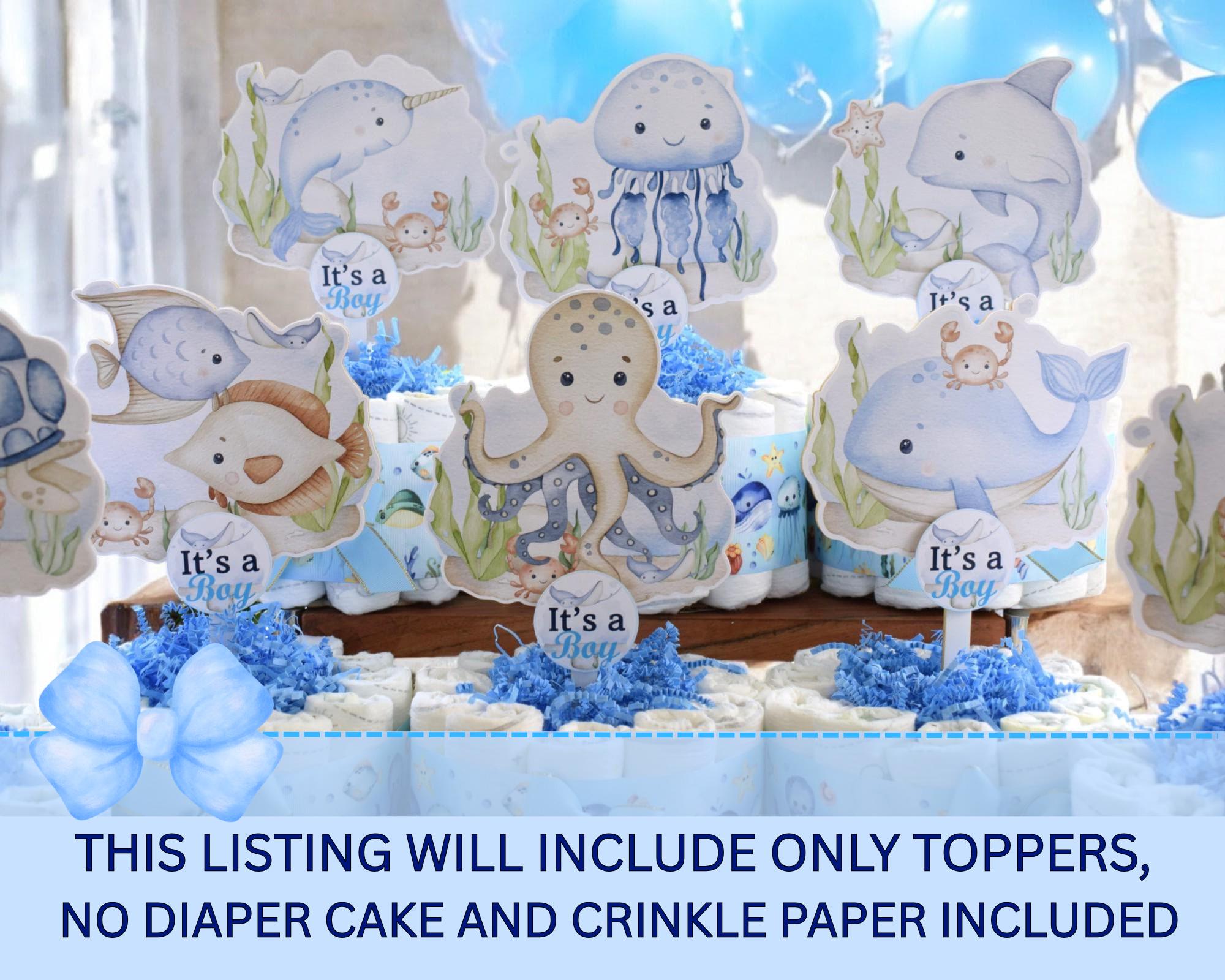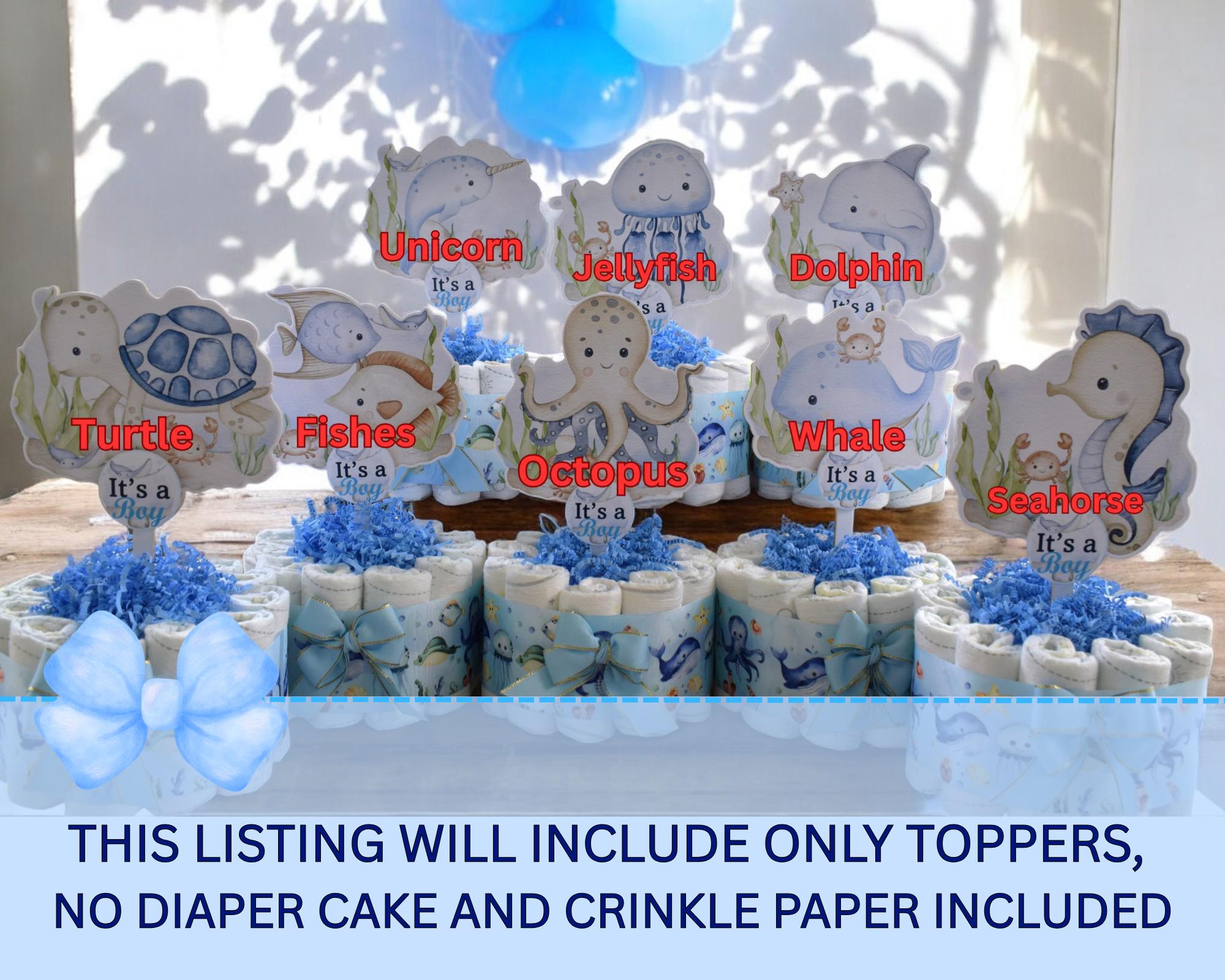 Under The Sea Topper Baby Shower, Octopus Turtle Unicorn Whale Baby Shower Centerpieces Decorations, Boy Room Nursery Decor, New Mom Gifts
