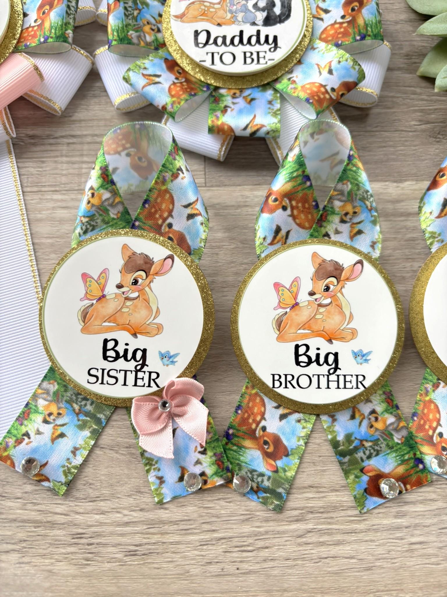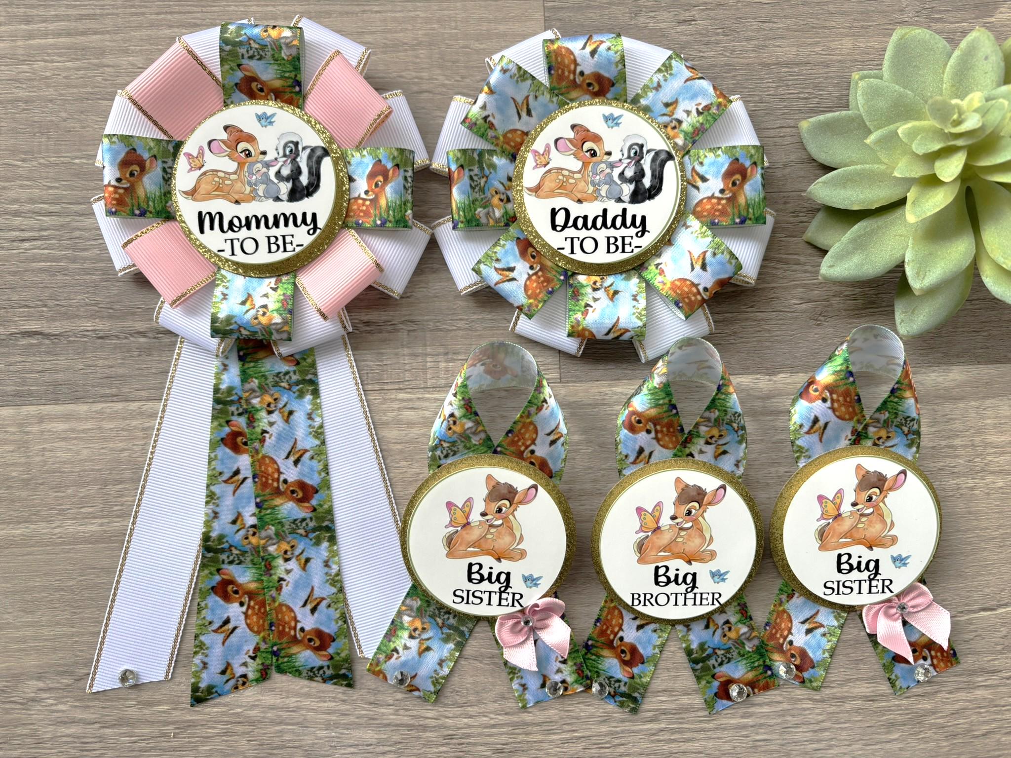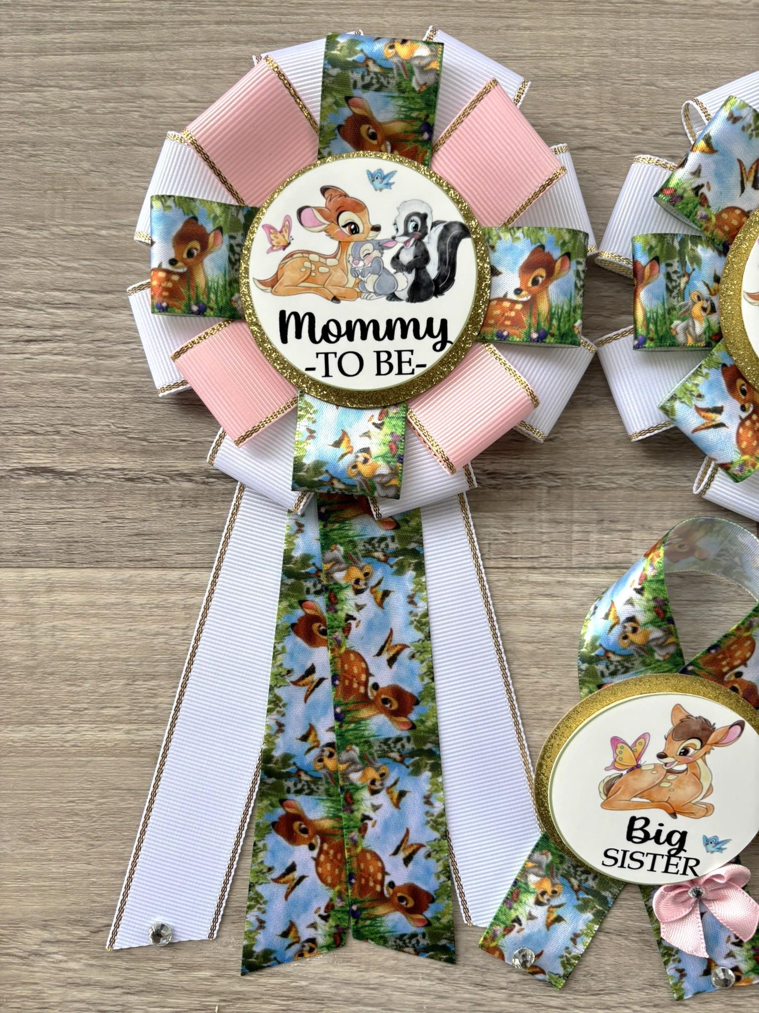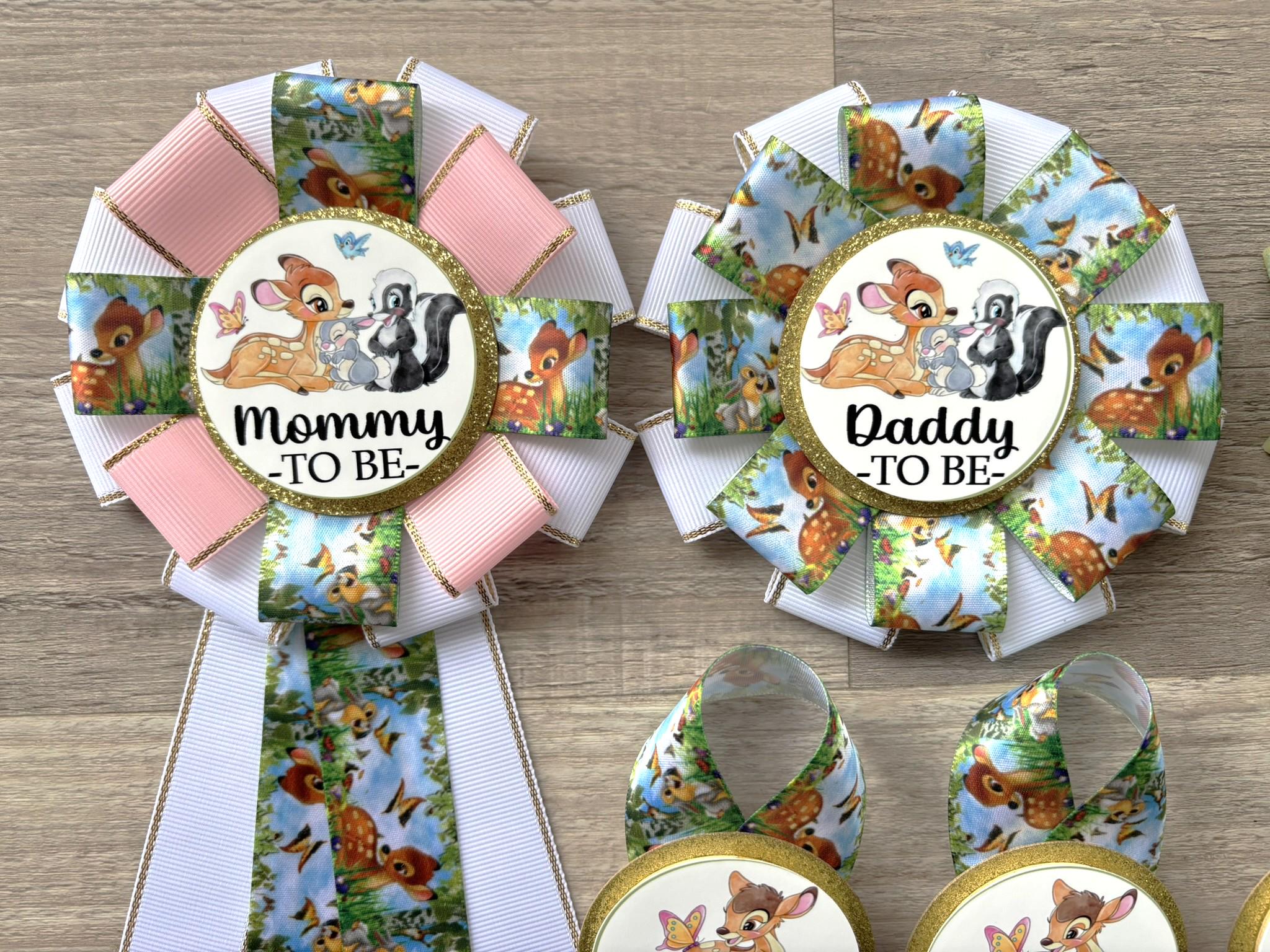 Pink Deer Baby Shower, Pink Deer Mommy To Be Ribbon Pin, Deer Daddy To Be Corsage Pin