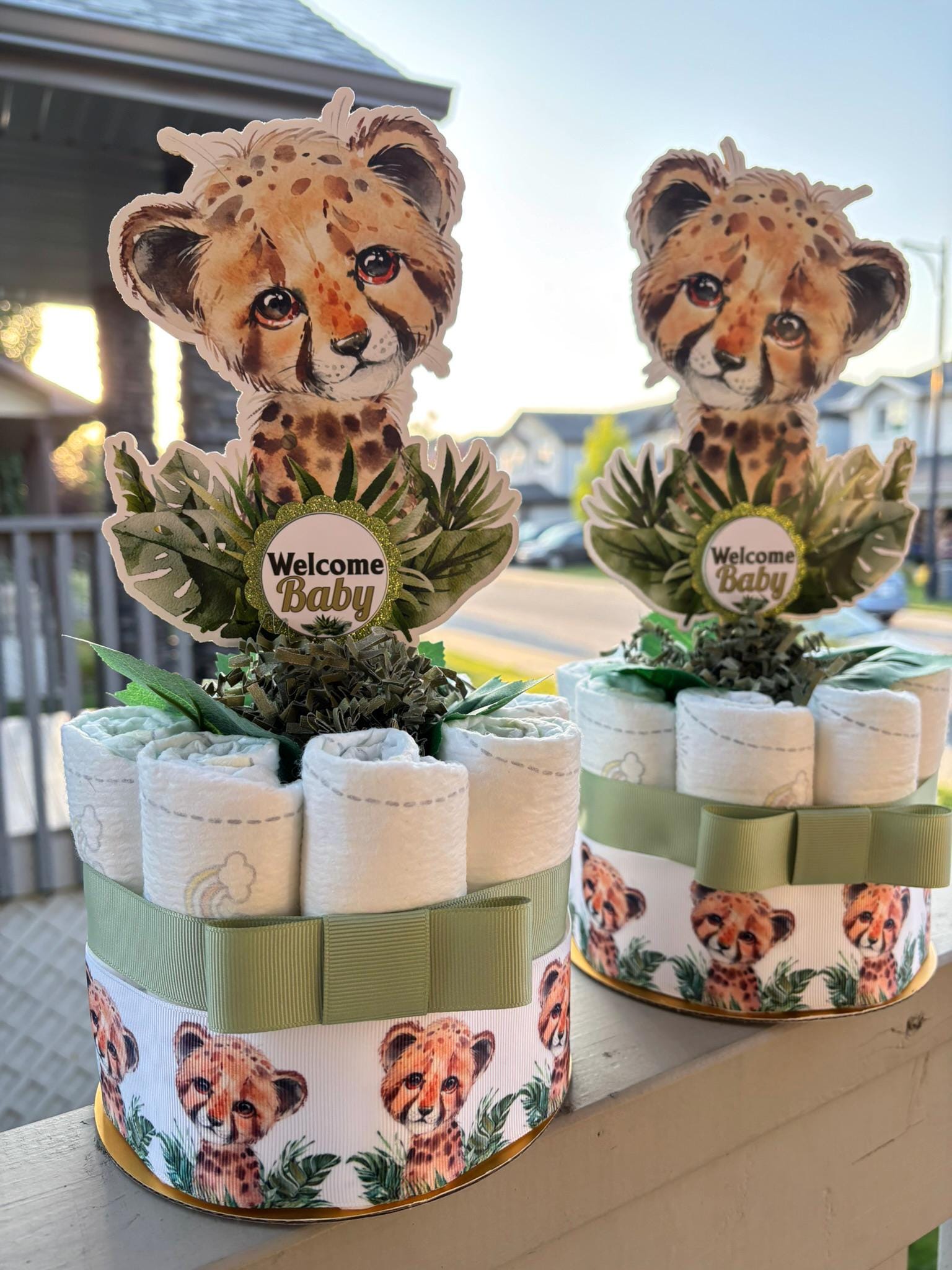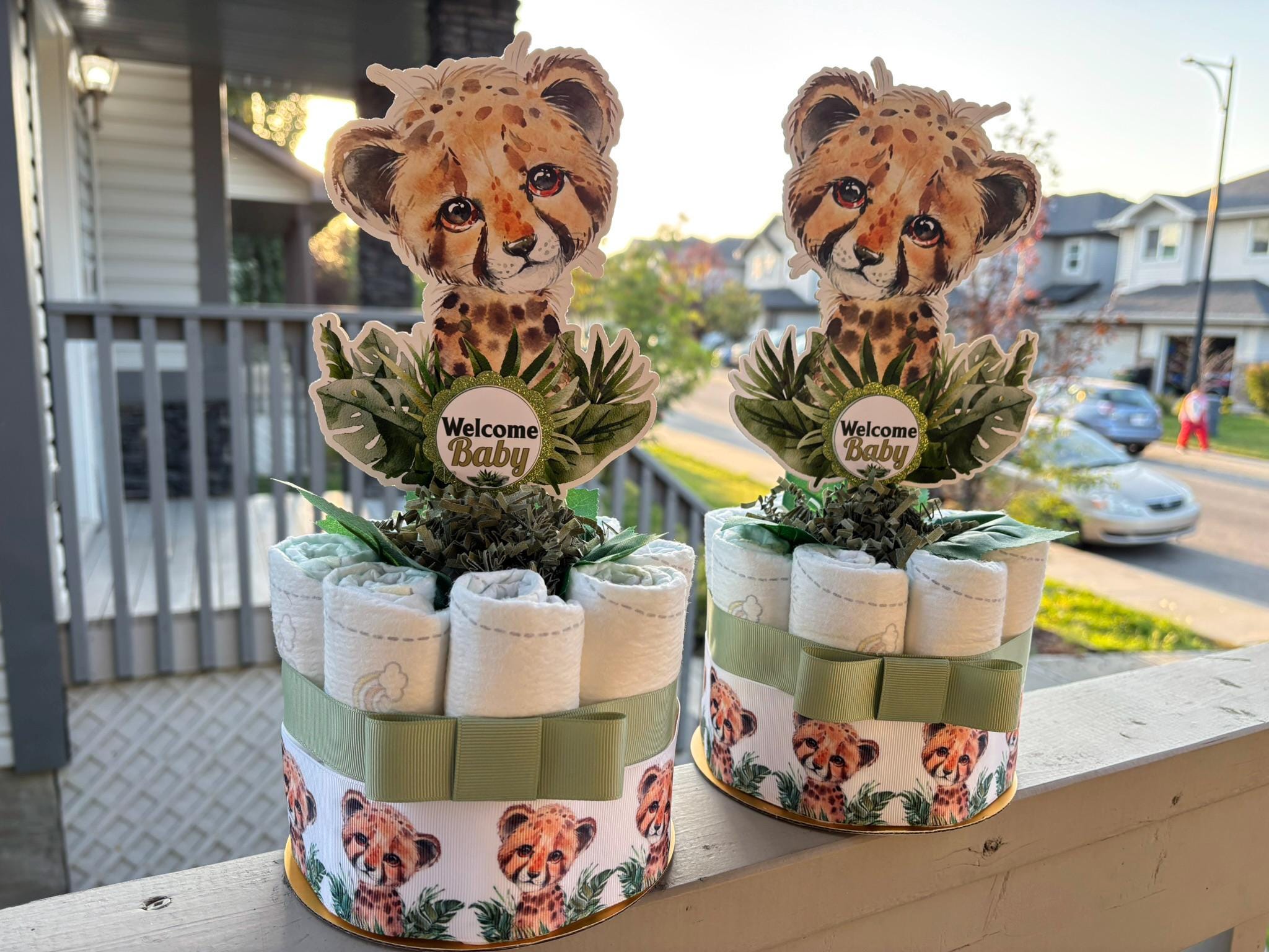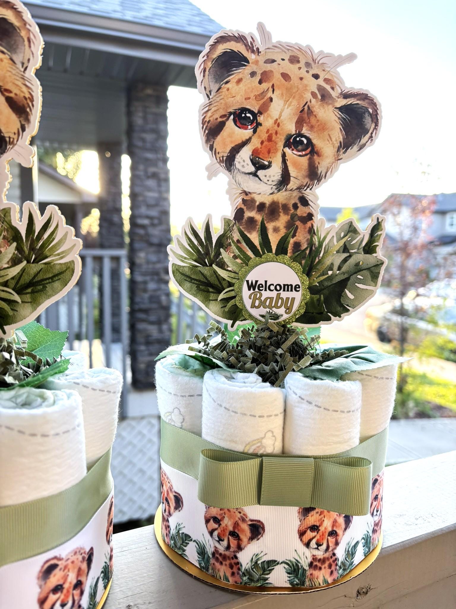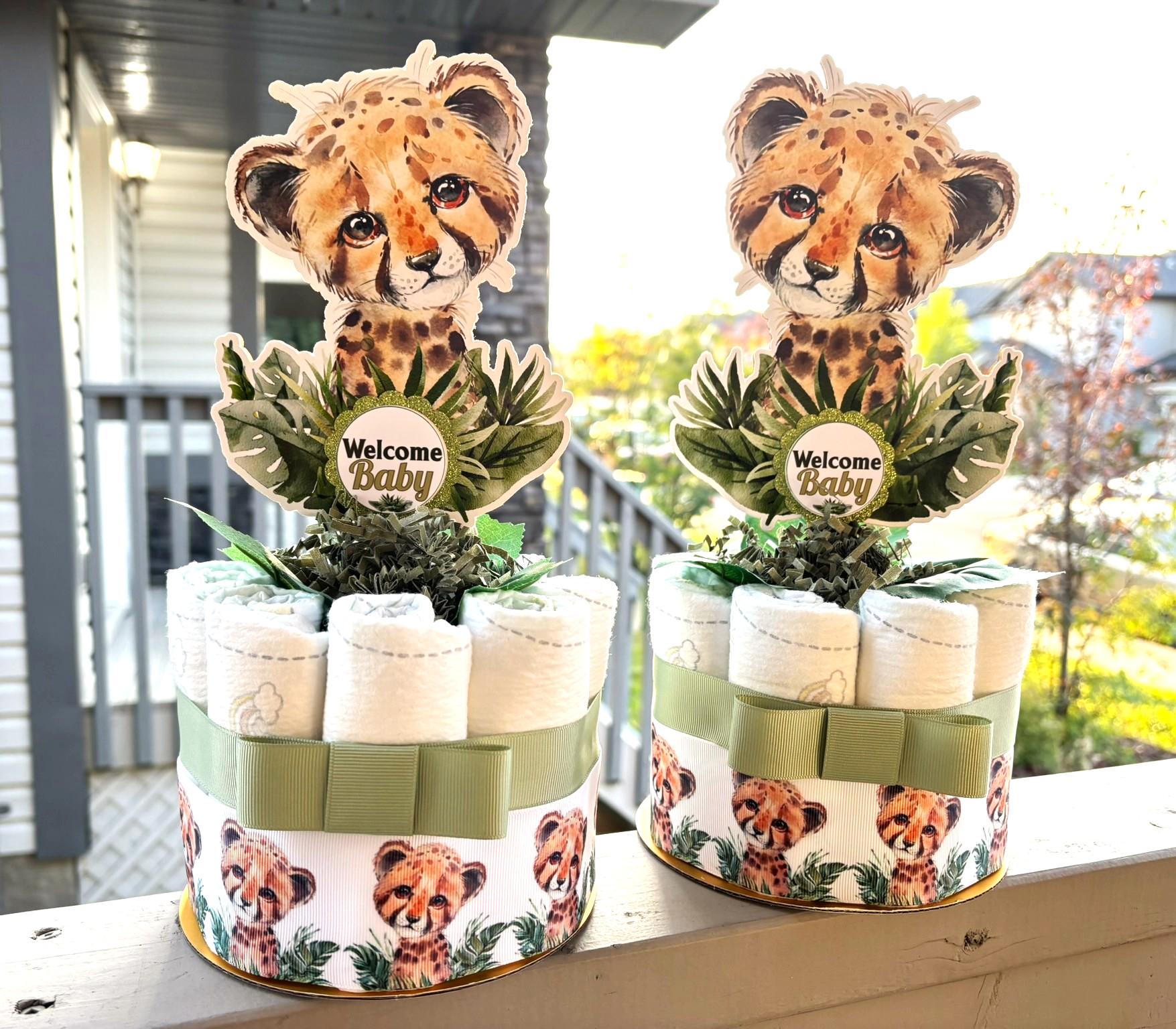 These Gorgeous Tiger Mini Diaper Cakes are the perfect centerpieces for your baby shower. We can match any shower theme.