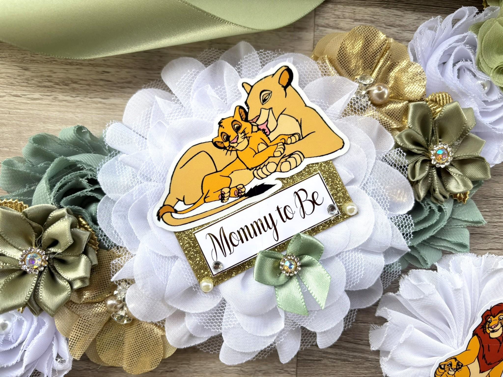 ☆ Maternity Sash: This has eleven flowers embellished with rhinestones and pearls. Additionally, this sash is decorated with lion animals. The ribbon sash is 80'' (2 meters) long.