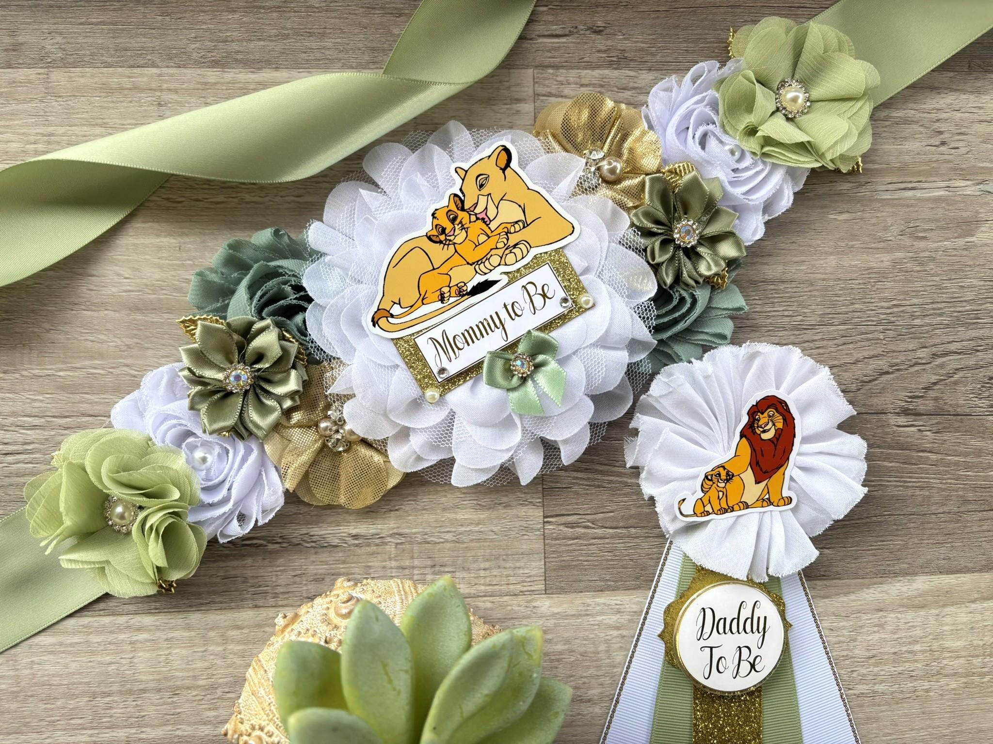 Boy Lion King Baby Shower, Maternity Sash, Mommy To Be Pin, Daddy To Be Pin, Custom Baby Shower Set
