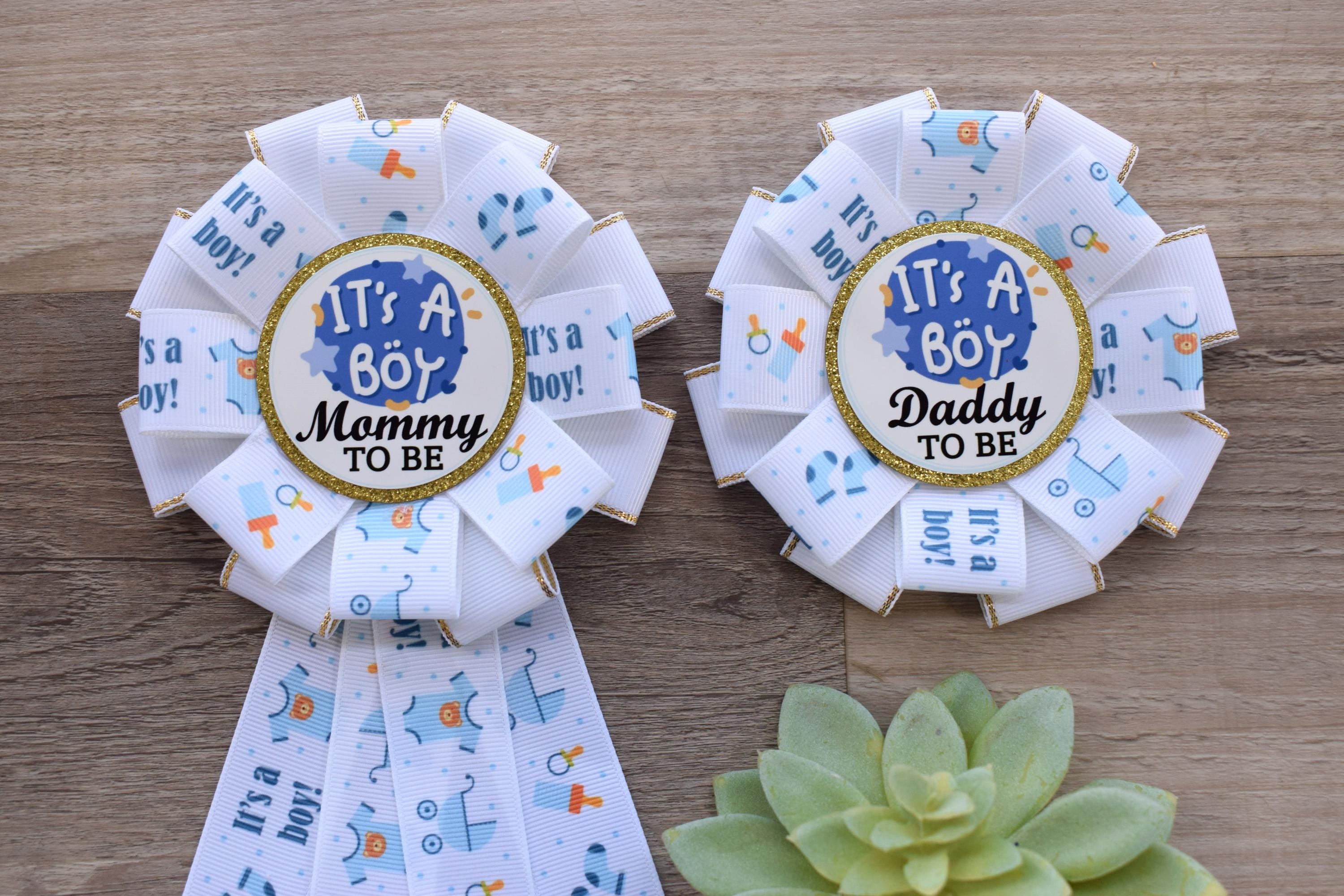 It's a Boy Pins Baby Shower, Baby Boy Mommy To Be Ribbon Pin, It's a Boy, Blue Daddy To Be Pin, Parent's To Be Pins