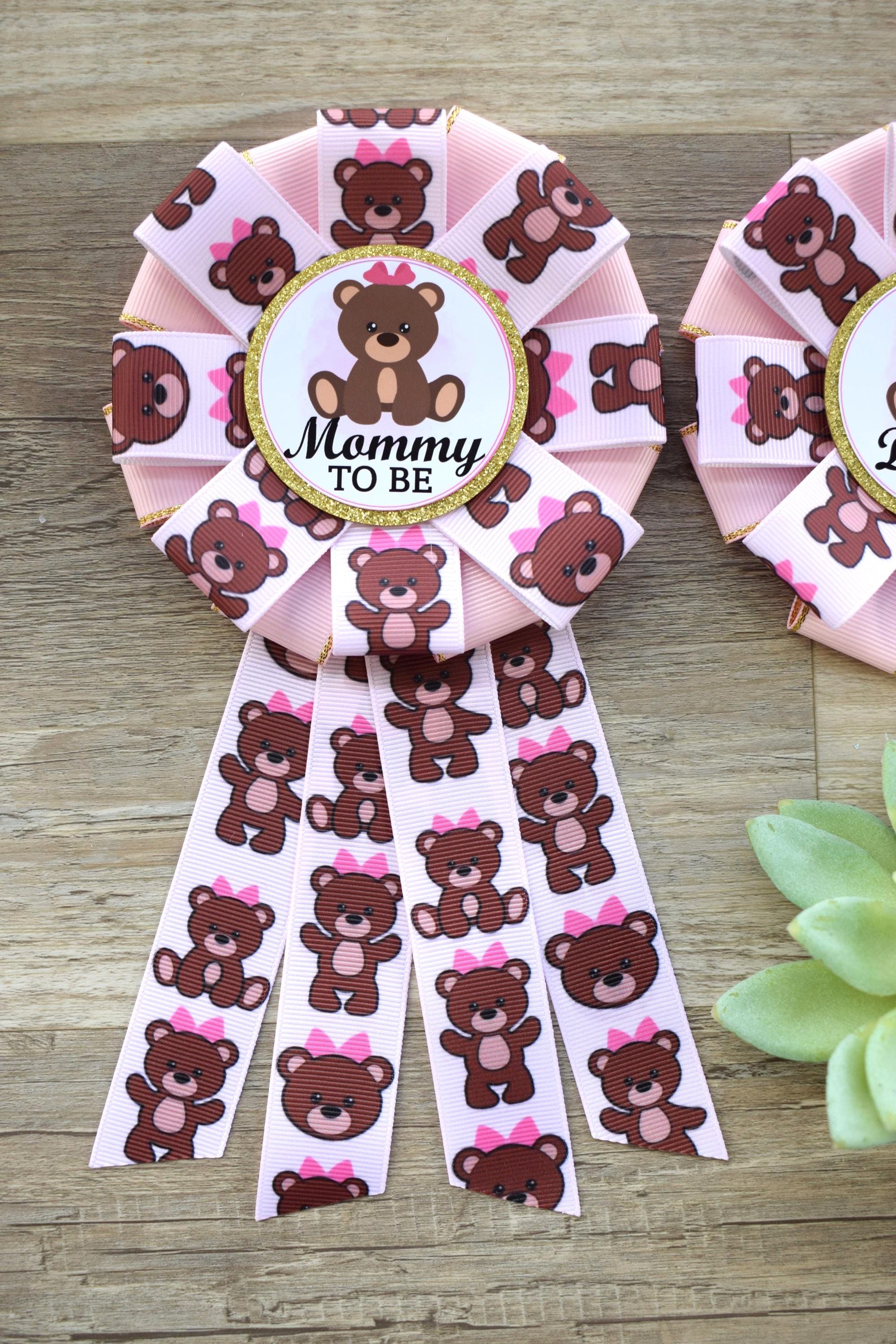 Pink Girl Teddy Bear Baby Shower, Girl Bear Mommy To Be Ribbon Pin, Teddy Bear Daddy To Be Pin, Parent's To Be Pins