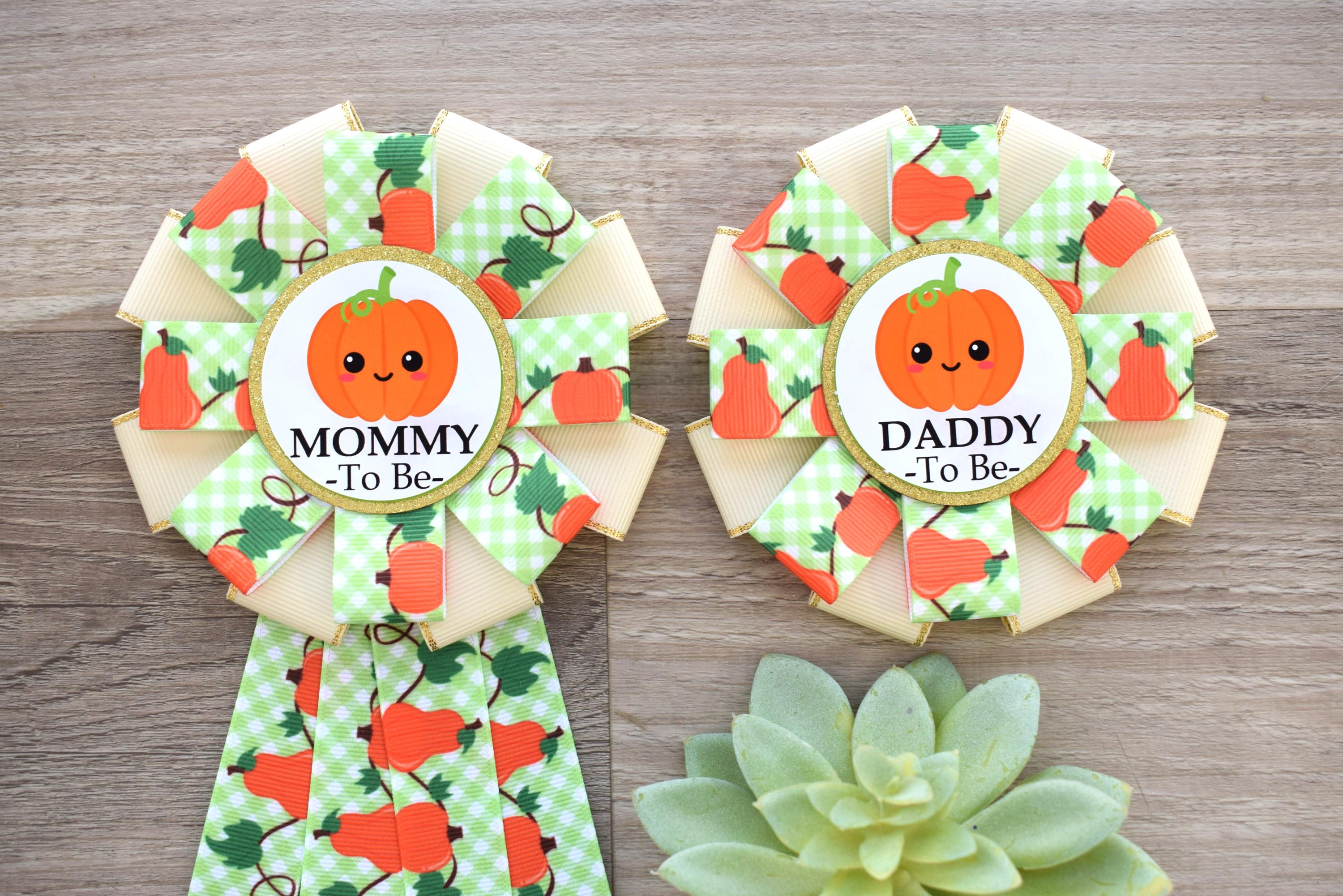 Neutral Pumpkin Baby Shower, Neutral Mommy To Be Ribbon Pin, Pumpkin Daddy To Be Pin, Baby Shower Gift, New Parent's Pins, Custom