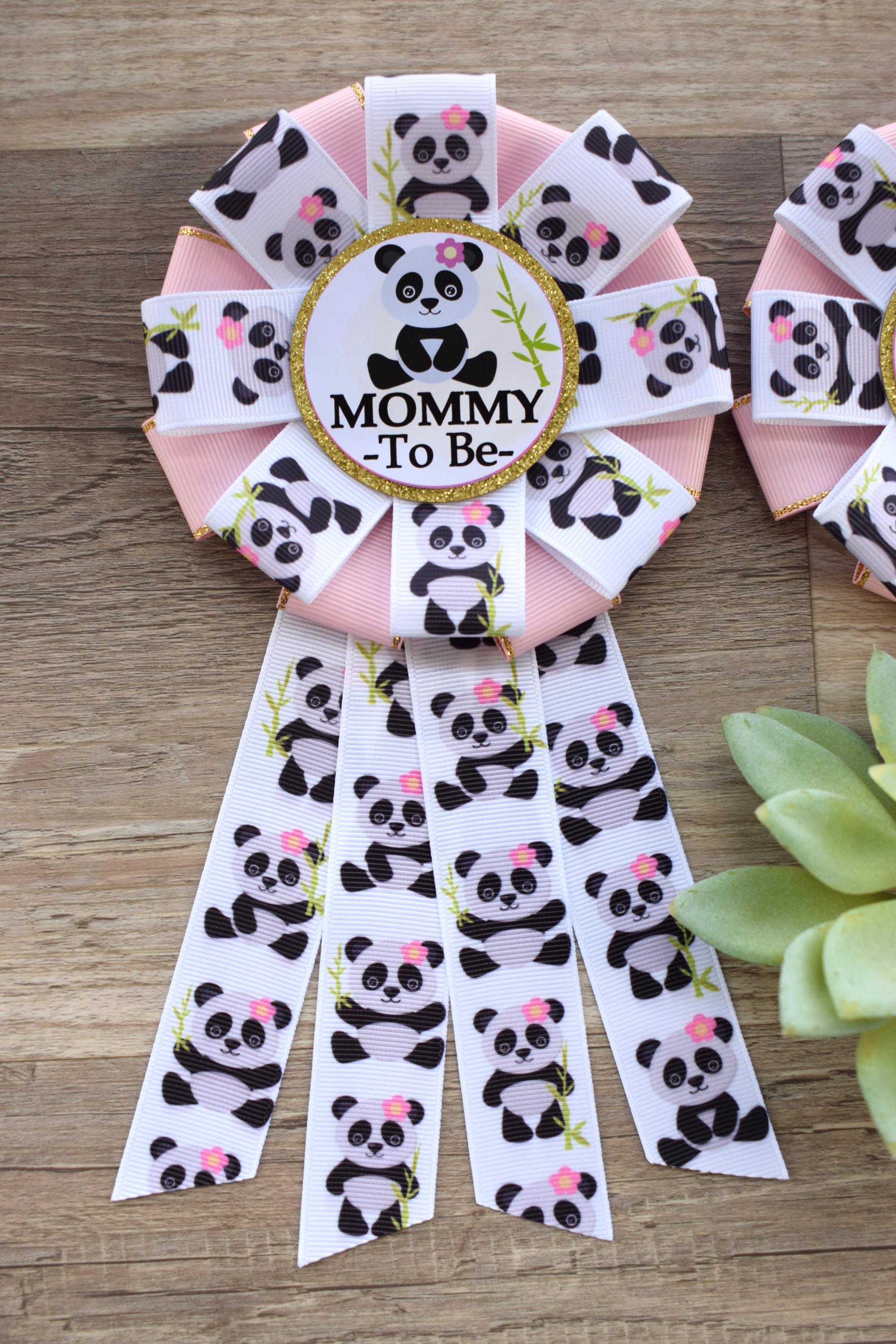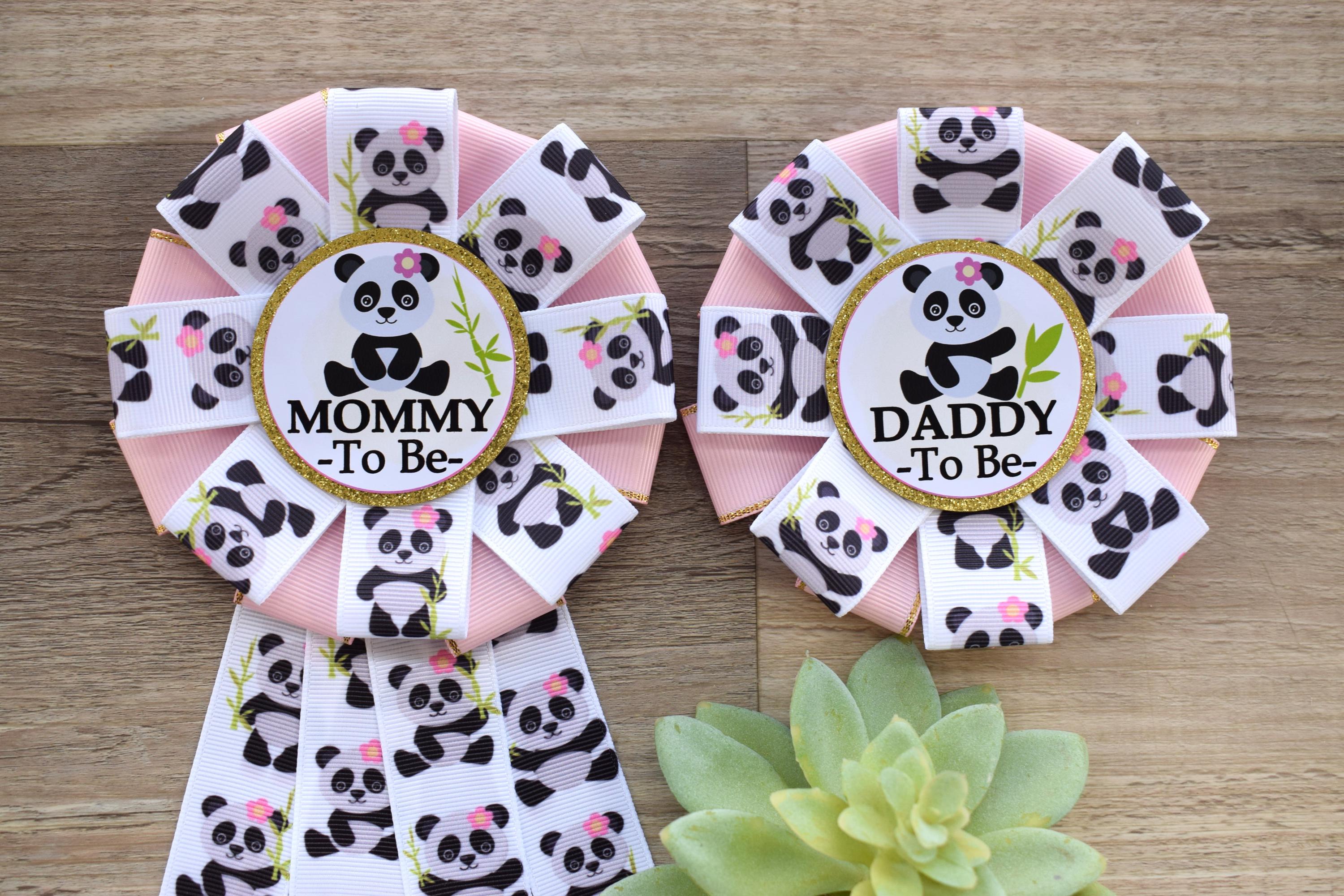 Pink Panda Baby Shower, Pink Panda Mommy To Be Ribbon Pin, Panda Daddy To Be Pin, Baby Shower Gift, New Parent's Pins, Custom
