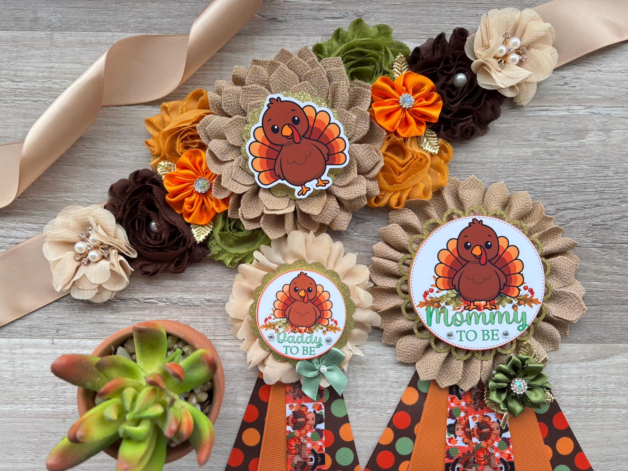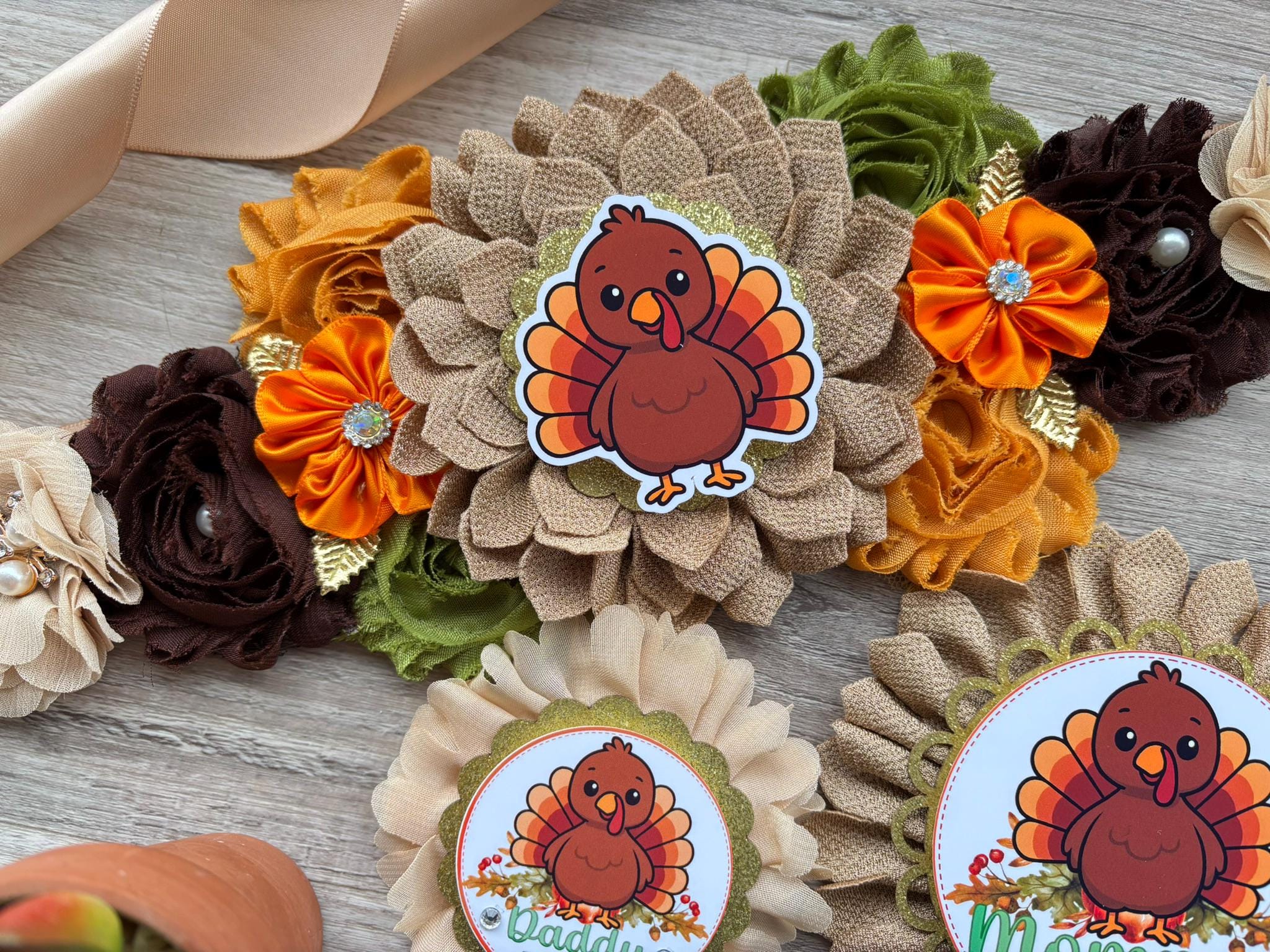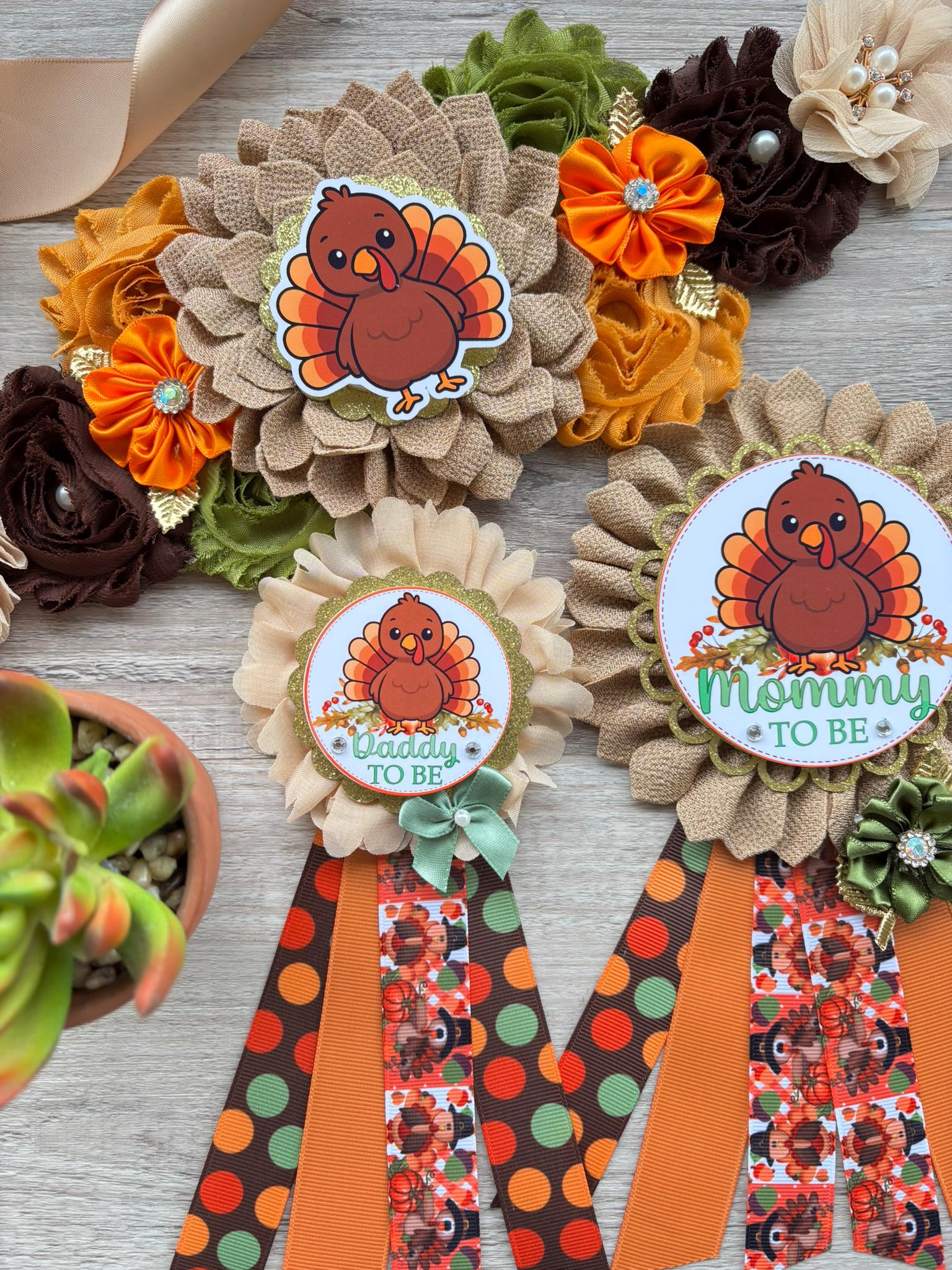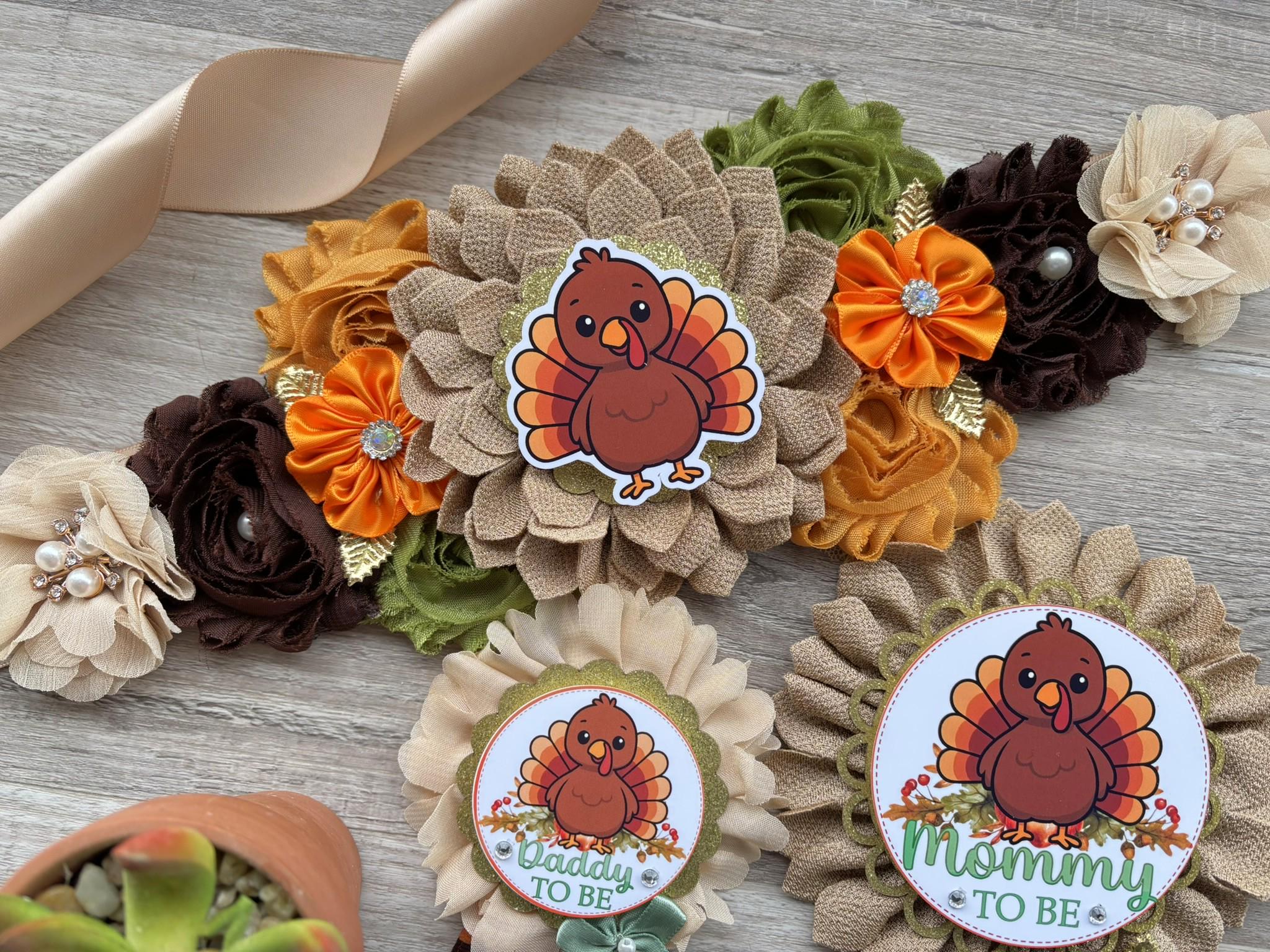 Thanksgiving Baby Shower Set, Turkey Maternity Sash, Mommy To Be Ribbon, Daddy To Be Pin, Baby Shower Gift, Custom Order Welcome