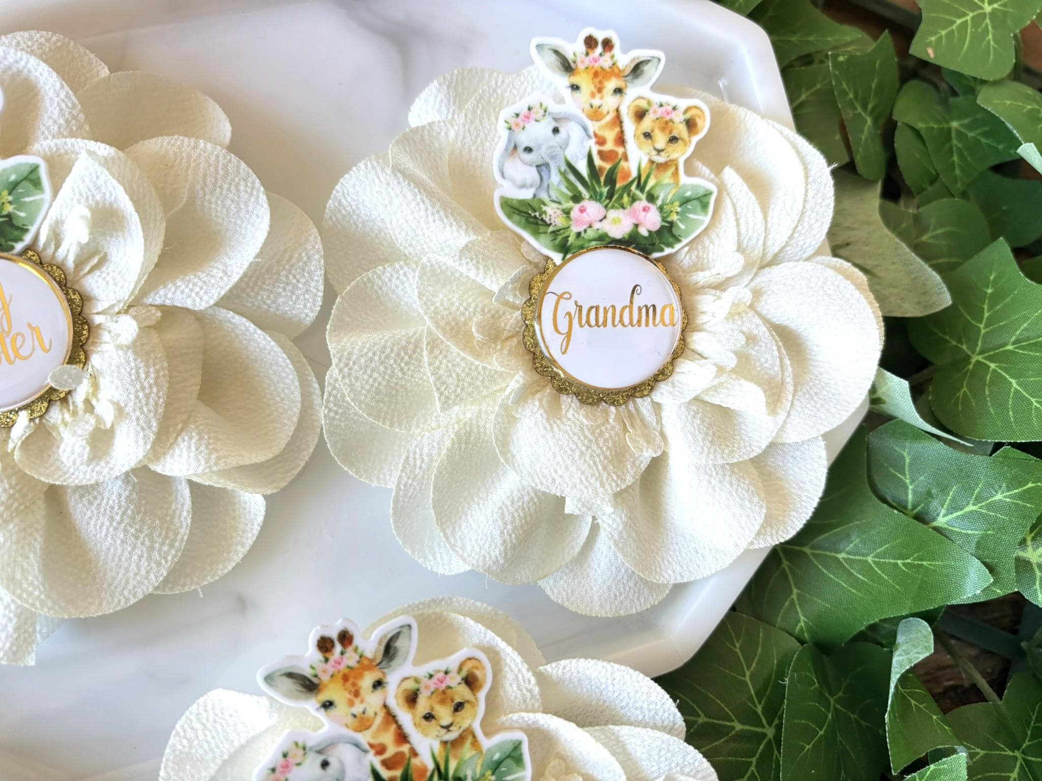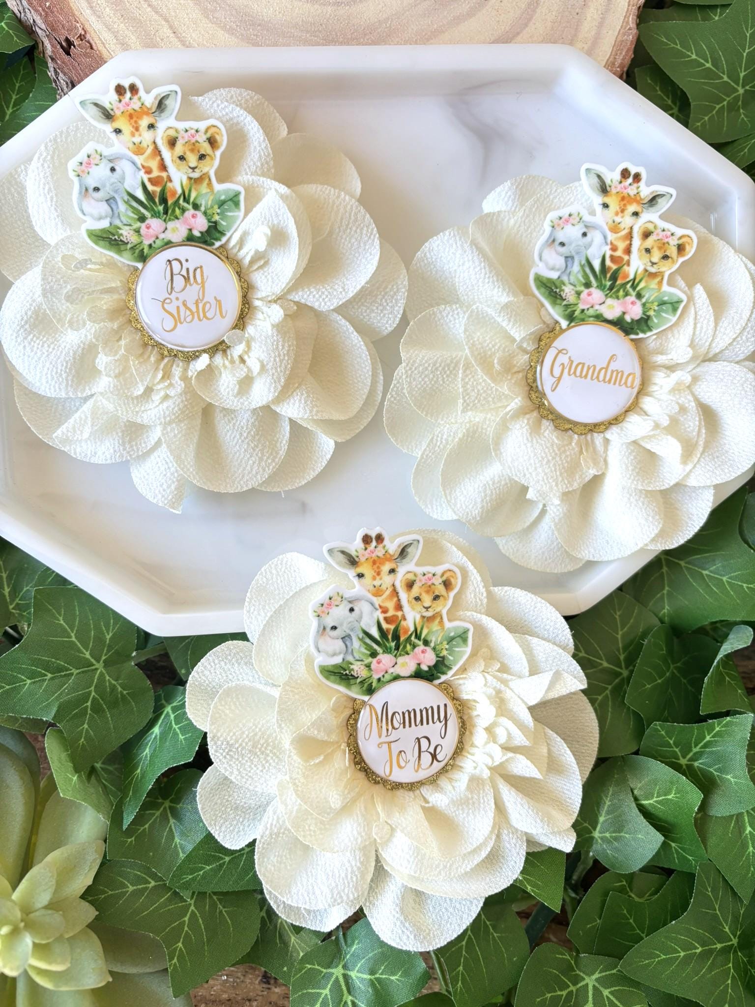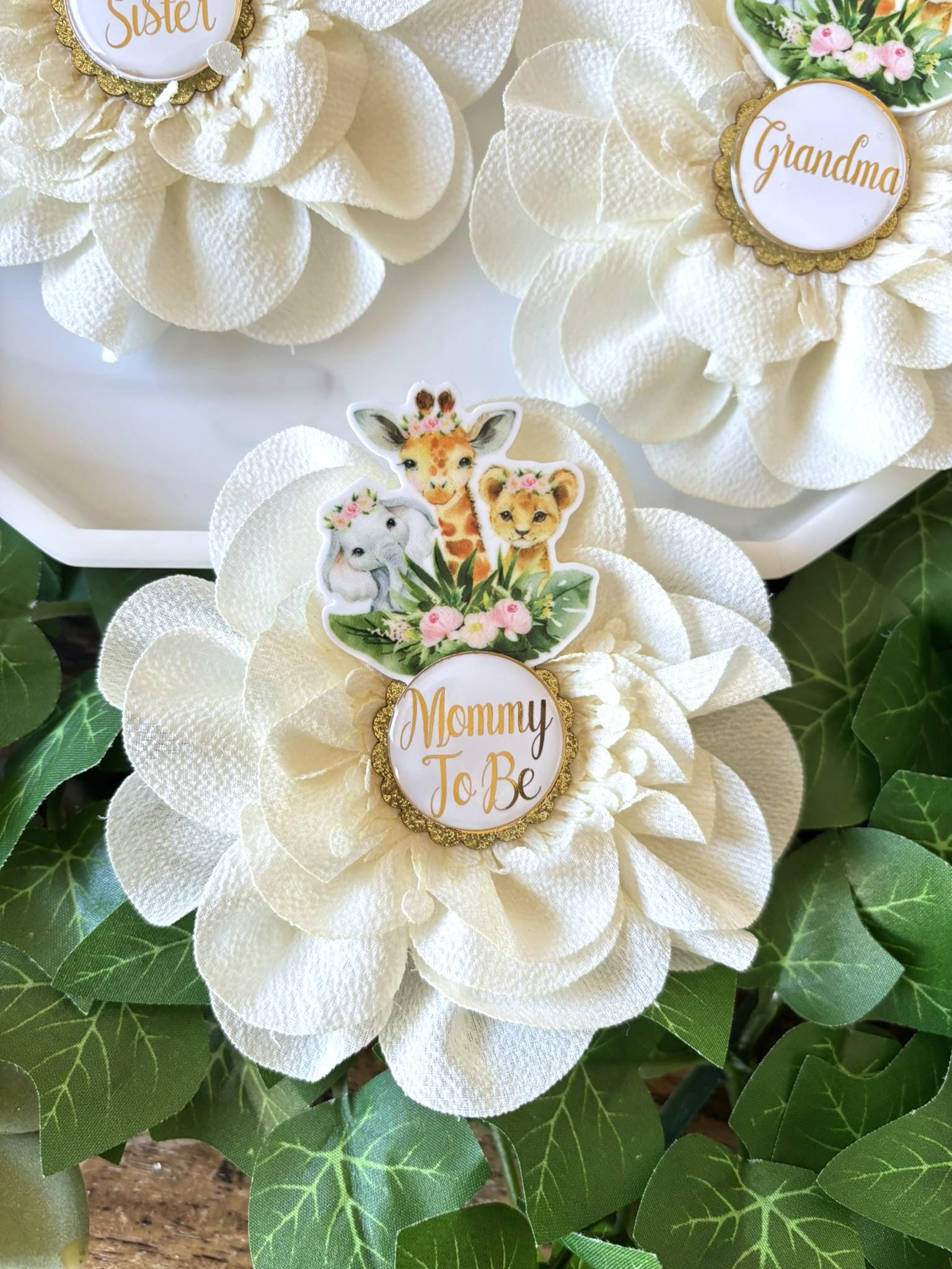 Girl Safari Baby Shower Pin, Pink Mommy To Be Pin, Daddy To Be Pin, Big Sister, Big Brother, Grandma, Grandpa, Custom Wording Available