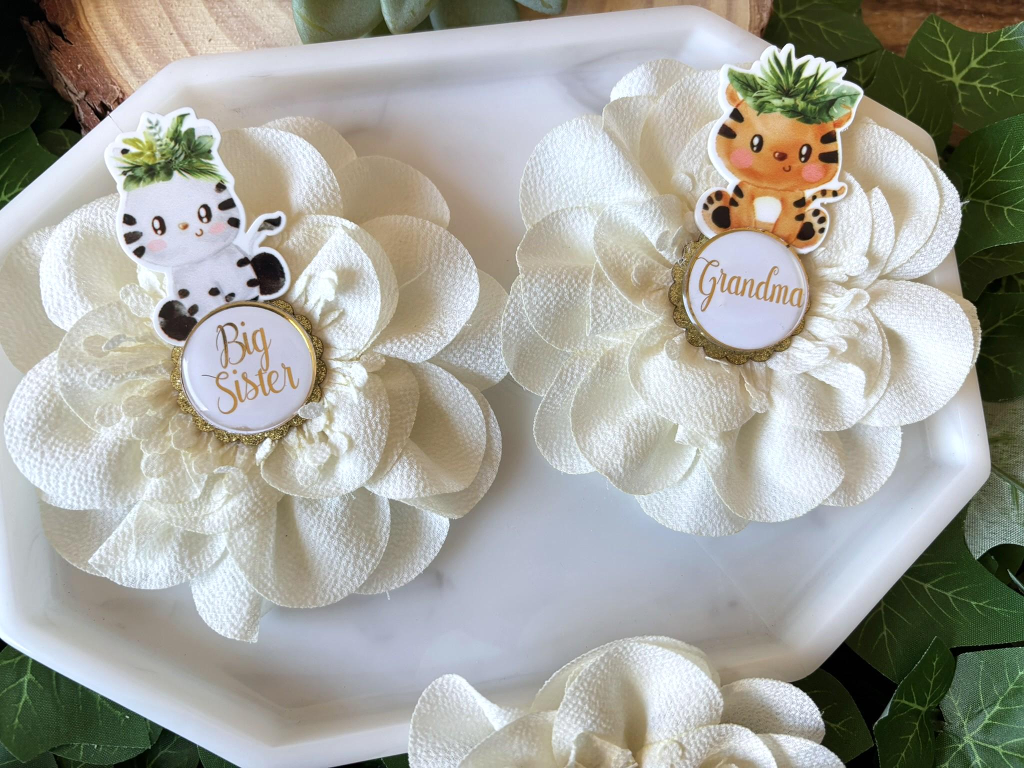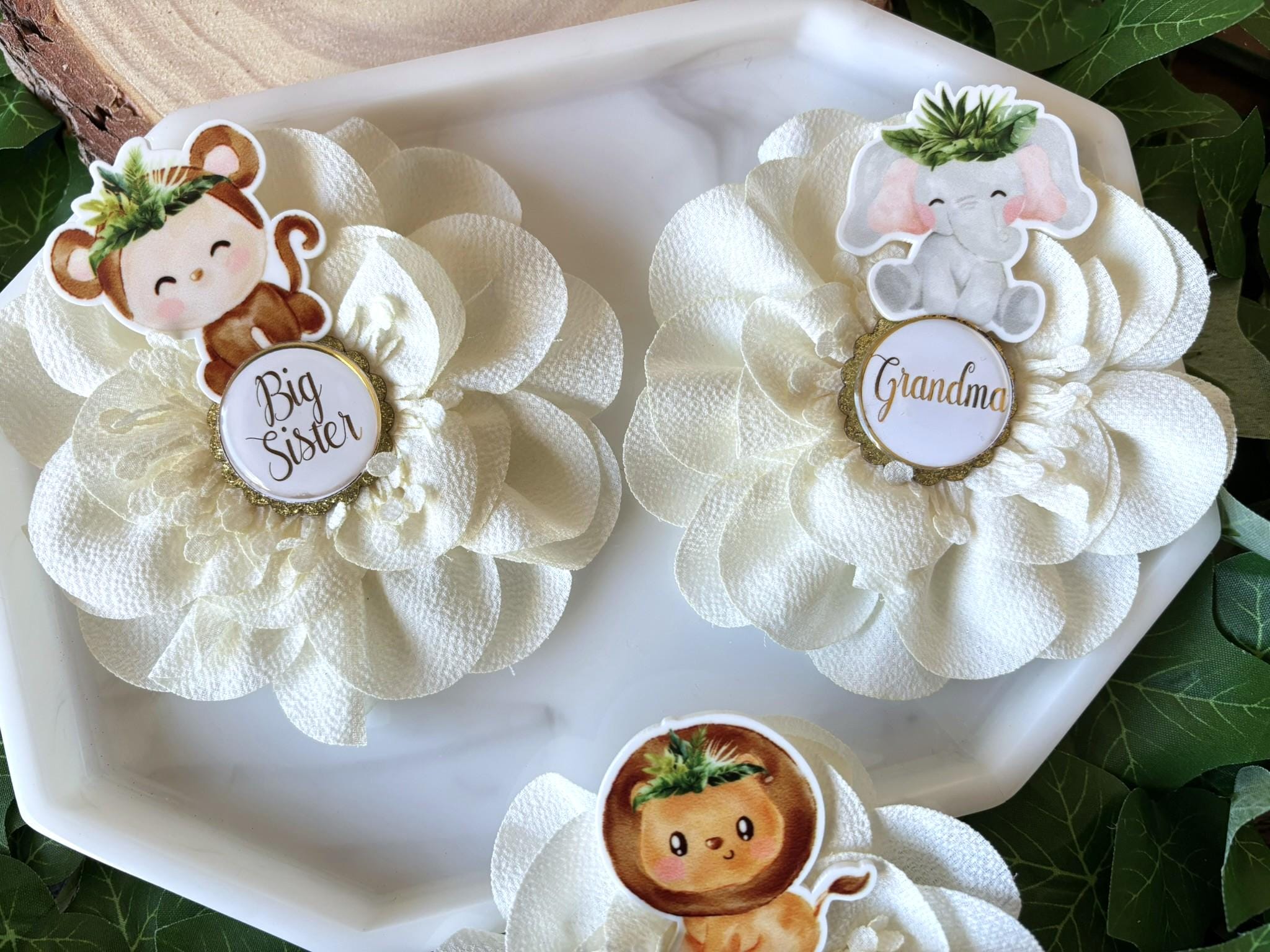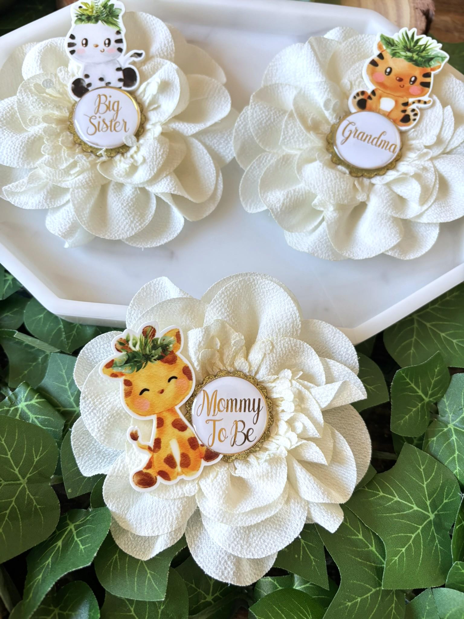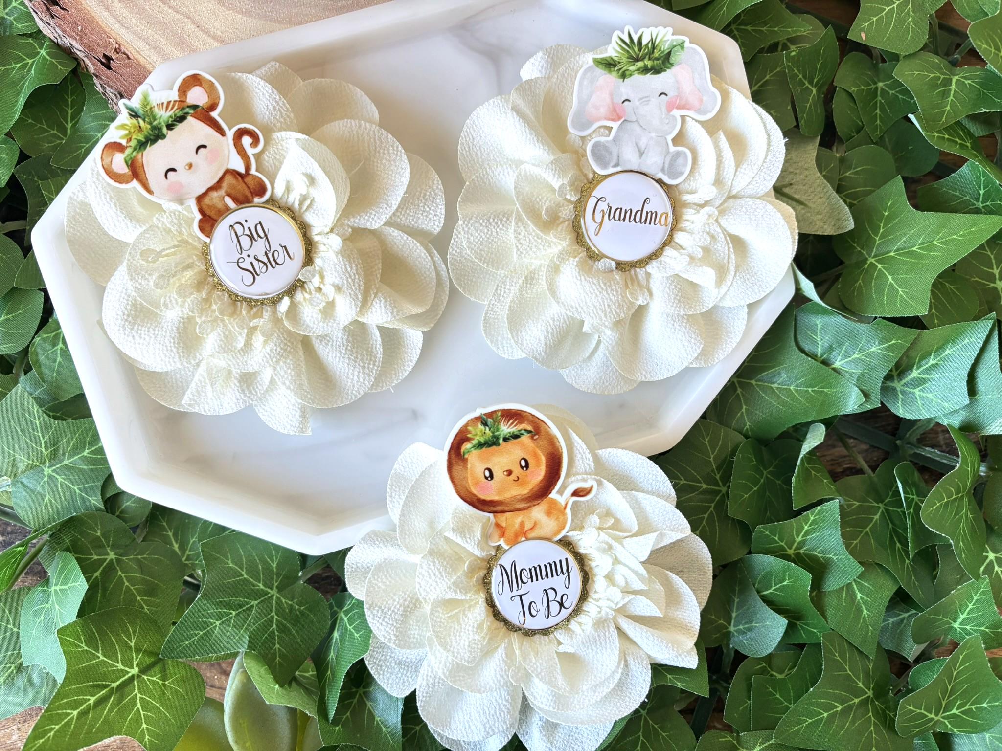 Baby Safari Baby Shower Pin, Mommy To Be Pin, Daddy To Be Pin, Big Sister, Big Brother, Grandma, Grandpa, Custom Wording Available