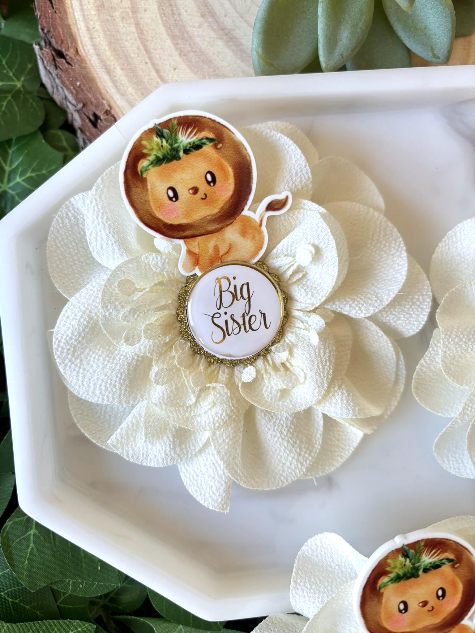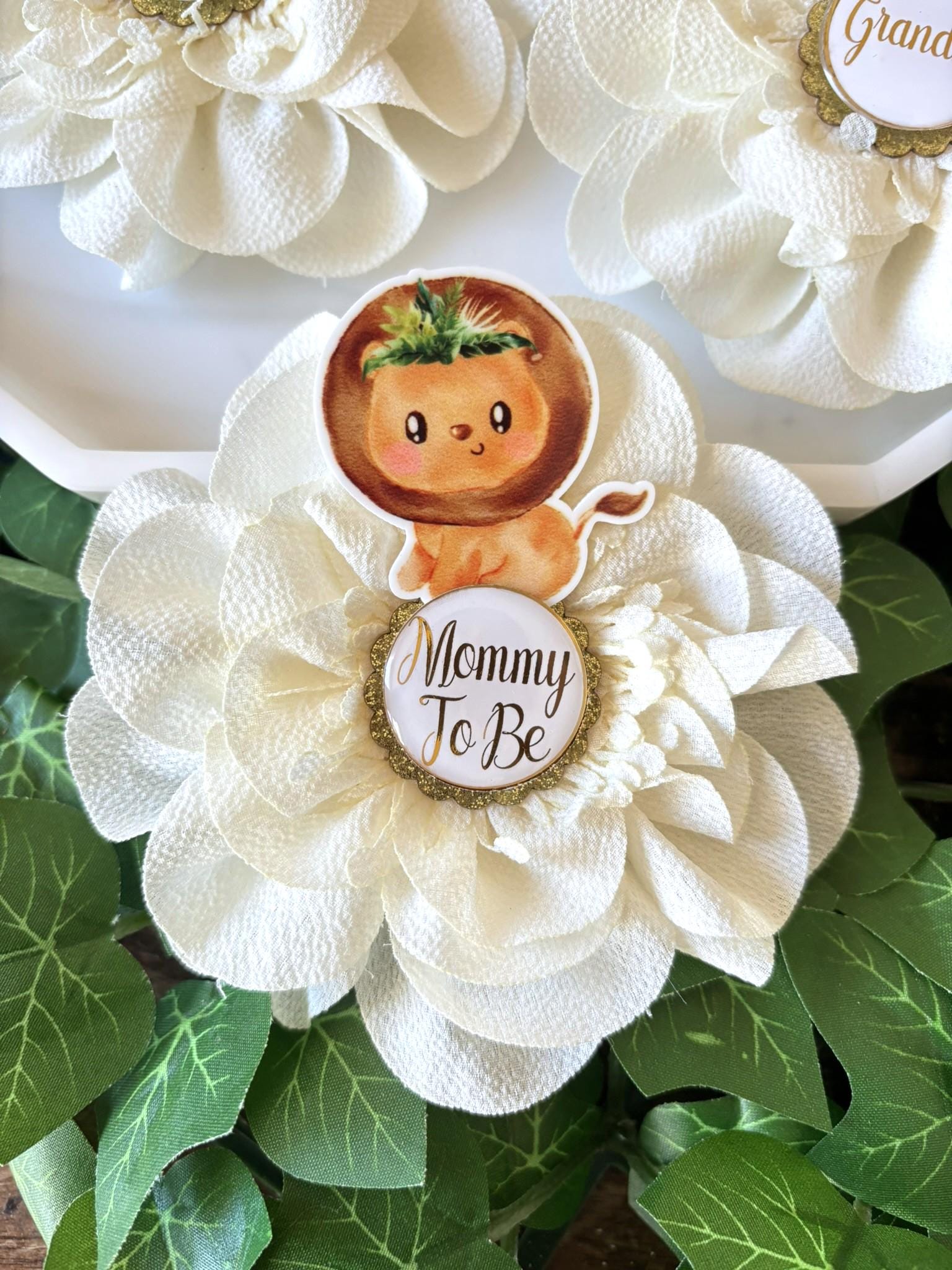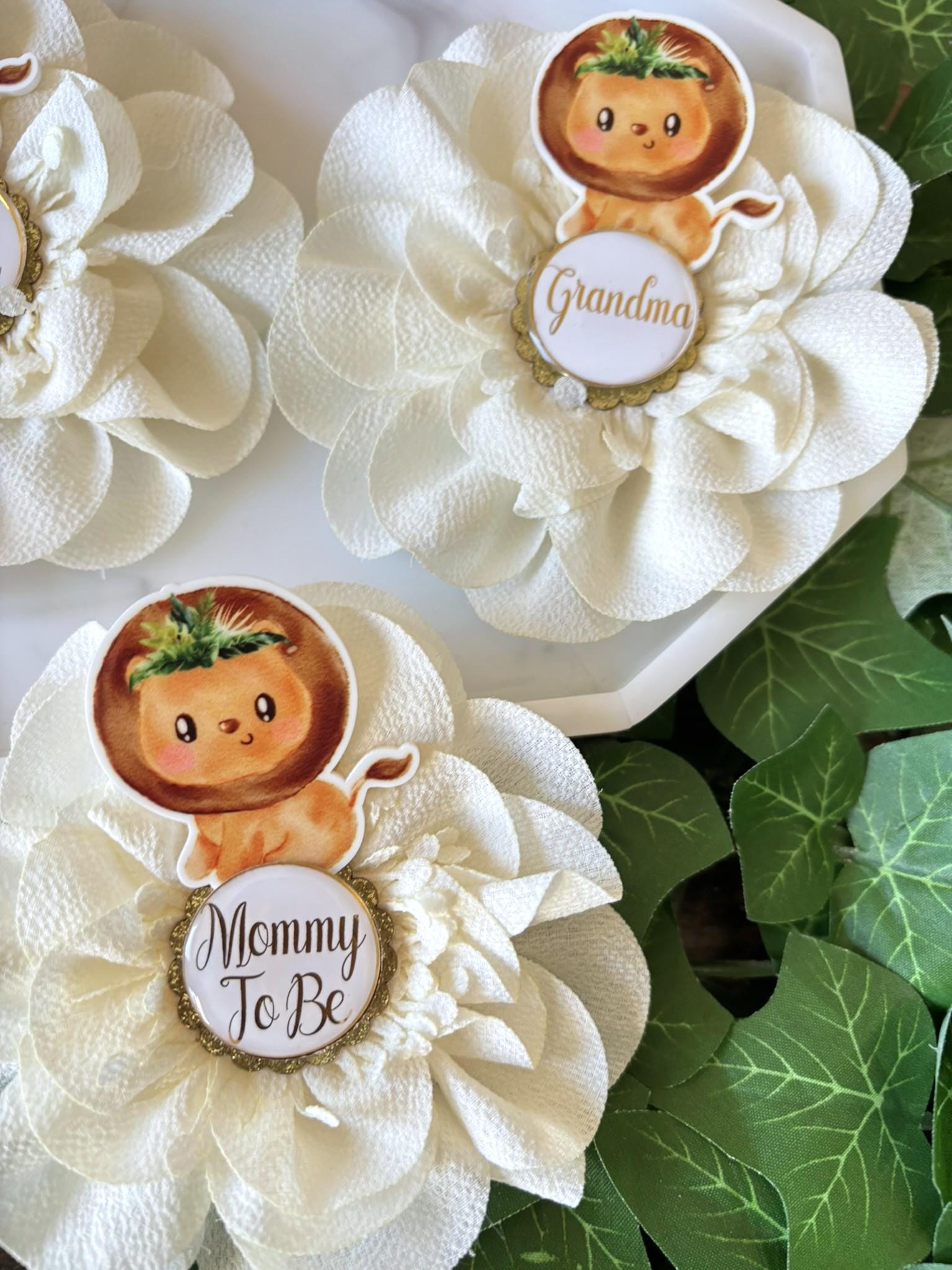 Baby Lion Safari Baby Shower Pin, Mommy To Be Pin, Daddy To Be Pin, Big Sister, Big Brother, Grandma, Grandpa, Custom Wording Available