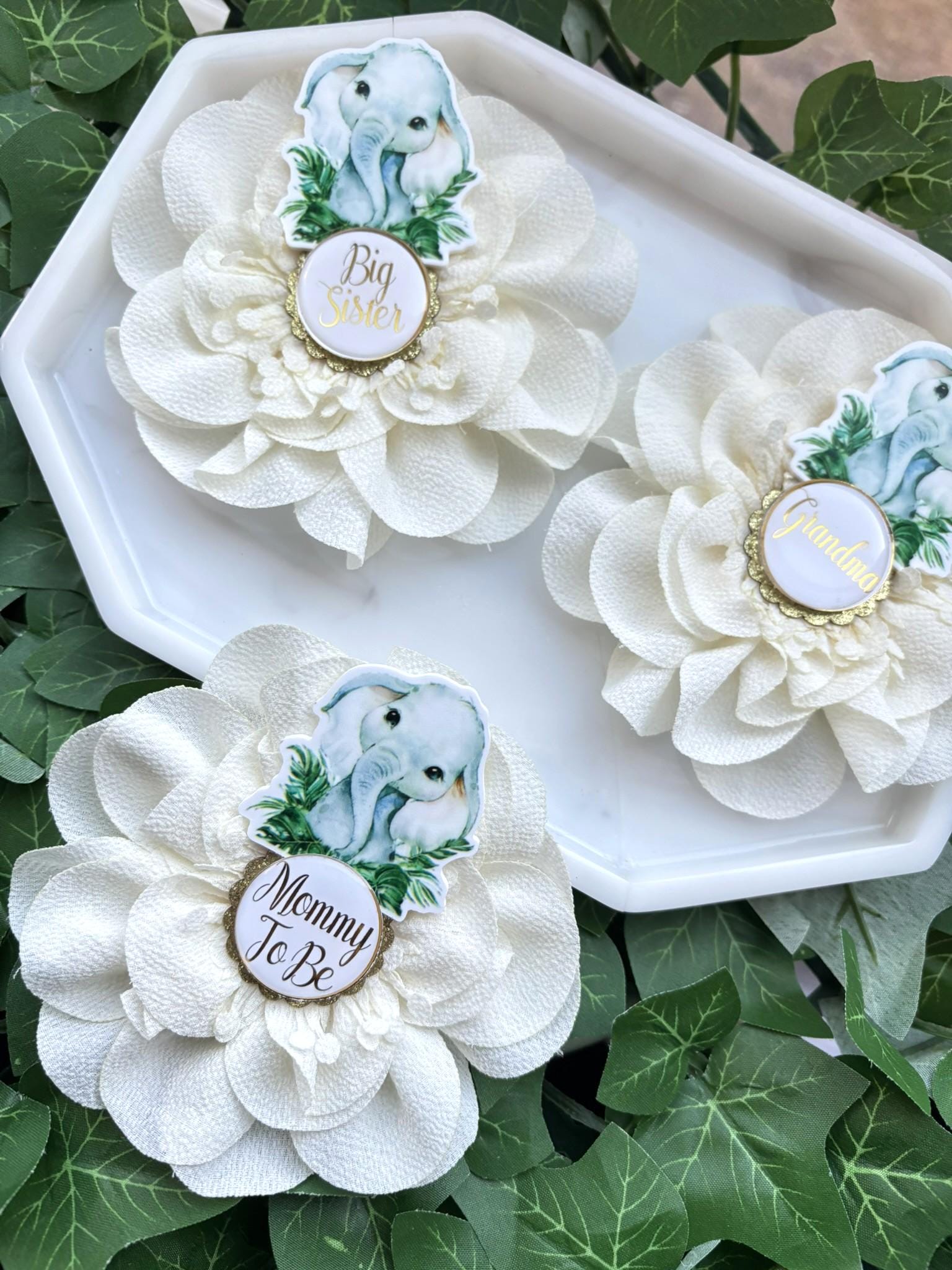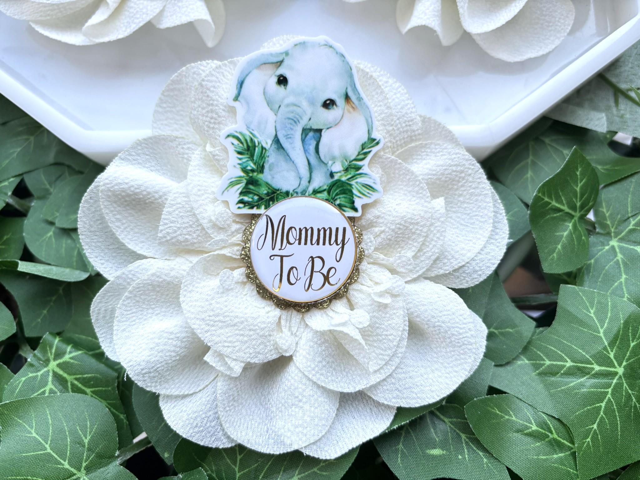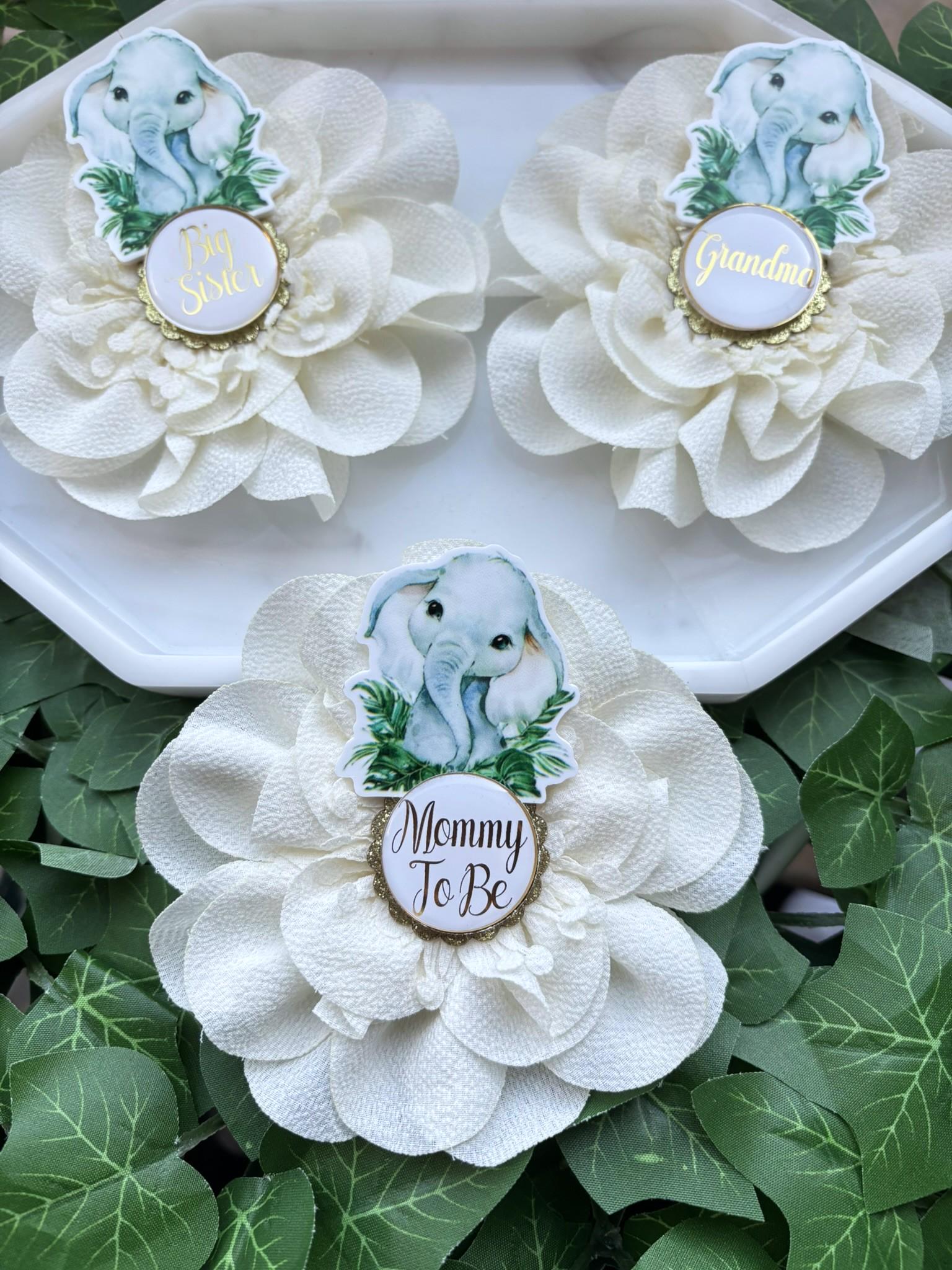 Elephant Animal Safari Baby Shower Pin, Mommy To Be Pin, Daddy To Be, Big Sister, Big Brother, Grandma, Grandpa, Custom Wording Available