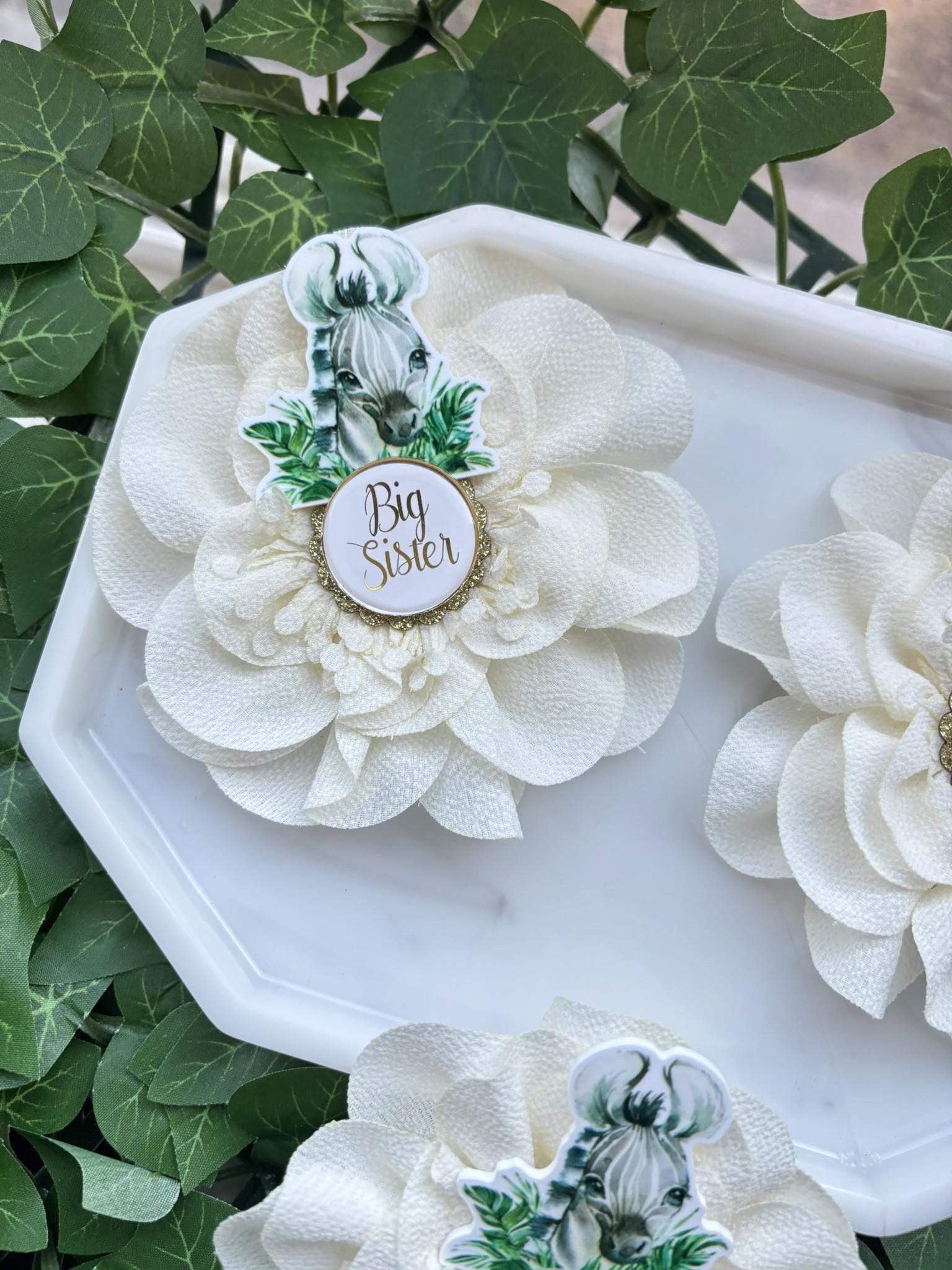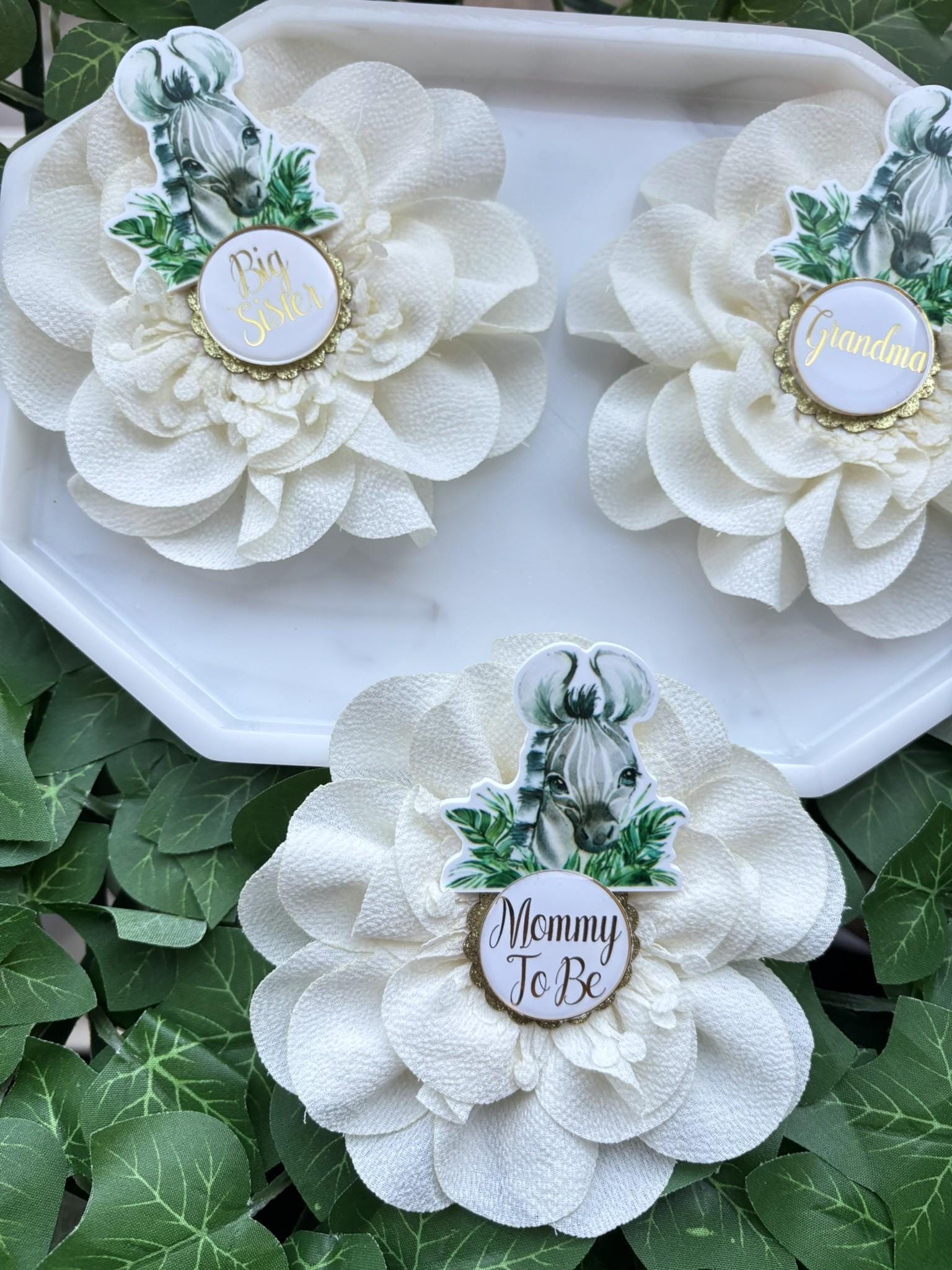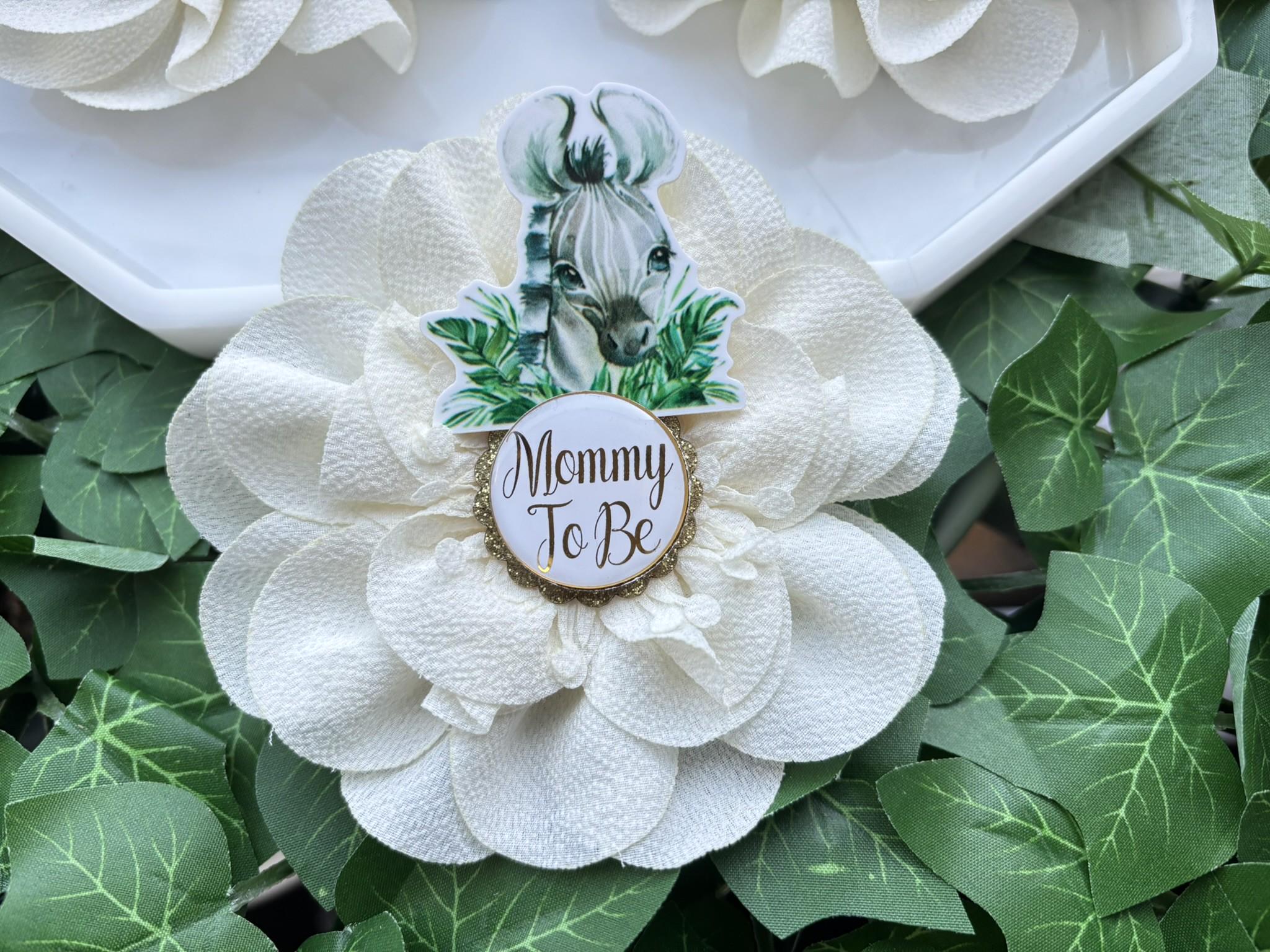 Zebra Safari Baby Shower Pin, Mommy To Be Pin, Daddy To Be Pin, Big Sister, Big Brother, Grandma, Grandpa, Custom Wording Available