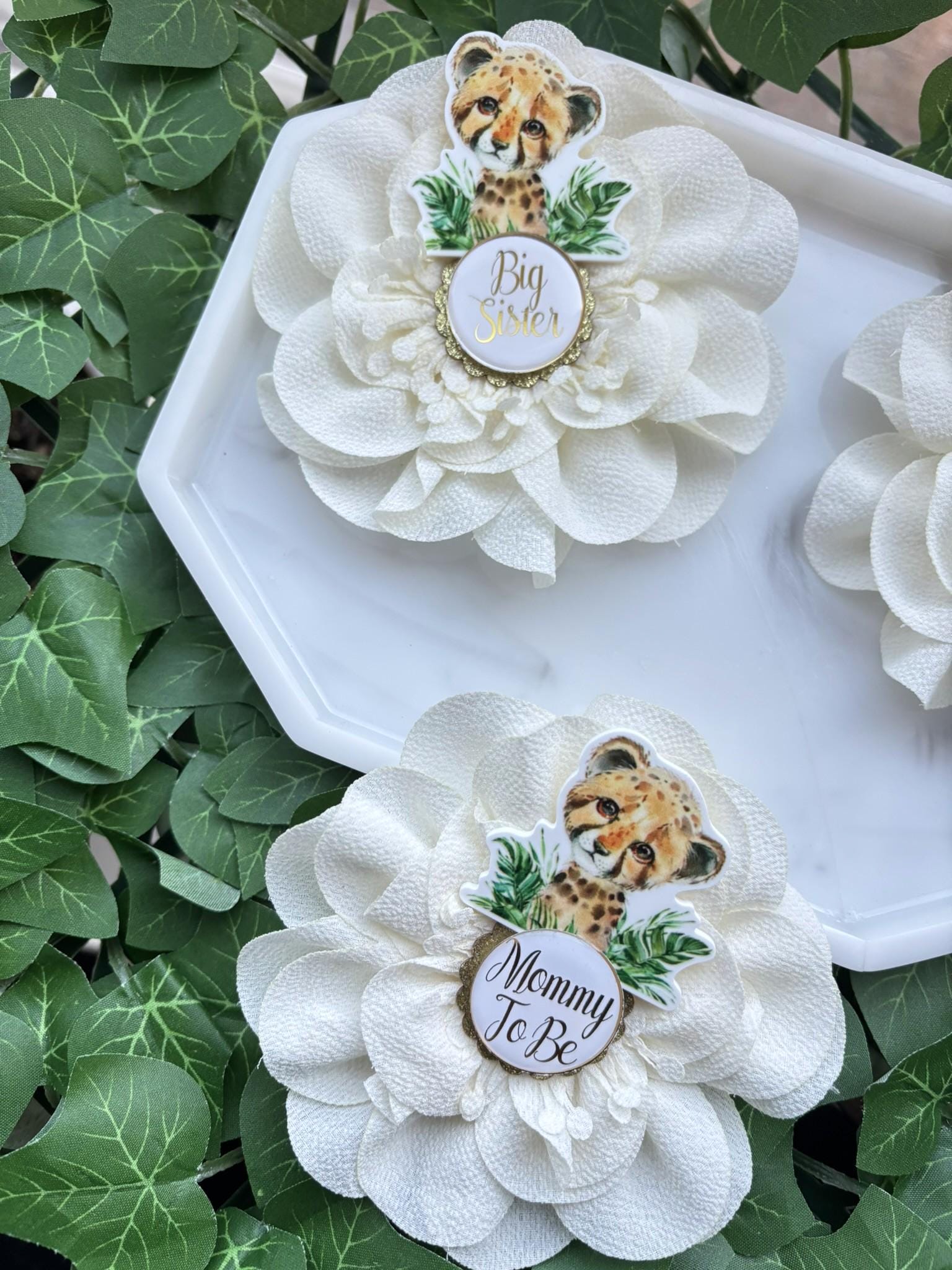 Tiger Safari Baby Shower Pin, Mommy To Be Pin, Daddy To Be Pin, Big Sister, Big Brother, Grandma, Grandpa, Custom Wording Available