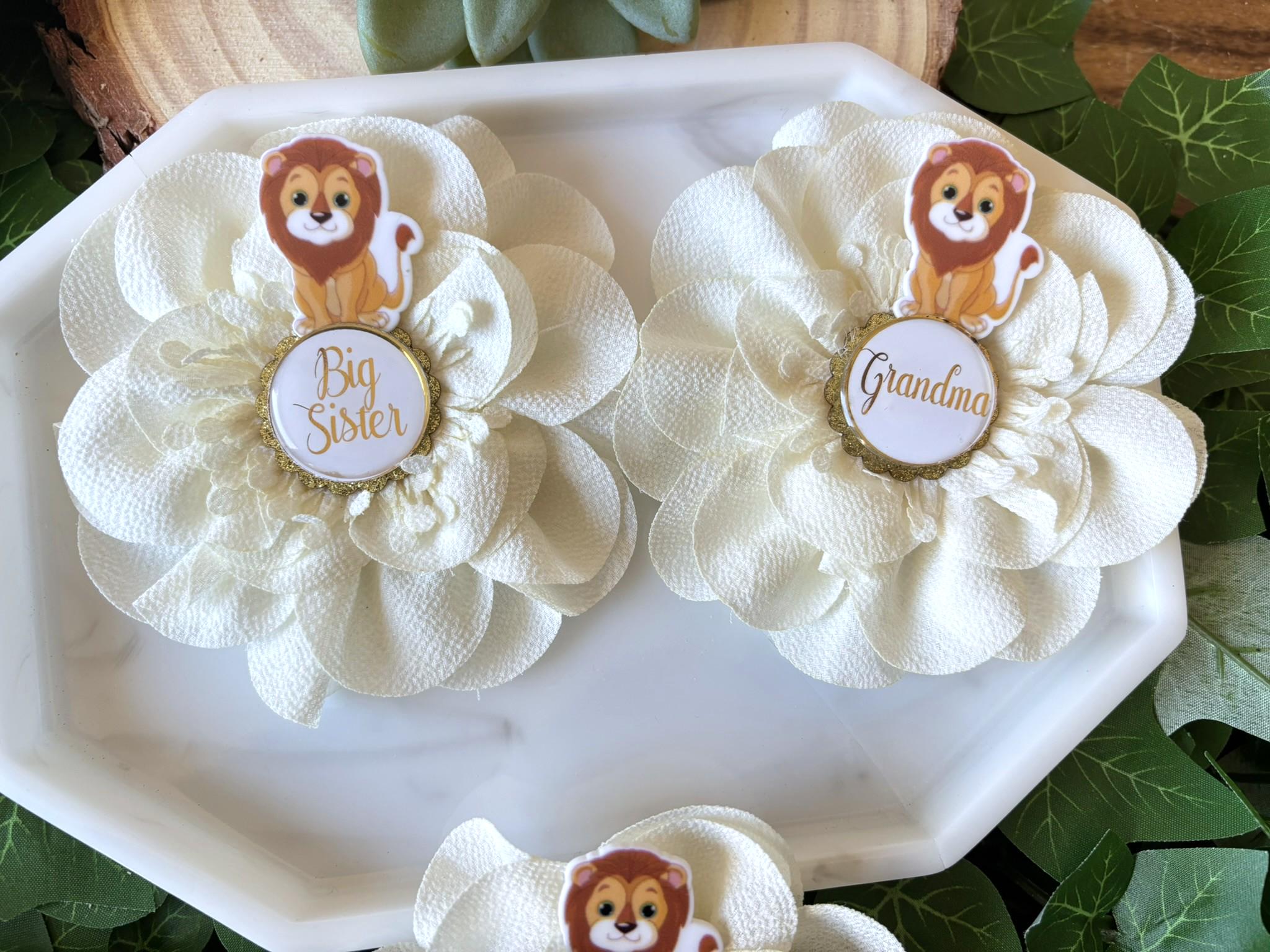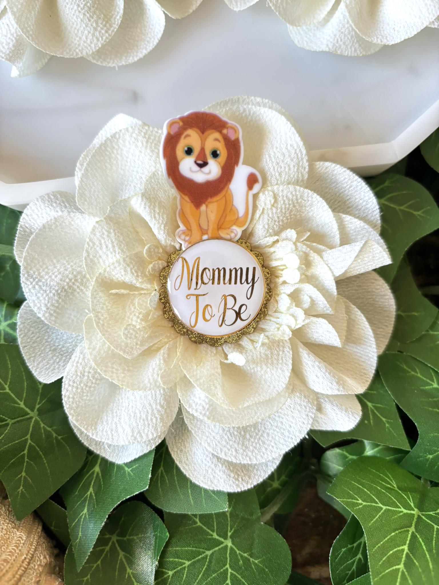 Cute Lion Safari Baby Shower Pin, Mommy To Be Pin, Daddy To Be Pin, Big Sister, Big Brother, Grandma, Grandpa, Custom Wording Available