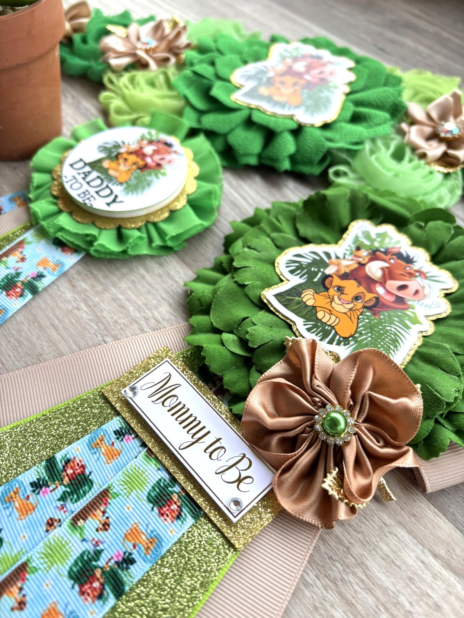 Lion King Baby Shower, Lion Maternity Sash, Lion Boy Mommy To Be Pin, Boy Daddy To Be Pin, Custom Baby Shower Set