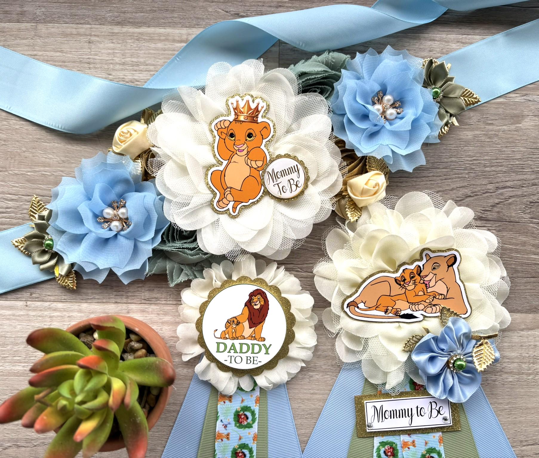 Baby Lion Baby Shower, Lion Maternity Sash, Lion Boy Mommy To Be Pin, Boy Daddy To Be Pin, Custom Baby Shower Set