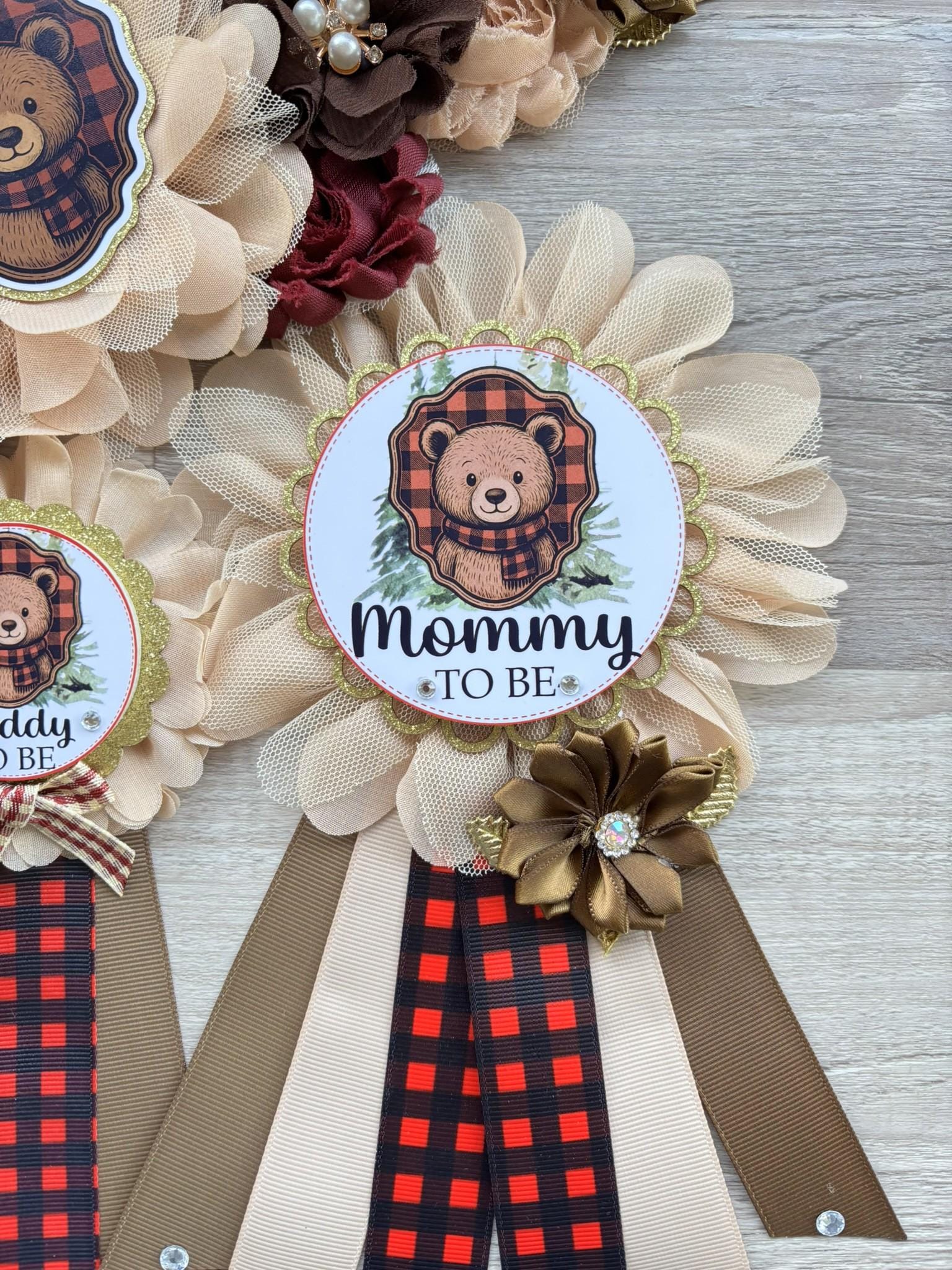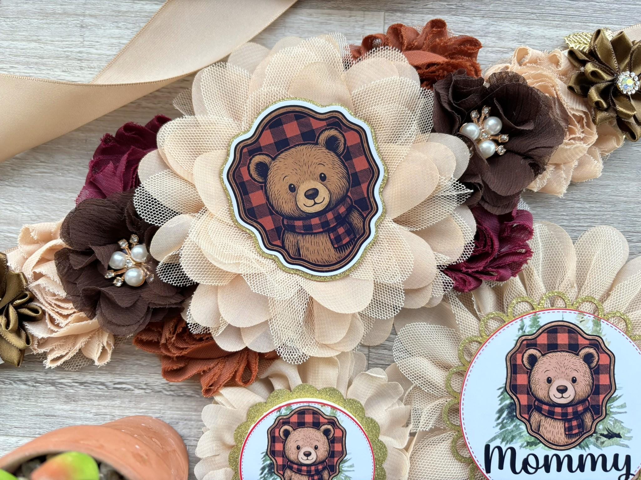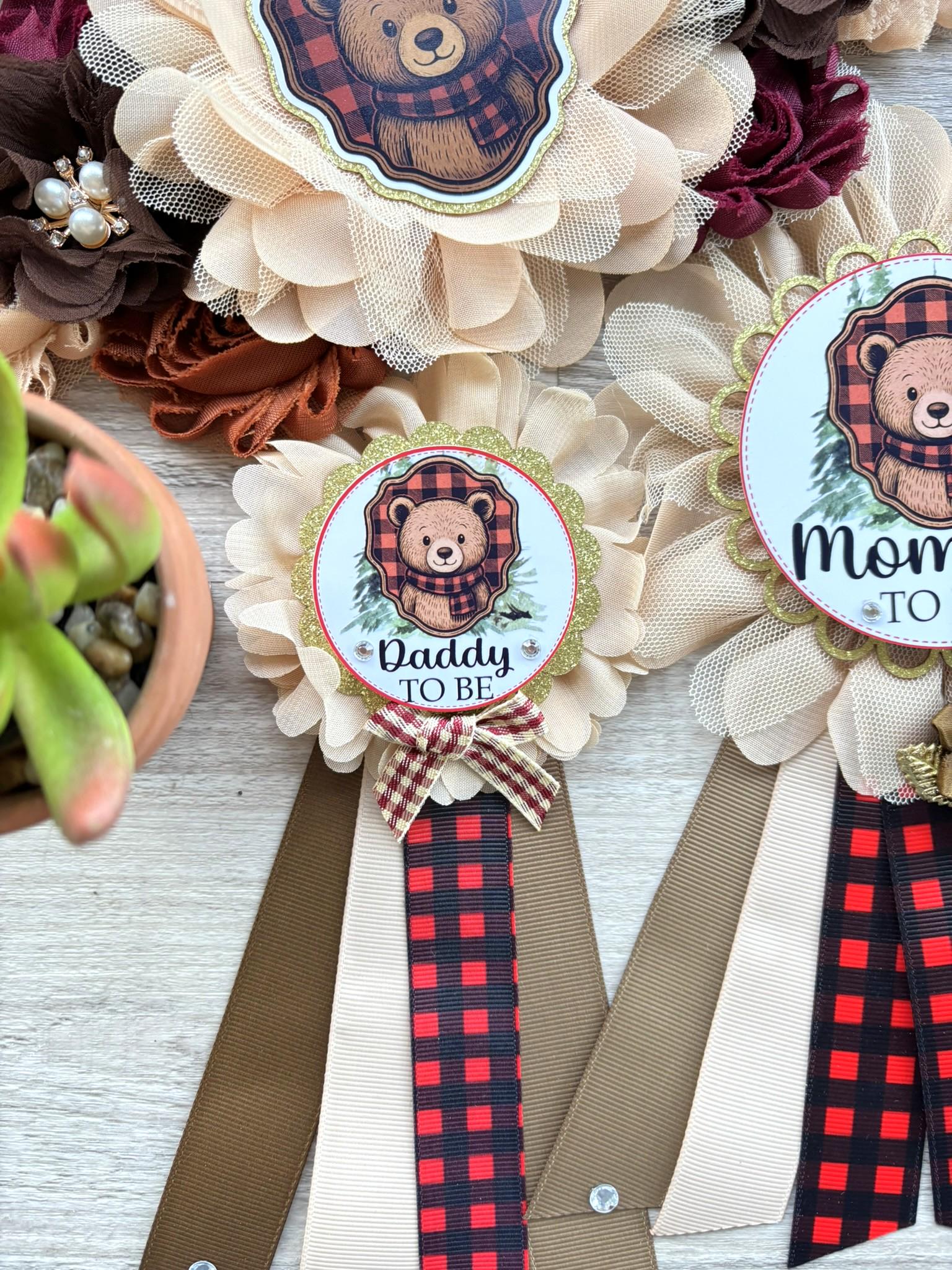 Lumberjack Bear Plaid Baby Shower, Buffalo Plaid Maternity Sash, Mommy To Be Pin, Daddy To Be Pin, Baby Shower Gift, Custom Order Welcome