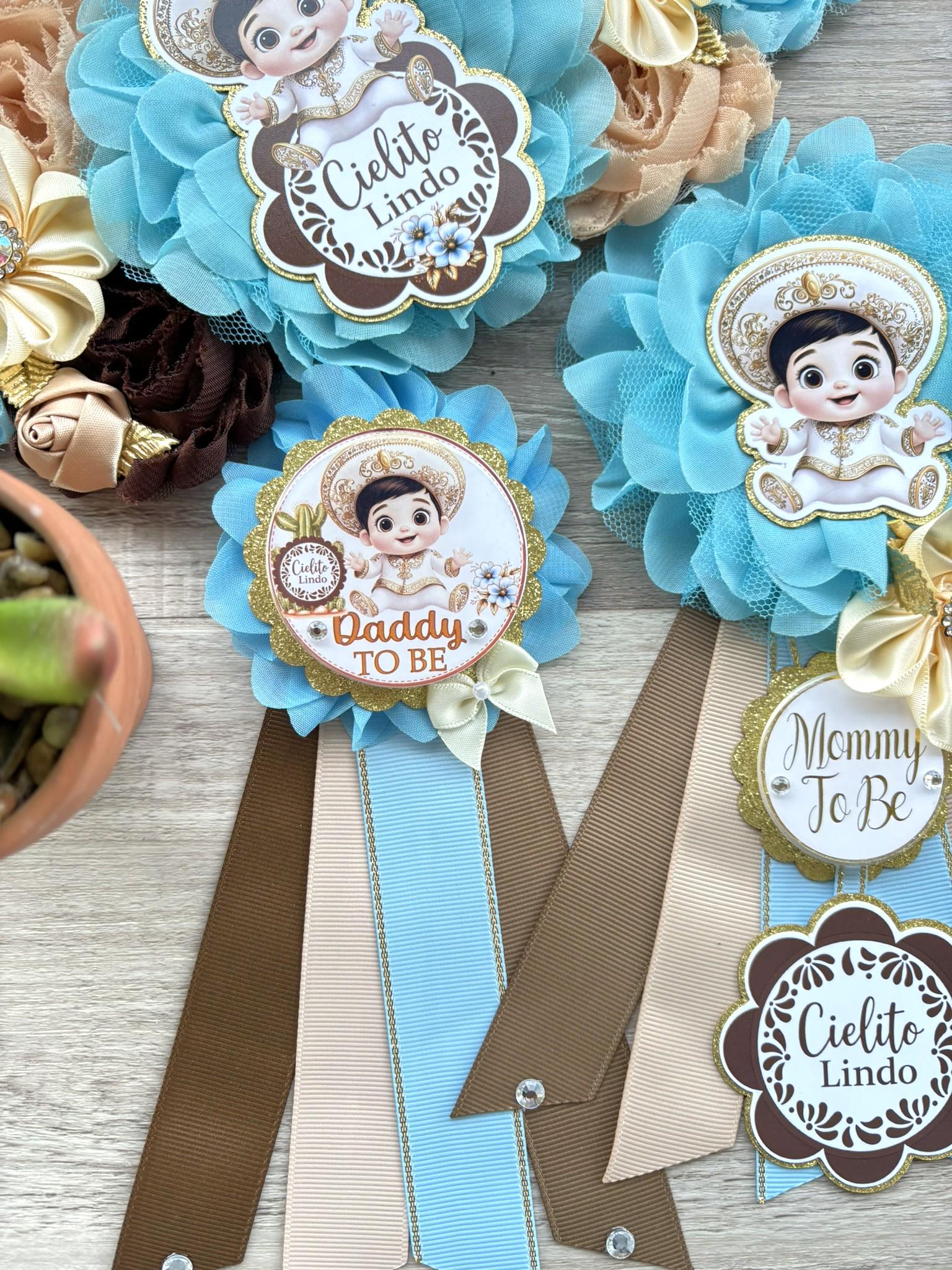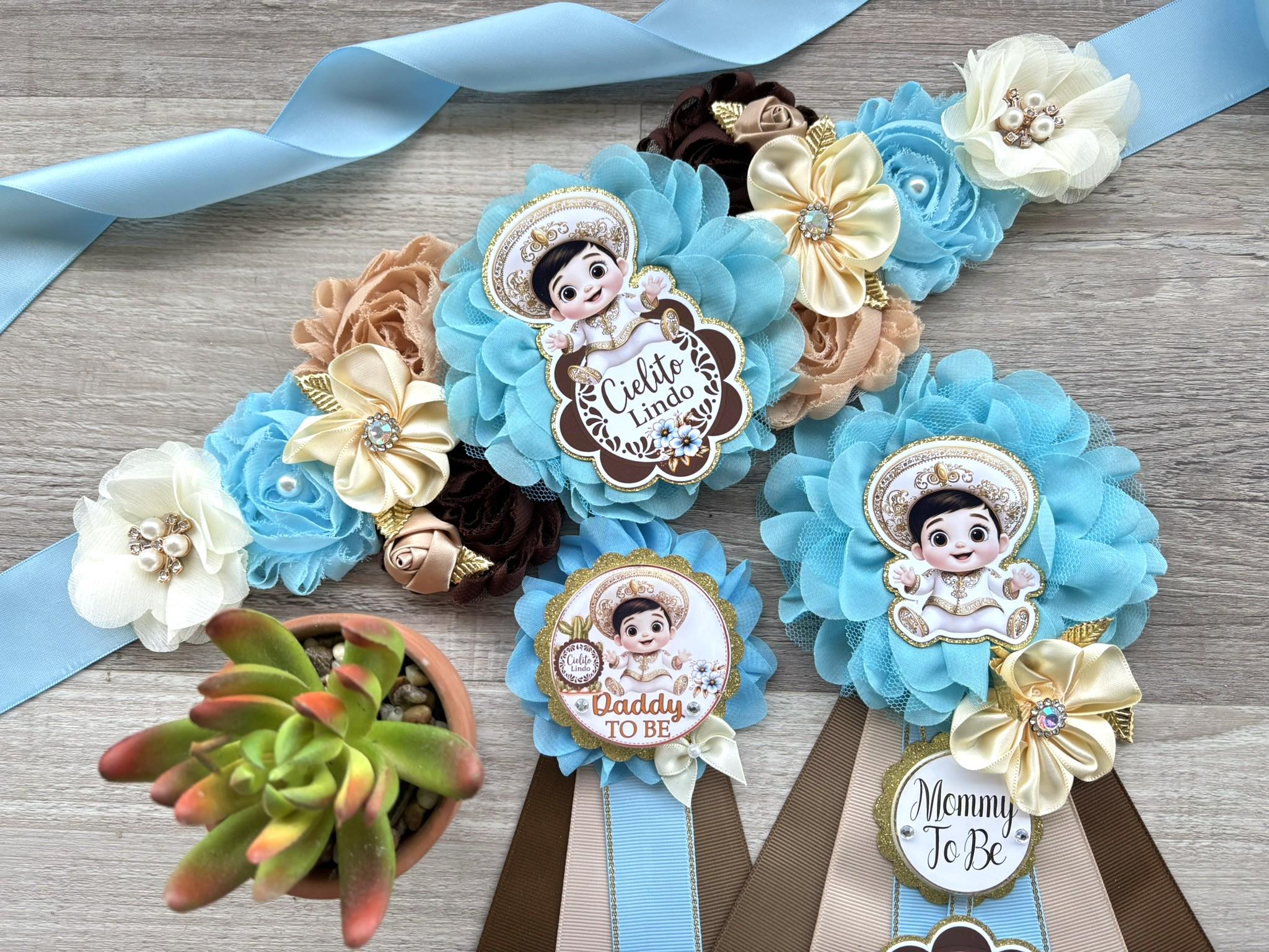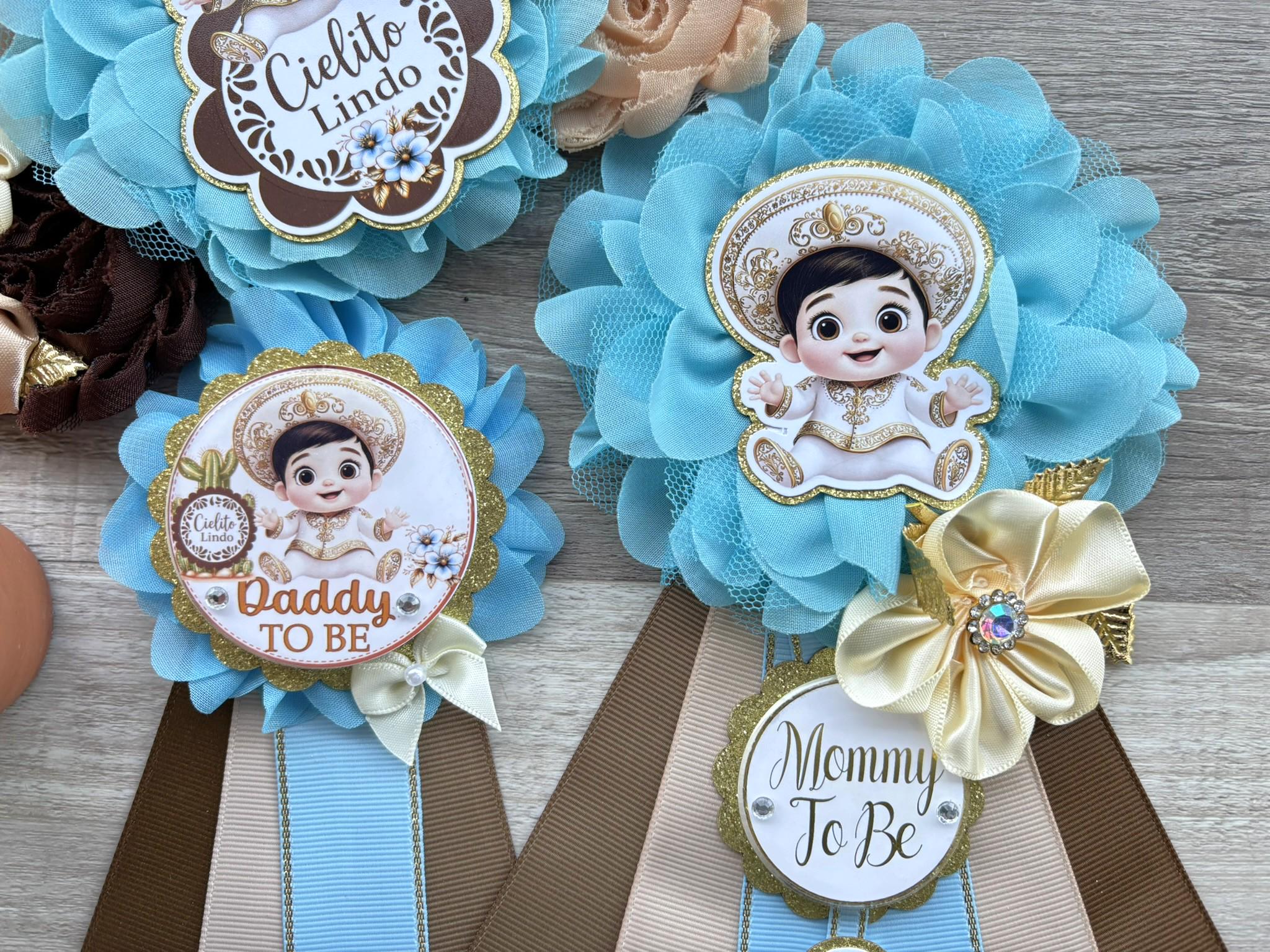 Boy Cielito Lindo Baby Shower, Maternity Sash, Blue Cielito Lindo Mommy To Be Pin, Daddy To Be Pin, Baby Shower Gift, Custom Order Welcome