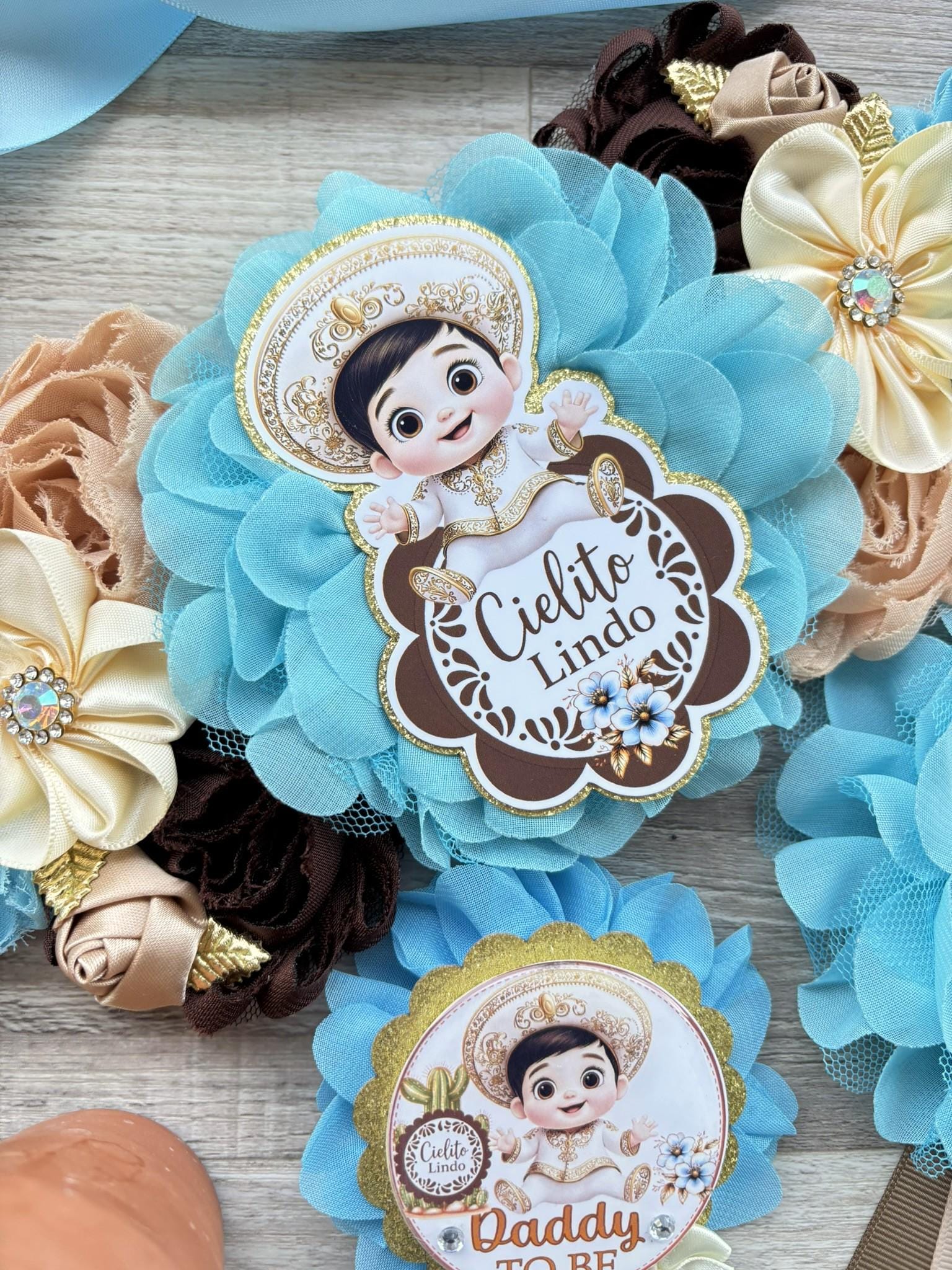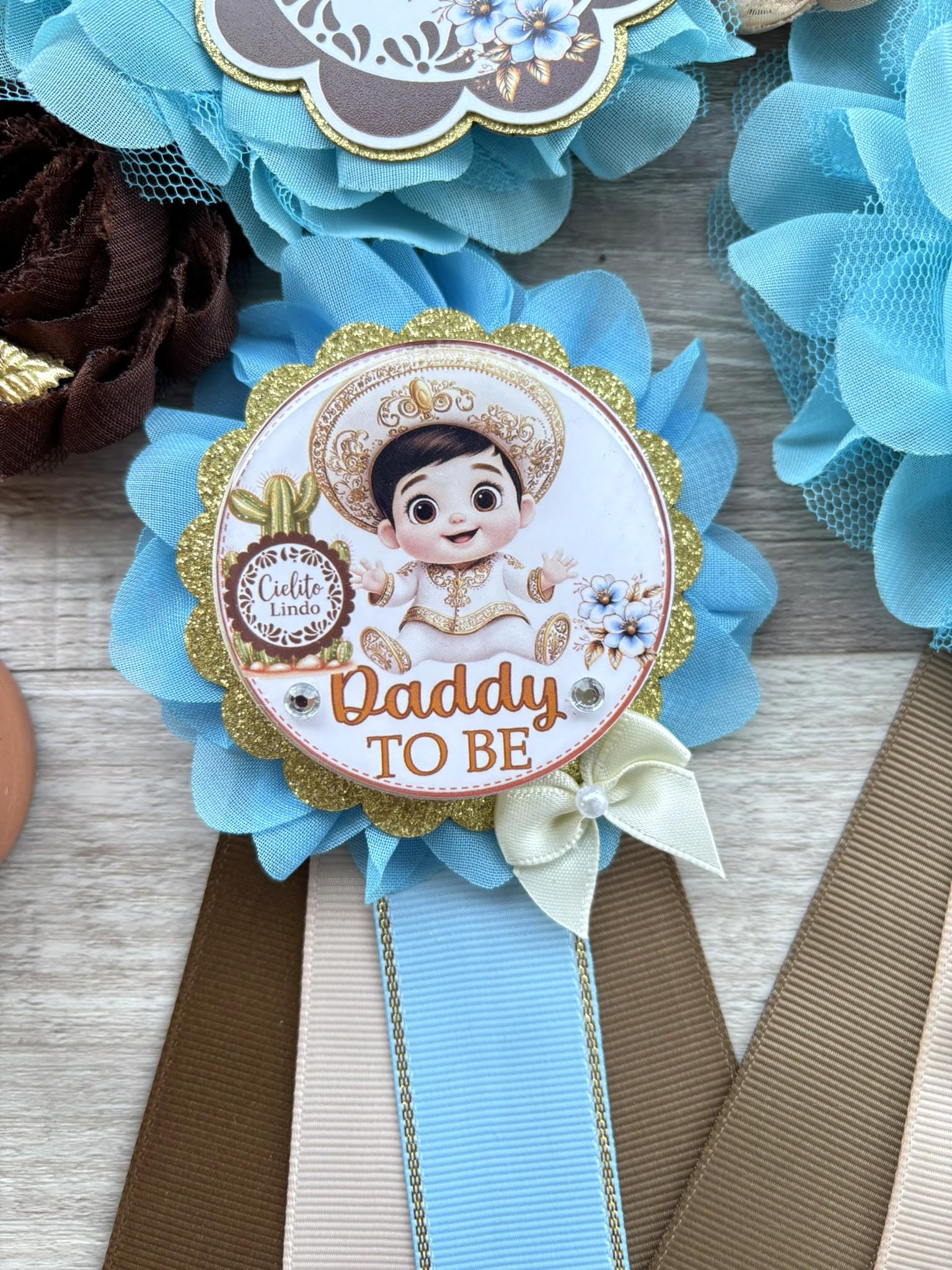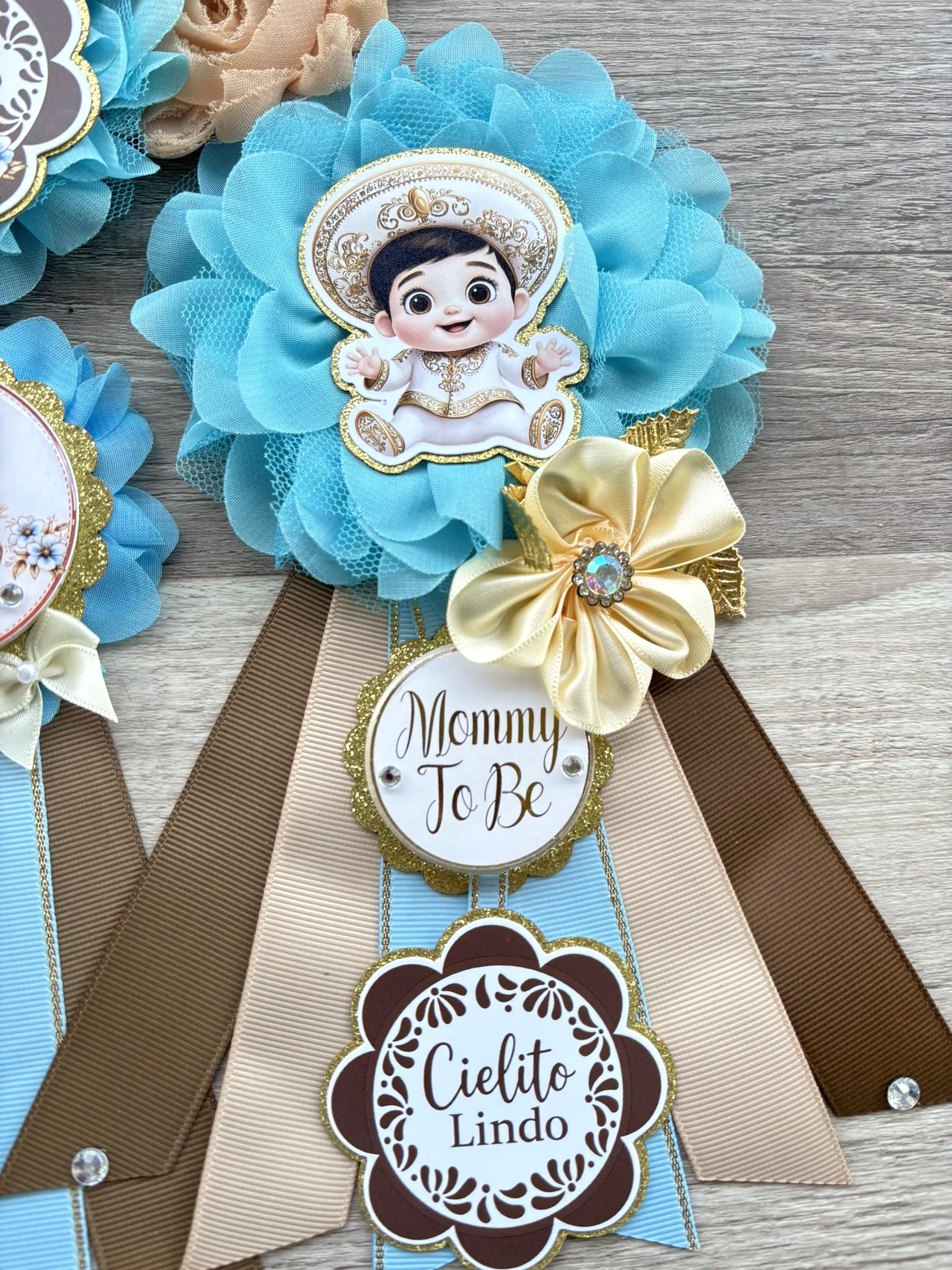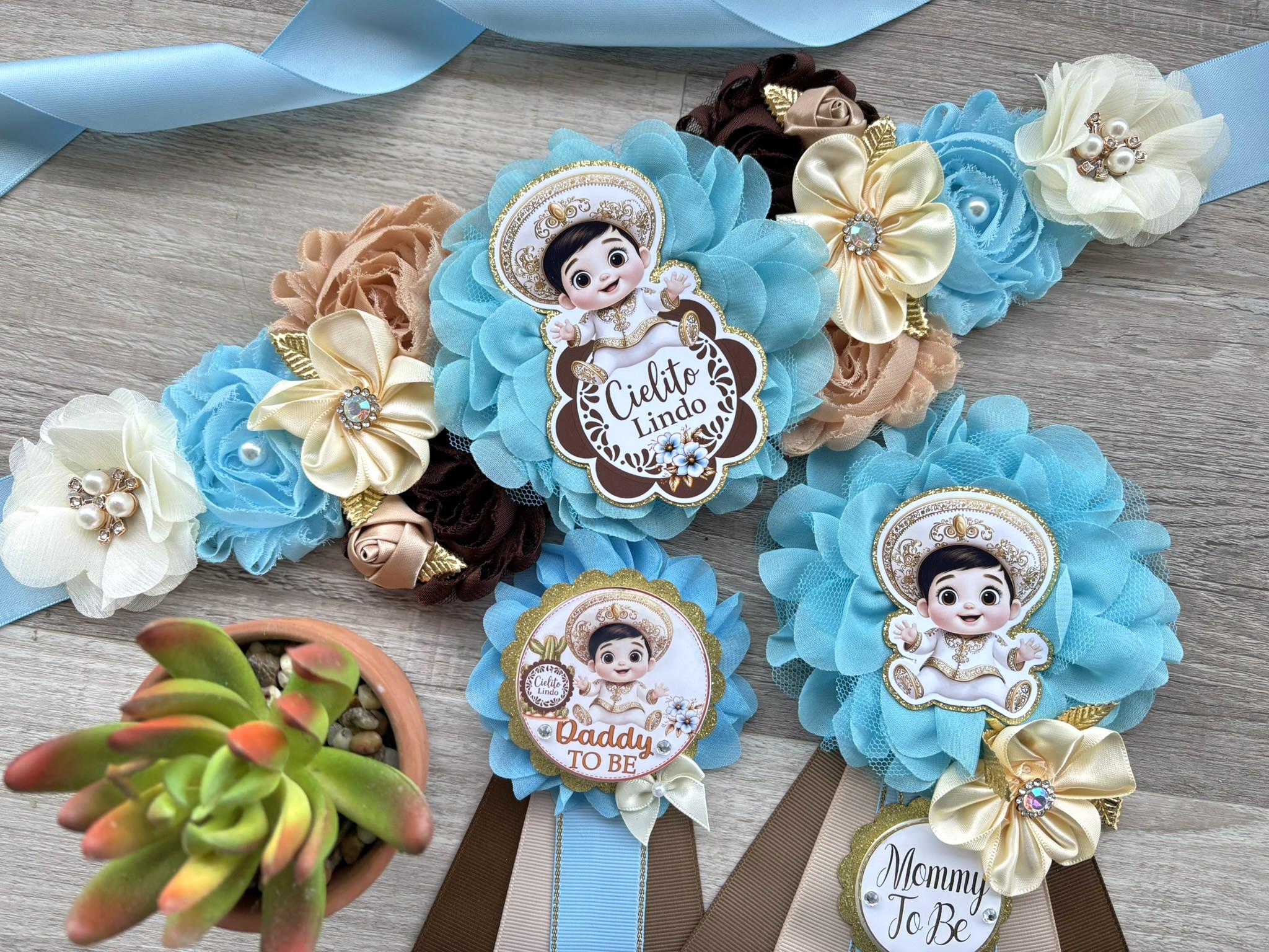 Boy Cielito Lindo Baby Shower, Maternity Sash, Blue Cielito Lindo Mommy To Be Pin, Daddy To Be Pin, Baby Shower Gift, Custom Order Welcome