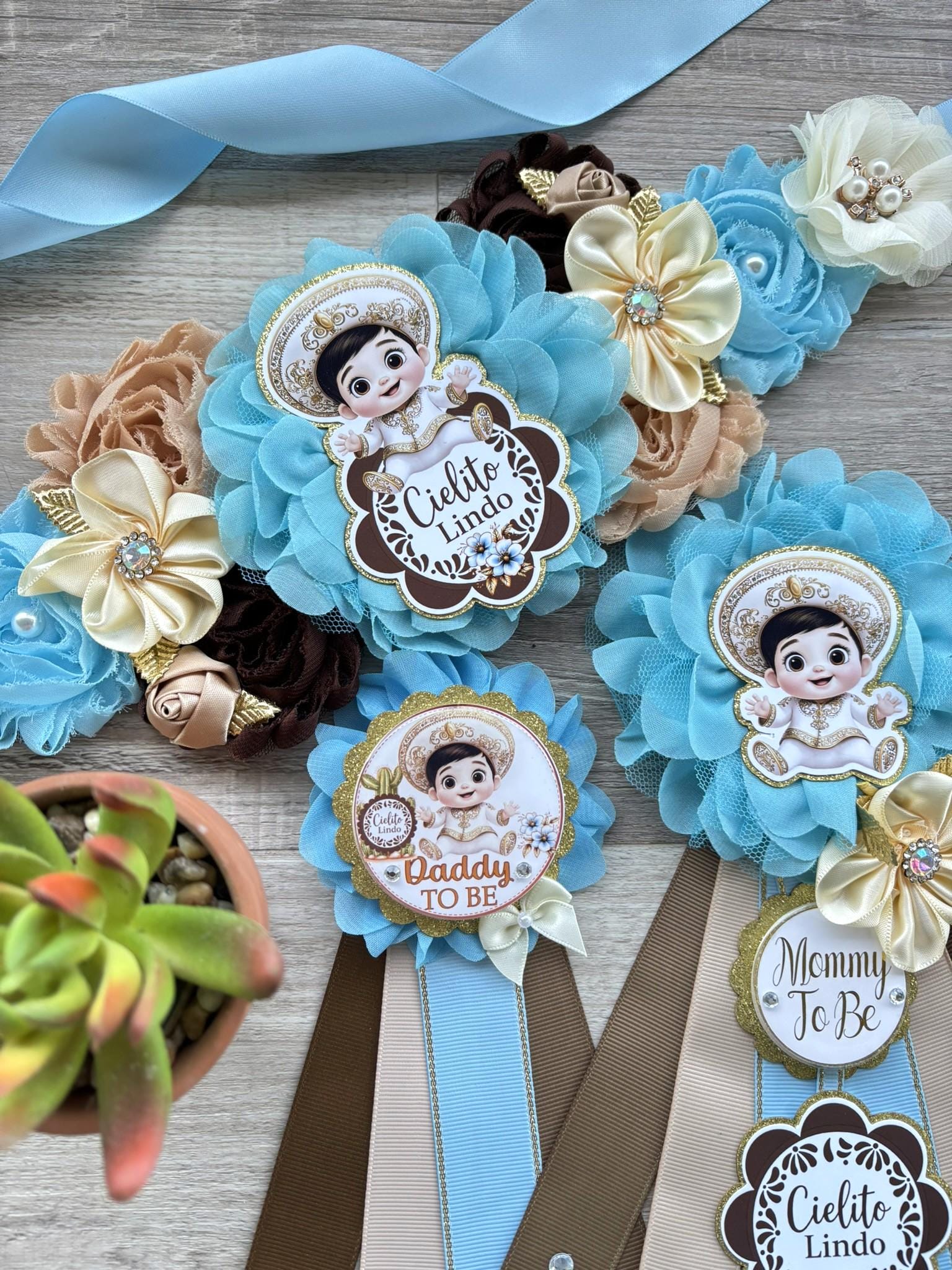 This Boy Cielito Lindo Corsage Set was made especially for a Baby Shower or a Photo Prop.